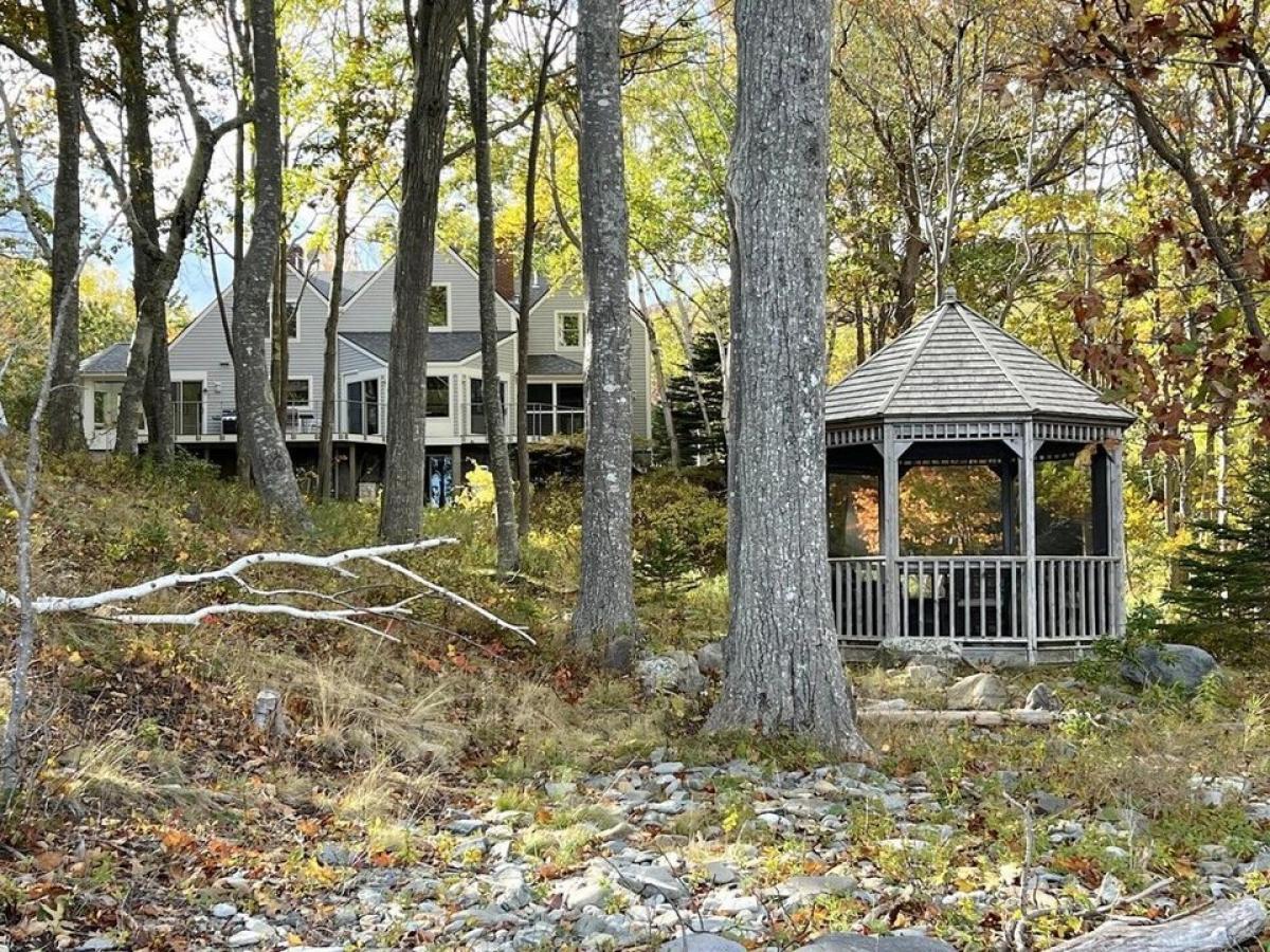 Not only is the Fog House the last house on the public road before the park entrance but you can also walk out your back door on to a secret Park trail that leads to the Schooner Head Overlook Road and Anemone Cave and on to Sand Beach so you can walk or bike either by road or trail right into the park from this breathtaking setting in a cove looking out to crashing surf on the ledges of Schooner Head and beyond to Egg Rock Lighthouse and open ocean. 4 bedroom main house with large primary suite on the main level and a cathedral living room with granite fireplace. An ensuite bedroom primary bedroom upstairs with a center open balcony looking down connecting to two other bedrooms and bath. There is another bonus room and bathroom downstairs on the walk out level along with a craft room and large unfinished room as well. The two car detached garage has an apartment overhead with a large open bedroom/living room and another full bath. Design by architect Roc Caivano and then customized with a hand painted floor by local artist Russ Damp;#039;Alessio in the kitchen. Come mostly furnished and ready for the next adventurer to able to enjoy sitting in the Gazebo next to the crashing surf of the stone beach and ledges. There are 5 bedrooms total but septic is only a 3 bdrm system