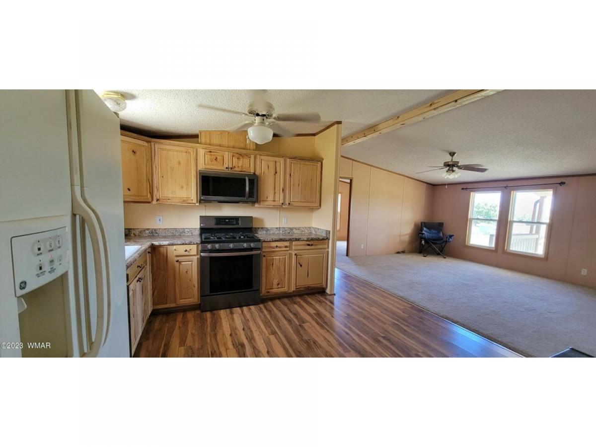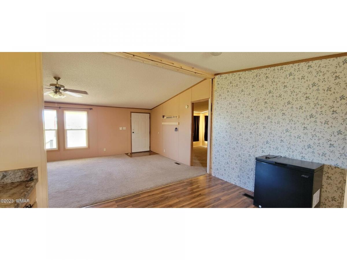 Enjoy country living only minutes from town! This home sits on a large fenced and gated 2 acre lot just off Concho Highway. There is a private well and electricity. Nice views from the covered front porch, and a fenced in back yard with grass and sprinklers! There are 2 storage sheds in very good condition that have been anchored down and permitted. The inside of the home features an open concept floor plan great for entertaining! In 2017 the kitchen and bathroom cabinets were upgraded along with new flooring, upgraded tip-out windows, and a new metal snow roof. The home sits at the back of the lot so there is plenty of room to do anything you want in the front such as gardens, orchard, pasture, barn, shop, etc.