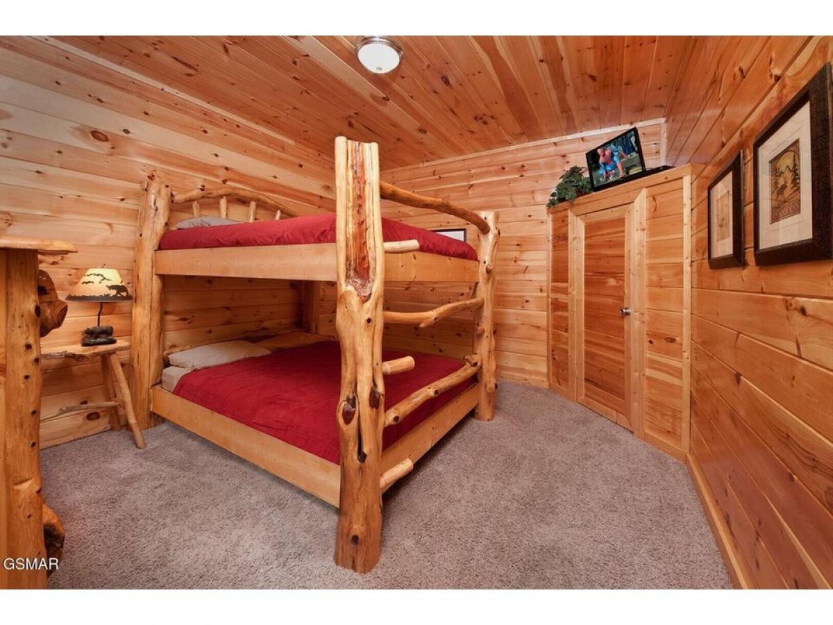 Located in Sherwood Forest Resort, this property has 7 bedrooms, beautiful view, elevator, game room, theater, comes fully furnished and has been a wonderful overnight rental. There is a community pool that is only about a city block from the cabin. This property has a shared ramp from the driveway to the main entry deck and is shared with the property next door known as 4733 Nottingham Heights Way.