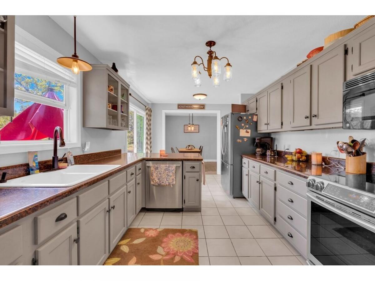Check out this beautiful ranch-style home, situated on a peaceful 1-acre lot. With 3 bedrooms and 2 bathrooms, this home features a split floor plan offering both comfort and privacy. Enjoy the covered front porch or relax on the open rear deck overlooking the quiet pastureland. Renovations include a new metal roof, new walls, siding, and gutters (2017), a remodeled kitchen with new appliances, windows and sink (2019), and lastly remodeled bathrooms, new flooring and custom sliding barn doors (2021). The property includes natural gas, city water and an additional well for your gardening or outdoor needs. This home combines modern updates with peaceful country living.