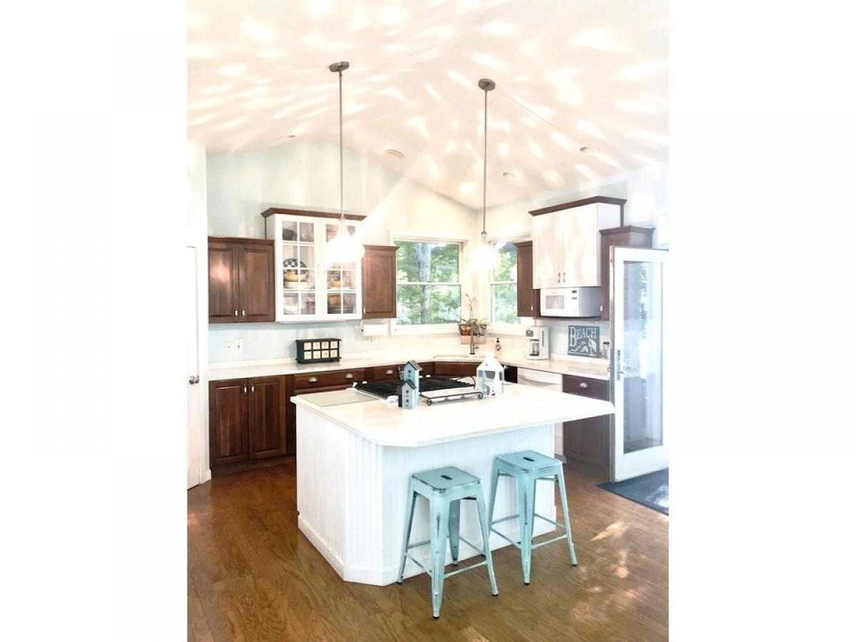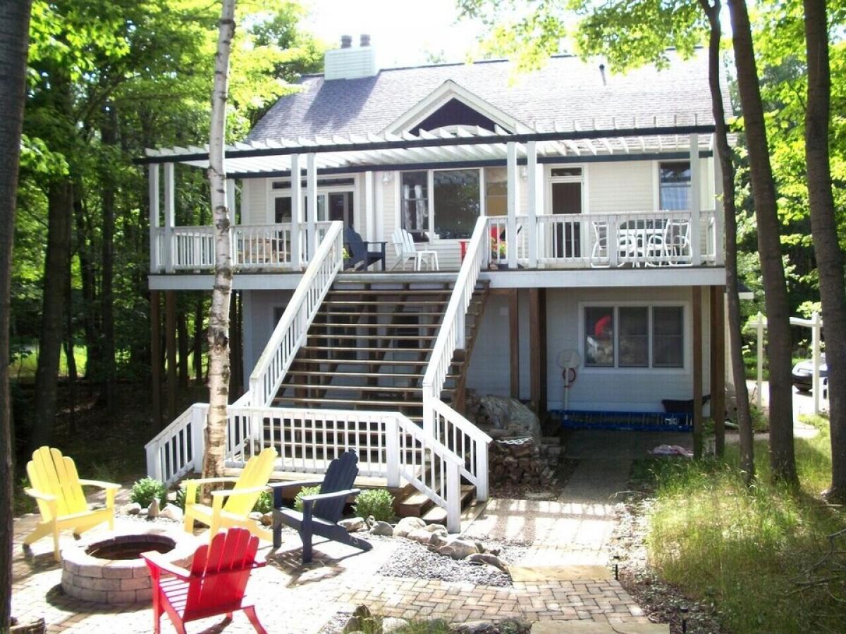 MAKE THIS YOUR TRANQUIL LAKE MICHIGAN custom year around home with 3 bedrooms and possible 4th bedroom, 2 baths set on a private wooded lot with stairs to approx. 100' frontage of your own beach! The exterior of this quaint cottage style home has cedar wood beveled siding, with cedar accented blue shakes at the gables. Built around many mature trees and neighboring Manistee National Forest the upper level creates a lovely ''tree house'' effect. The large deck with pergola is great for watching those BREATHTAKING sunsets! On the main level the interior of the home welcomes you to plenty of natural light through many beautiful windows for LAKE MICHIGAN views. The main level also includes lovely farmhouse style details such an open floor plan, beautiful star-shaped cathedral ceiling,
