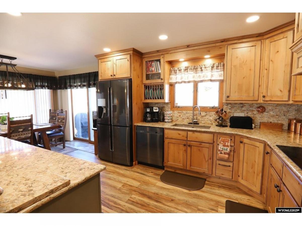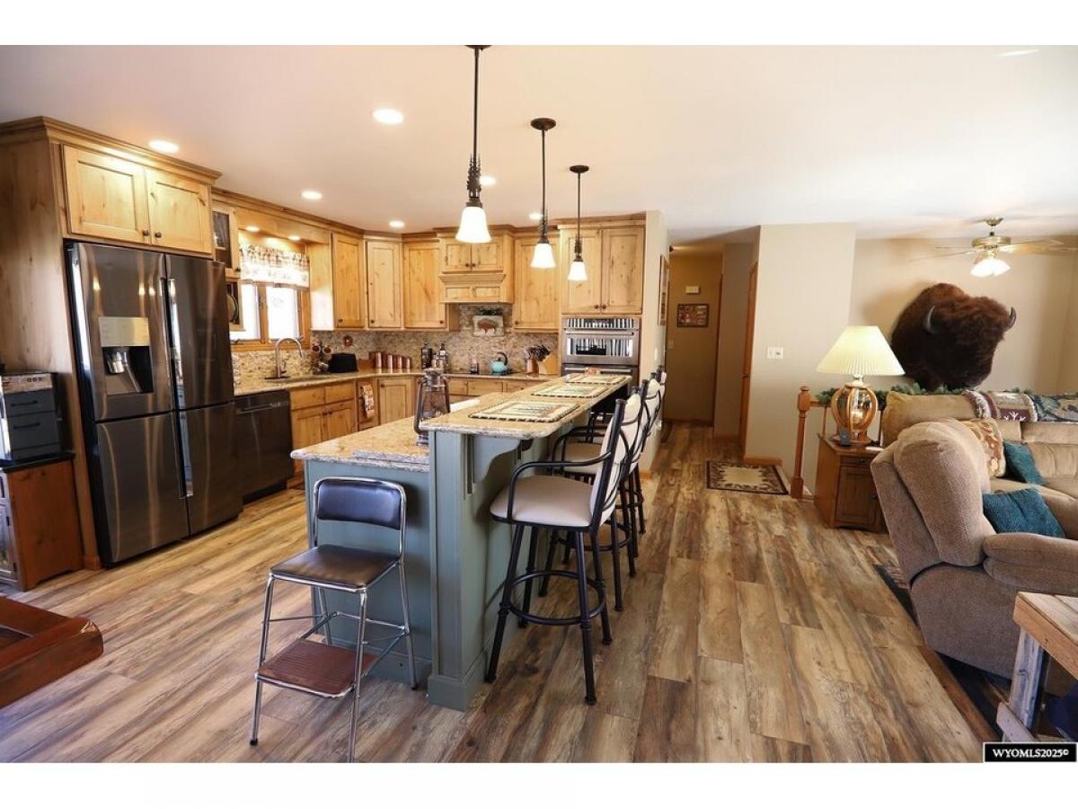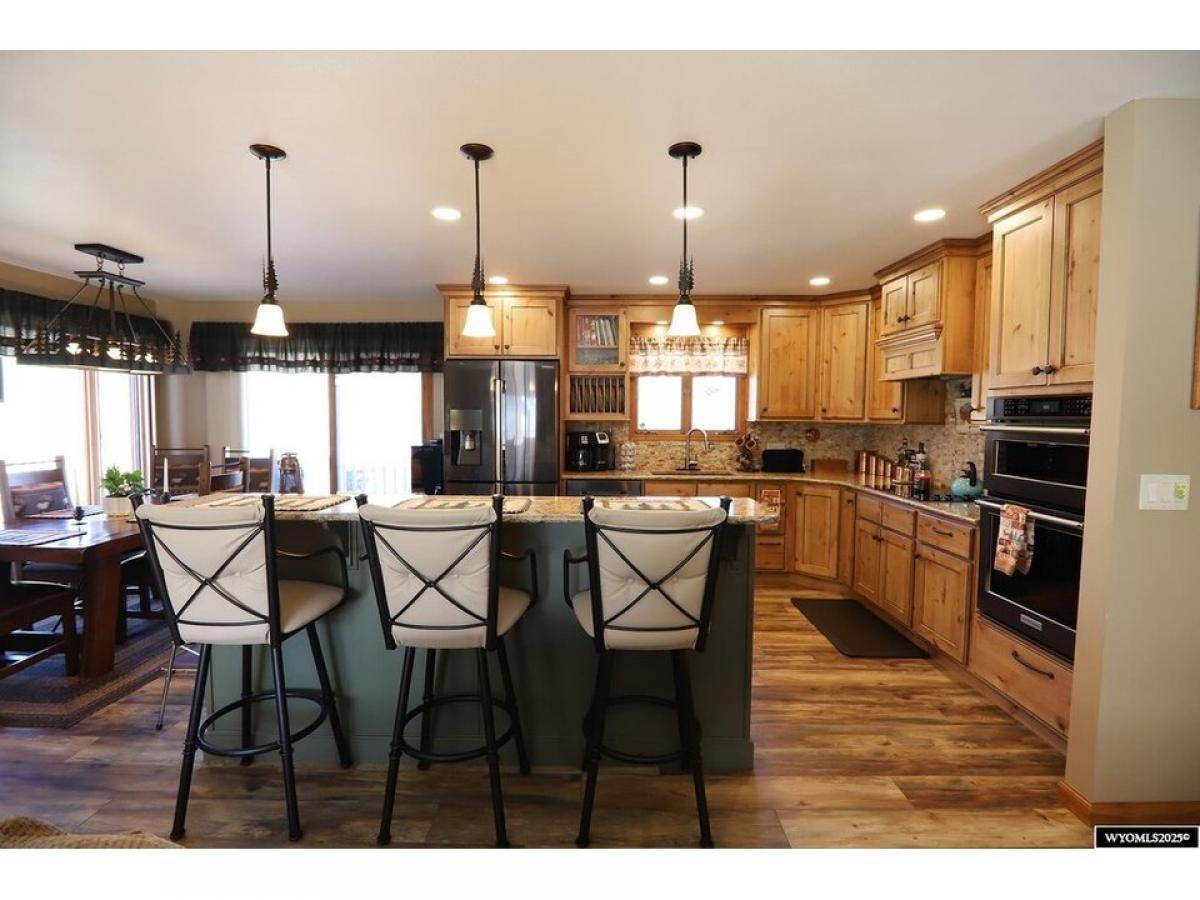 This stunning property at the foot of the Big Horn Mountains is a true gem! Nestled on 4.24 acres, this beautifully maintained 4-bedroom, 2-bath home boasts exceptional features and modern updates. The interior is highlighted by gorgeous quartz countertops, durable vinyl plank flooring, and a fresh coat of paint throughout. Outside, you#039;ll find a serene creek running through the property, adding to the tranquil ambiance. The home is equipped with a new furnace and water softener, ensuring comfort and convenience. A newly installed septic tank further enhances the property#039;s readiness for its new owners. For those who love to garden or need extra workspace, the property includes a dedicated reloading room and a garden room perfect for repotting plants. The expansive 3,640 sq. ft. heated shop/garage is a major highlight, featuring four overhead doors: a 14x14 ft. door, a 12x12 ft. door, and two 10x10 ft. doors, making it ideal for storing motor homes, tall RVs, or equipment. The fenced backyard provides a secure area for pets, complete with a nice dog kennel for your furry friends. The property has an access easement to the neighbor for agricultural purposes. Located at the end of the road, this private oasis offers peace and tranquility while being close to nature. Don#039;t miss out on this exceptional opportunity to own a slice of paradise! To see this beautiful, one-of-a-kind property, Call me, Kitty Merrill, 307-620-0644.