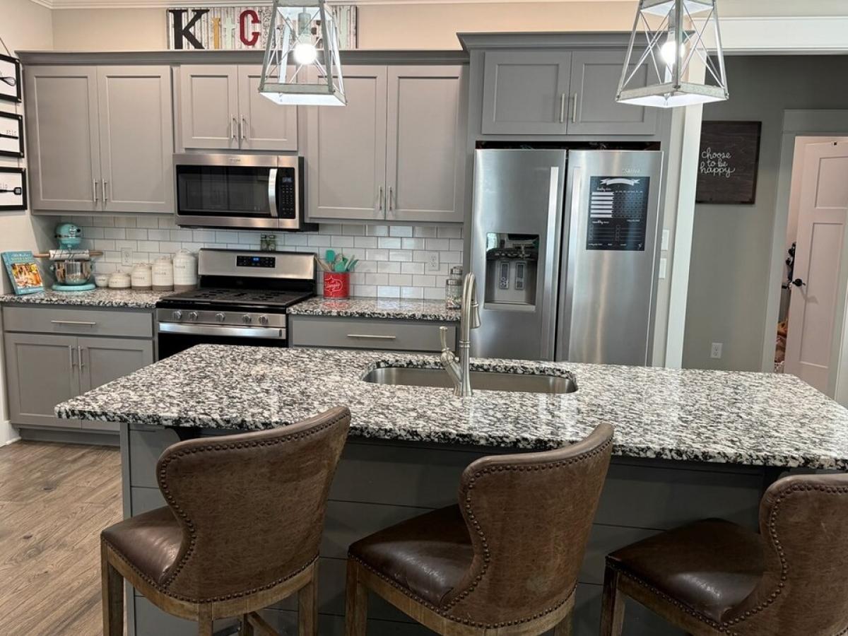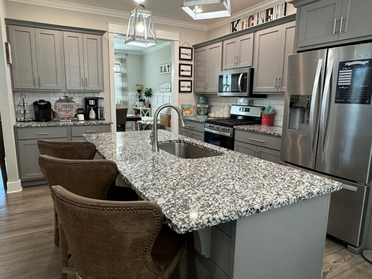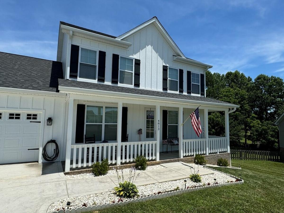 Welcome to this charming 2-story Farmhouse style home nestled in a tranquil neighborhood, offering a perfect blend of comfort and elegance. Step inside through the inviting entryway and discover a meticulously designed interior. The main level features a spacious formal dining room ideal for gatherings, complemented by a large living room warmed by a cozy gas fireplace. The kitchen is a chef's delight with granite countertops, an expansive island perfect for dining, and a sunny breakfast area overlooking the backyard oasis. The primary bedroom suite on the main level boasts a luxurious tiled-in shower, double vanity, and a generously sized walk-in closet for ample storage. Conveniently located nearby is the laundry room, ensuring practicality and ease of living. Upstairs, you'll find two additional well-appointed bedrooms, along with another full bathroom. A delightful den/bonus room awaits, offering versatility as a cozy retreat or entertainment space.