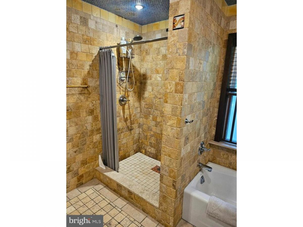 Point Pleasant it the happening Village on the Delaware with a new Brewery/restaurant and great vegan restaurant.. all walking distance to this extraordinary property which showcases incredible stone and tile work, inside and outside and taxes only $3771 per year. Creative expression and use of materials, including Mercer tiles, gives this residence character, ambiance and a unique living space. An open main floor plan has a large living room, full bathroom, and a kitchen that opens to the family room with an energy efficient wood stove. Upstairs are two large bedrooms, a fully tiled bathroom with stackable washer and dryer plus an office that could be used as a walk-in closet. A pull-down staircase leads to a finished, heated attic. Walk-out lower level has tile floor and amazing award winning tile and stained glass . This level can be home office or additional bedroom wiht 1/2 bath and separate entrance.. The exterior is a beautiful mix of tile and stone patios, mature trees and terraced gardens that provide many places to relax, dine, and entertain. Central Air Conditioning with 2 heat pumps with propane backup. Seller uses the property for VRBO and generates great income. Home Warranty included!