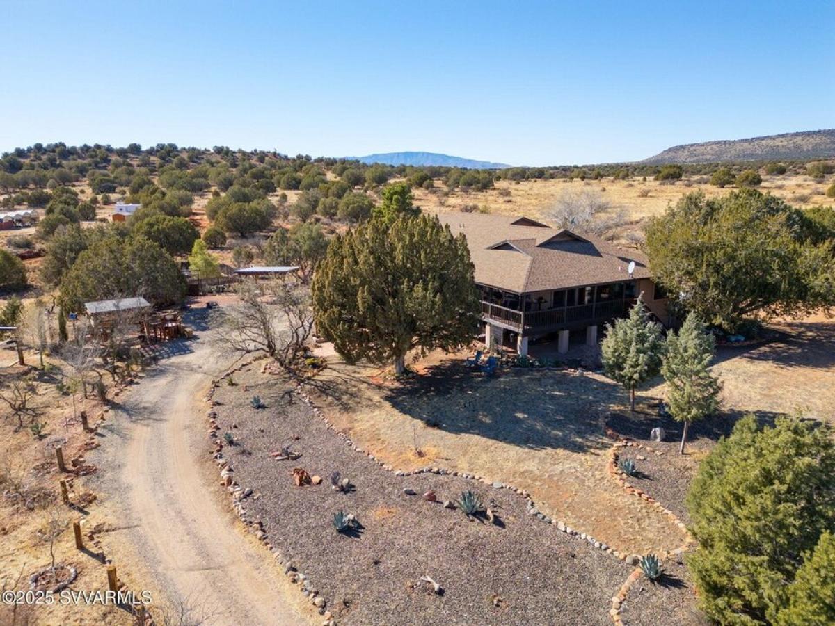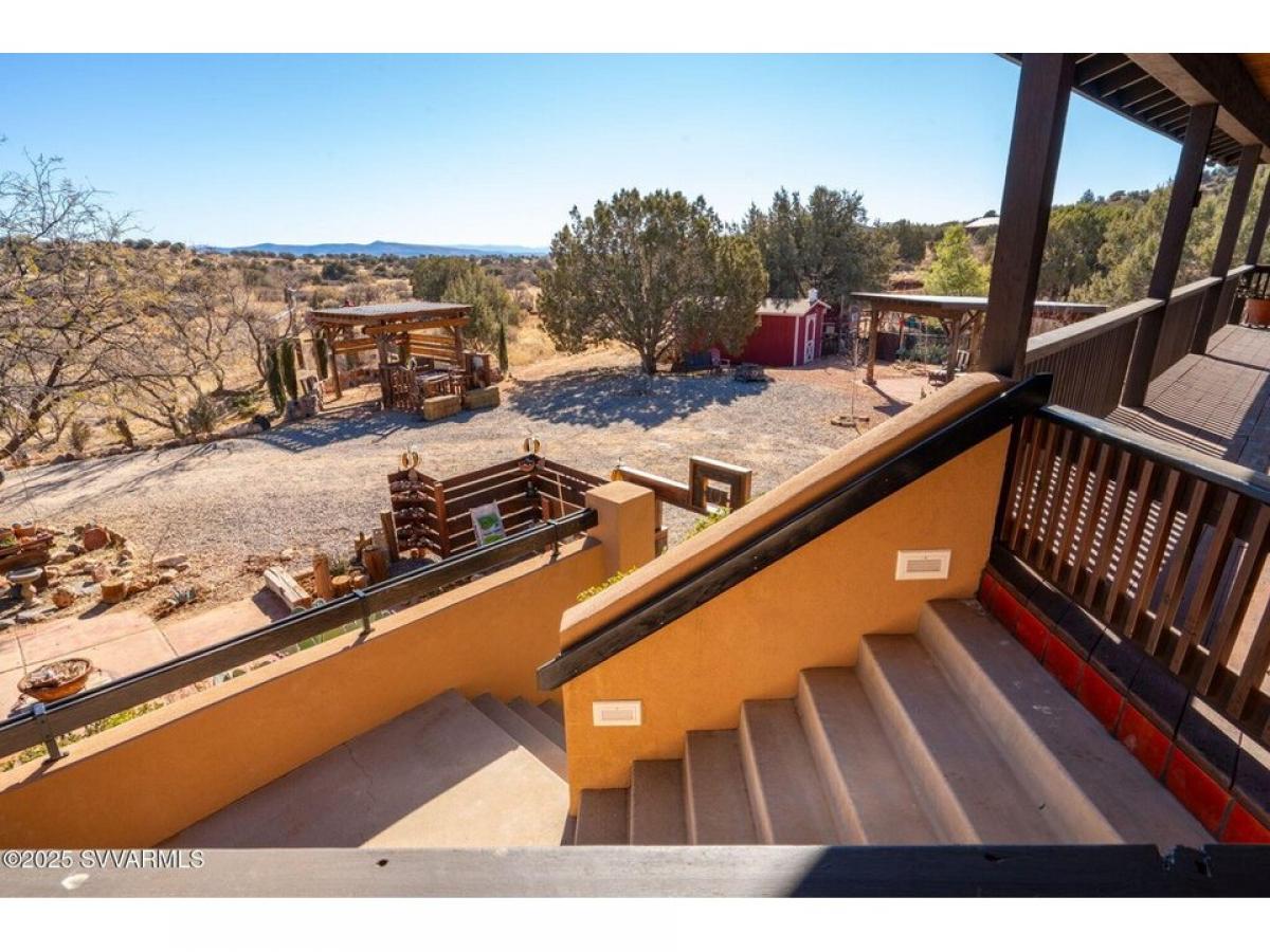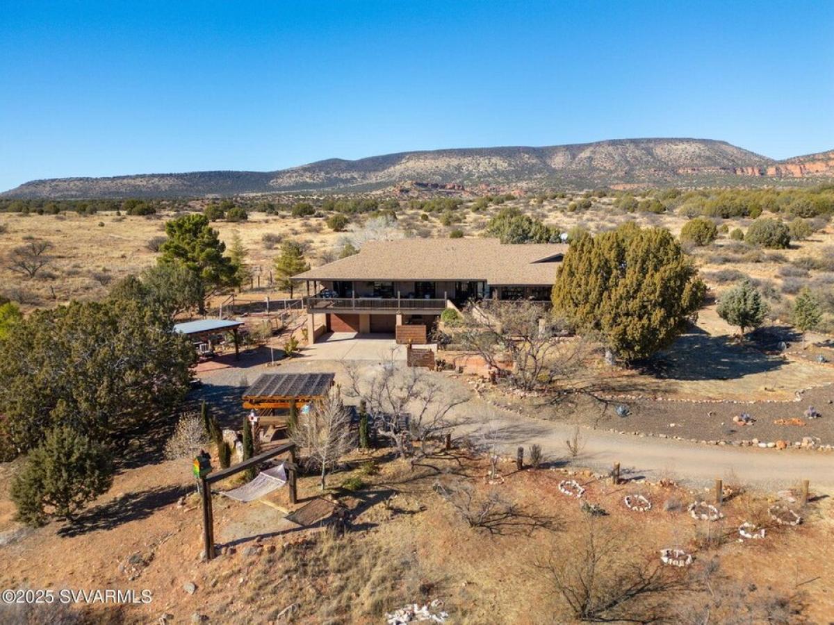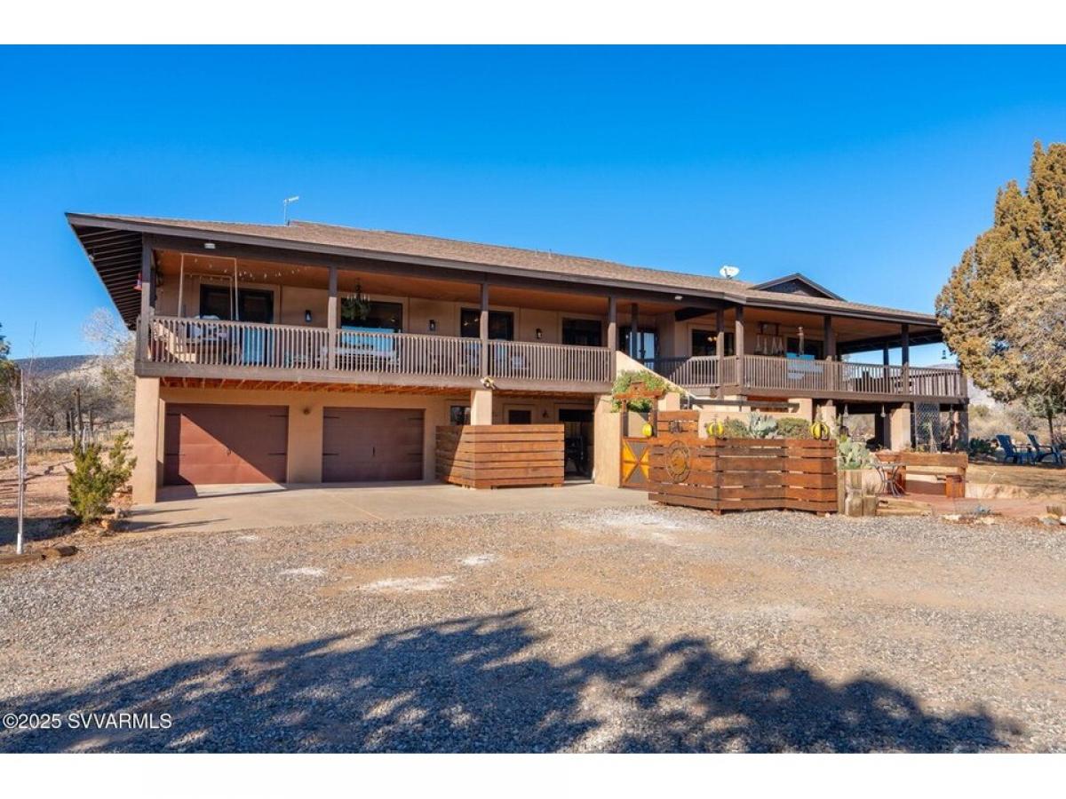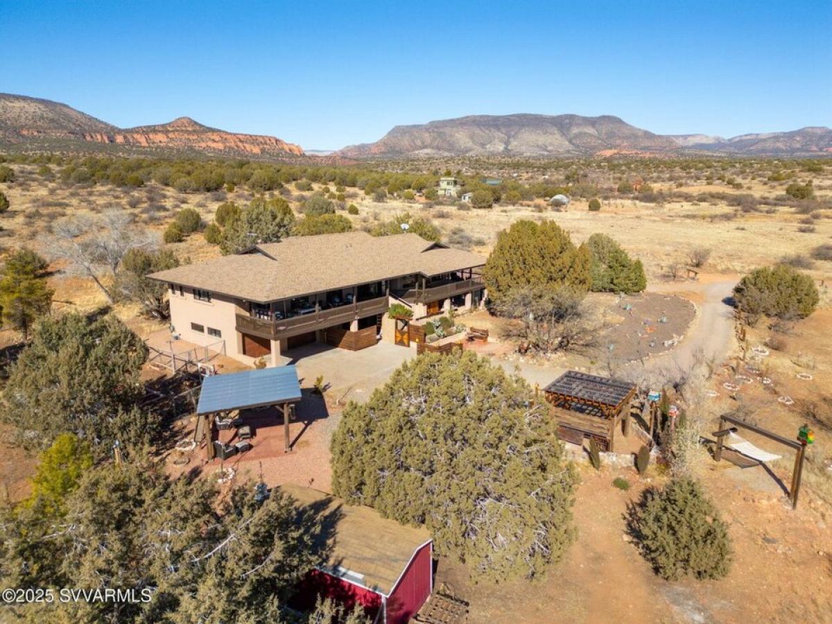 Truly unique and beautiful home situated on 5 acres in serene rural Sedona with absolutely STUNNING panoramic red rock views! Property backs up to National Forest for added tranquility. 3 bedrooms, 3 bathrooms, 3,121 square feet with fabulous custom touches throughout and whole home water filtration. Main living on upper level, where you will also find a 2,000 SQUARE FOOT COVERED WRAP AROUND DECK to enjoy breathtaking sunrises and sunsets. The property holds endless potential - horse property, family retreat, vacation rental, or artist studio with abundant inspiration all around from the gazebos and seating areas to the fresh air and natural surroundings. Please see documents tab for detailed owner#039;s description of home, upgrades, and surroundings. Schedule your showing today!