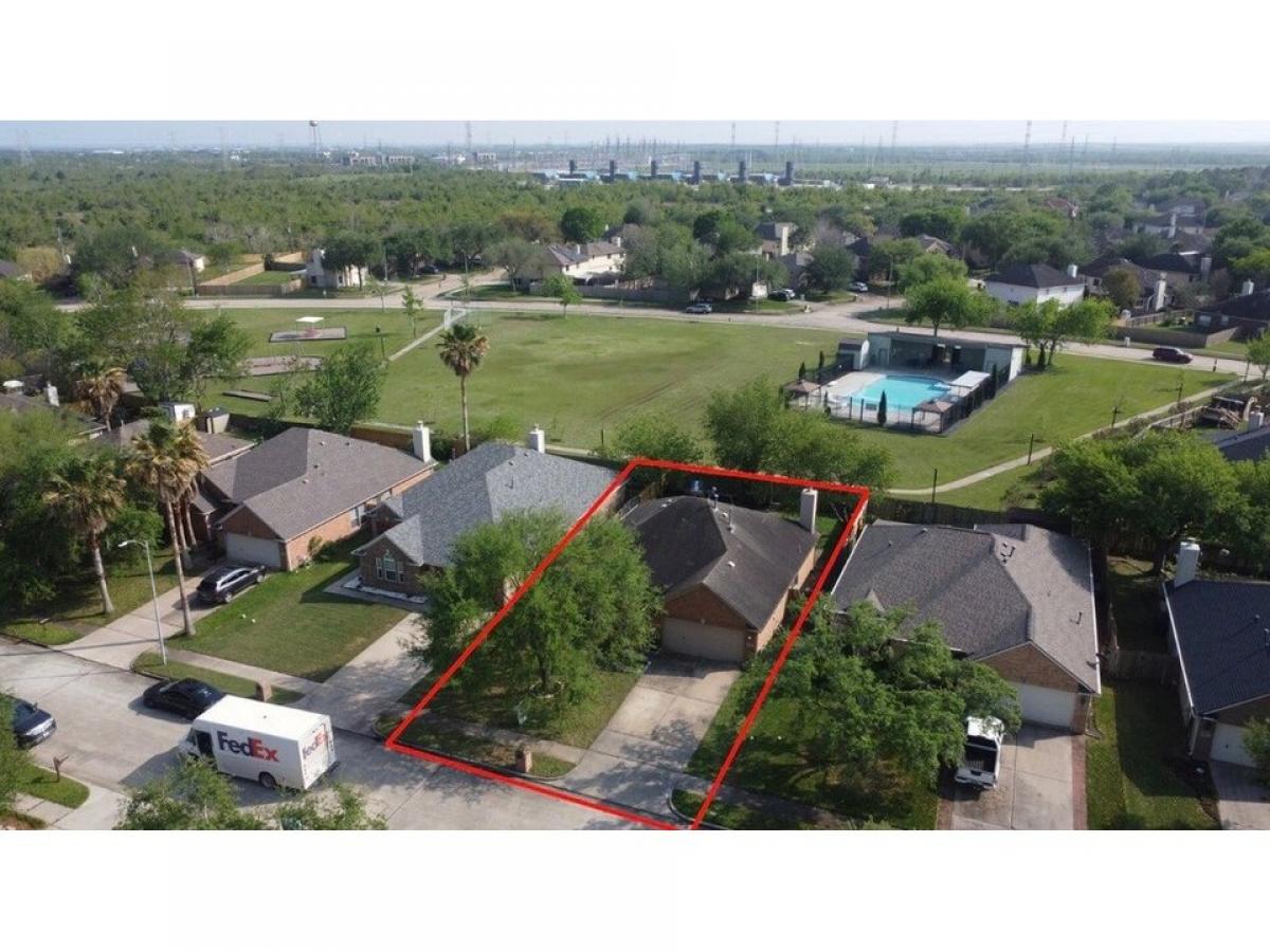 Location is everything! This adorable ranch home is in a great neighborhood and backs up to neighborhood park and pool right out your back gate! Just simply walk right out your gate to get to the park amp; pool. NO CARPET-laminate wood-look plank flooring in family room and all bedrooms. Great open layout. Split floorplan with spacious owners suite with lots of room for relaxation. Per seller, previous owner updated AC in 2021 , Water Heater, Garbage disposal, rebuilt central heat and new Flooring. NEVER FLOODED! Don#039;t miss the opportunity to make this your new home. New roof approved by Texas windstorm should be installed the week of April 10!!