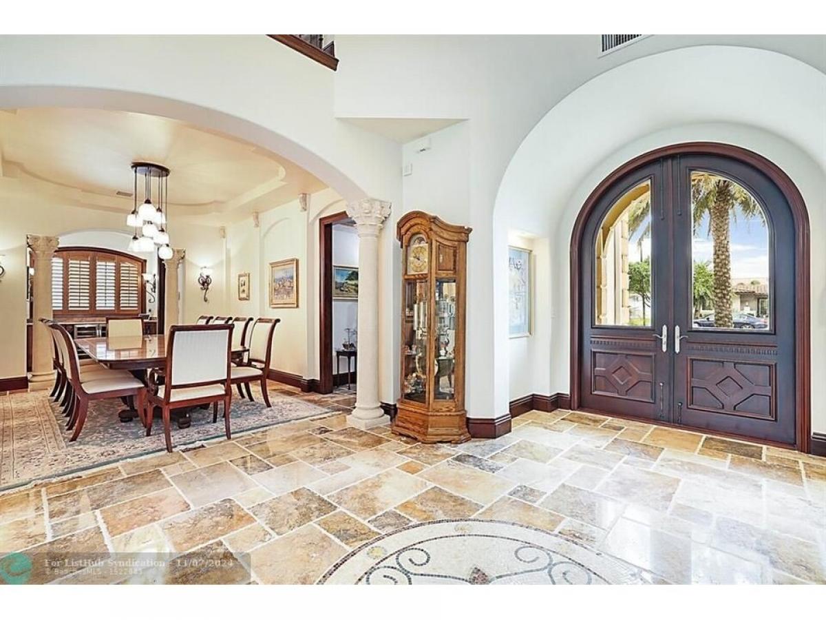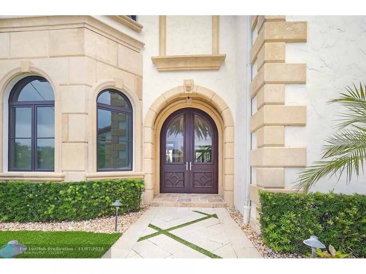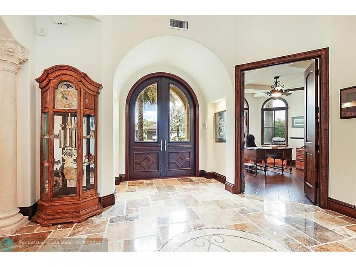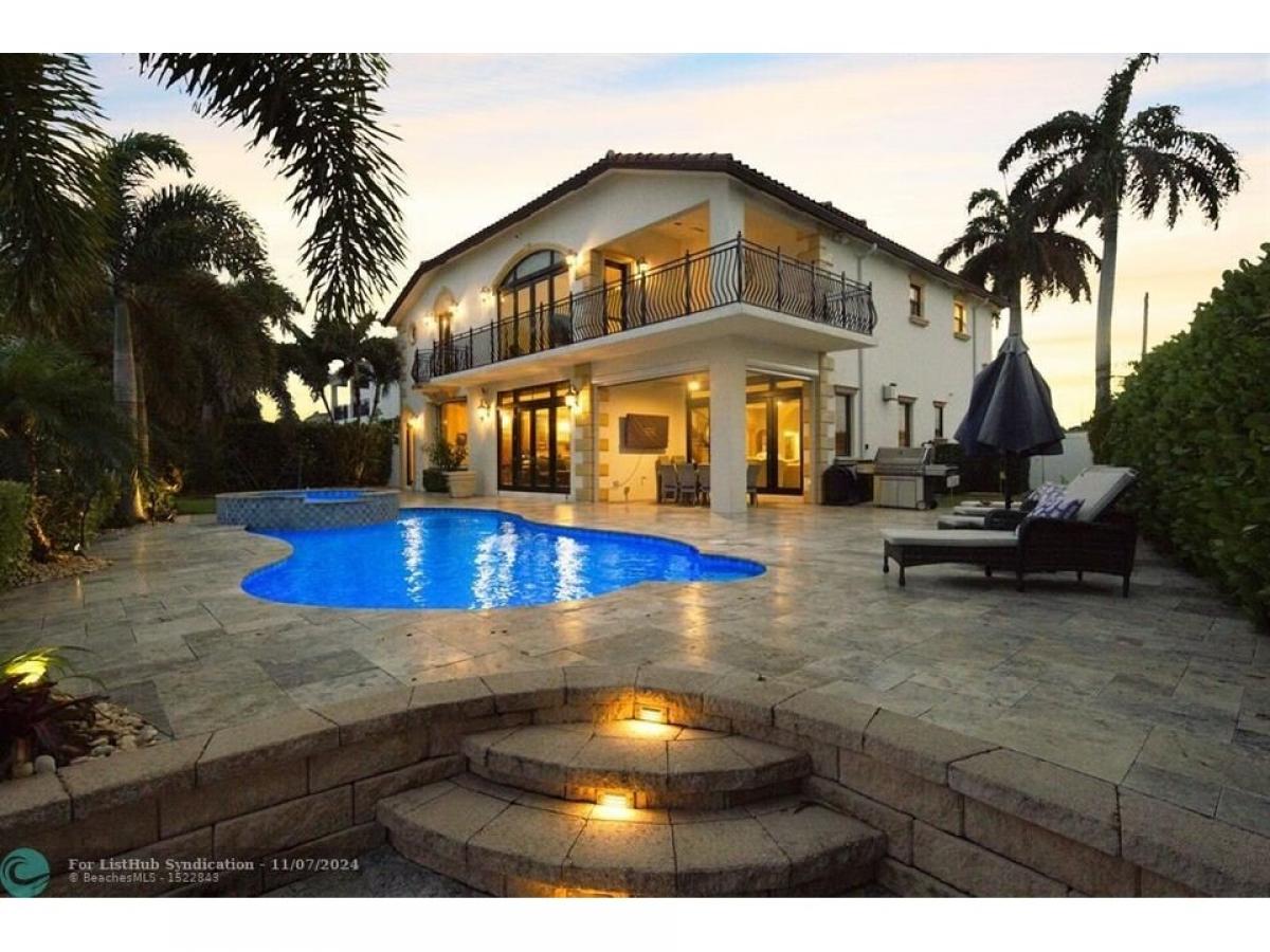 This elegantly finished 6-bedroom, 6.5 bath home features marble floors, vaulted ceilings, beautiful dark wood trim and solid doors, grand staircase, carved limestone fireplace, and more. This home checks all the boxes with full house generator, 95#039; concrete dock with 27,000 lb. boat lift, east exposure on the pool, patio and back yard, and is located at the end of a cul-de-sac street with no traffic. Luxurious master suite has beautiful views with a balcony that overlooks intersecting canals, his and her baths, steam shower, and 2 very large closets with custom cabinetry. Expansive back yard which features new putting green, patio with retractably screens and hurricane screen as well as astroturf in the front and back yards for low maintenance and more time enjoying the Florida Sunshine.