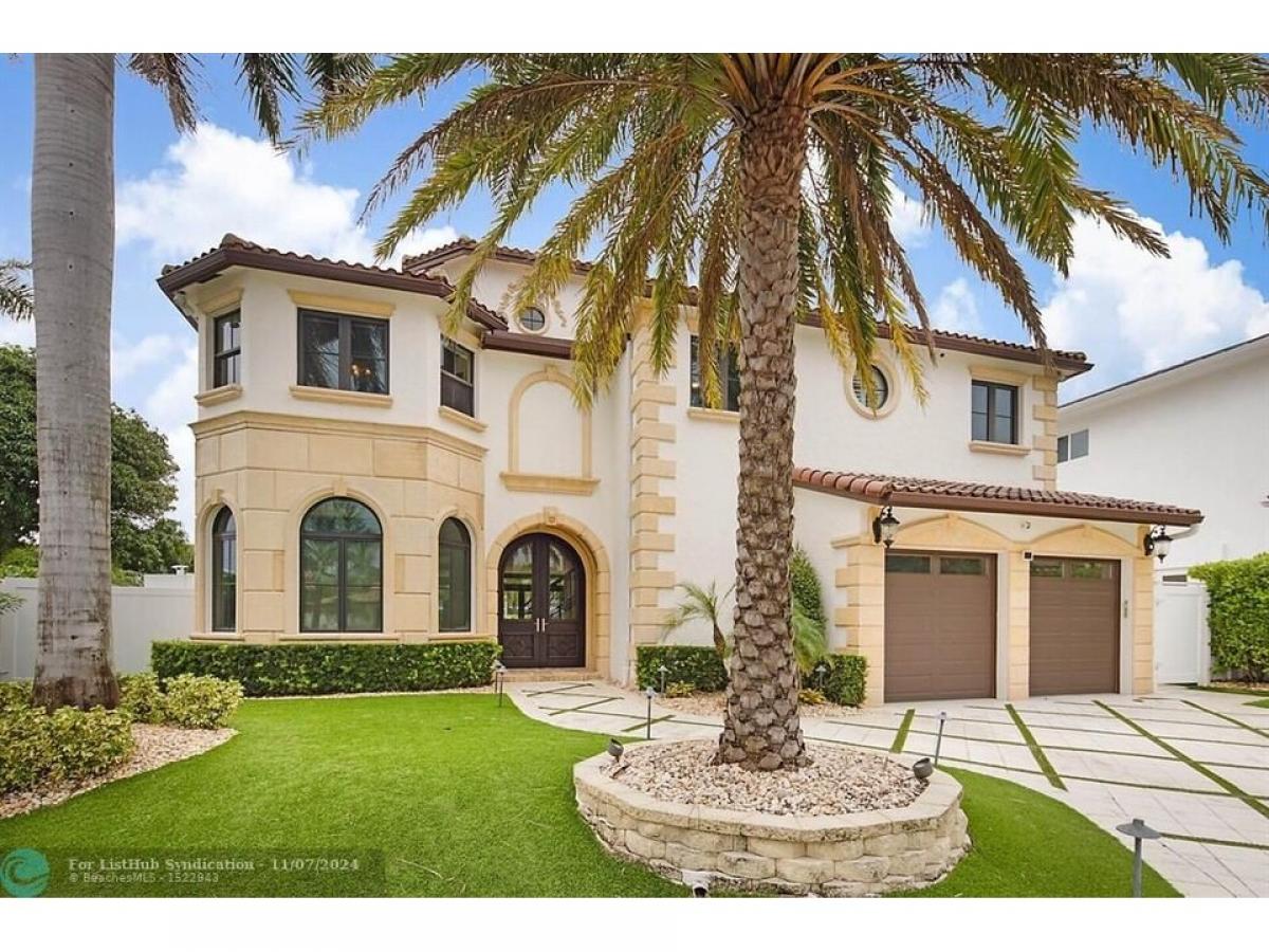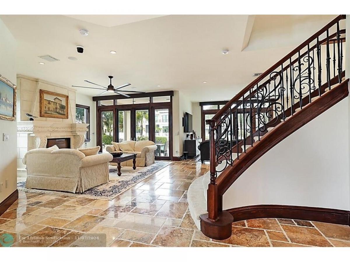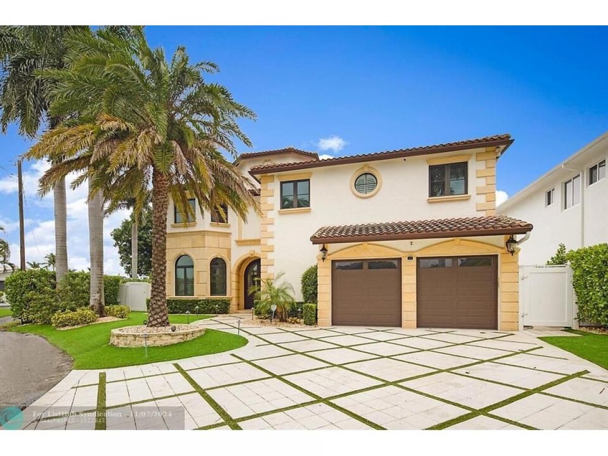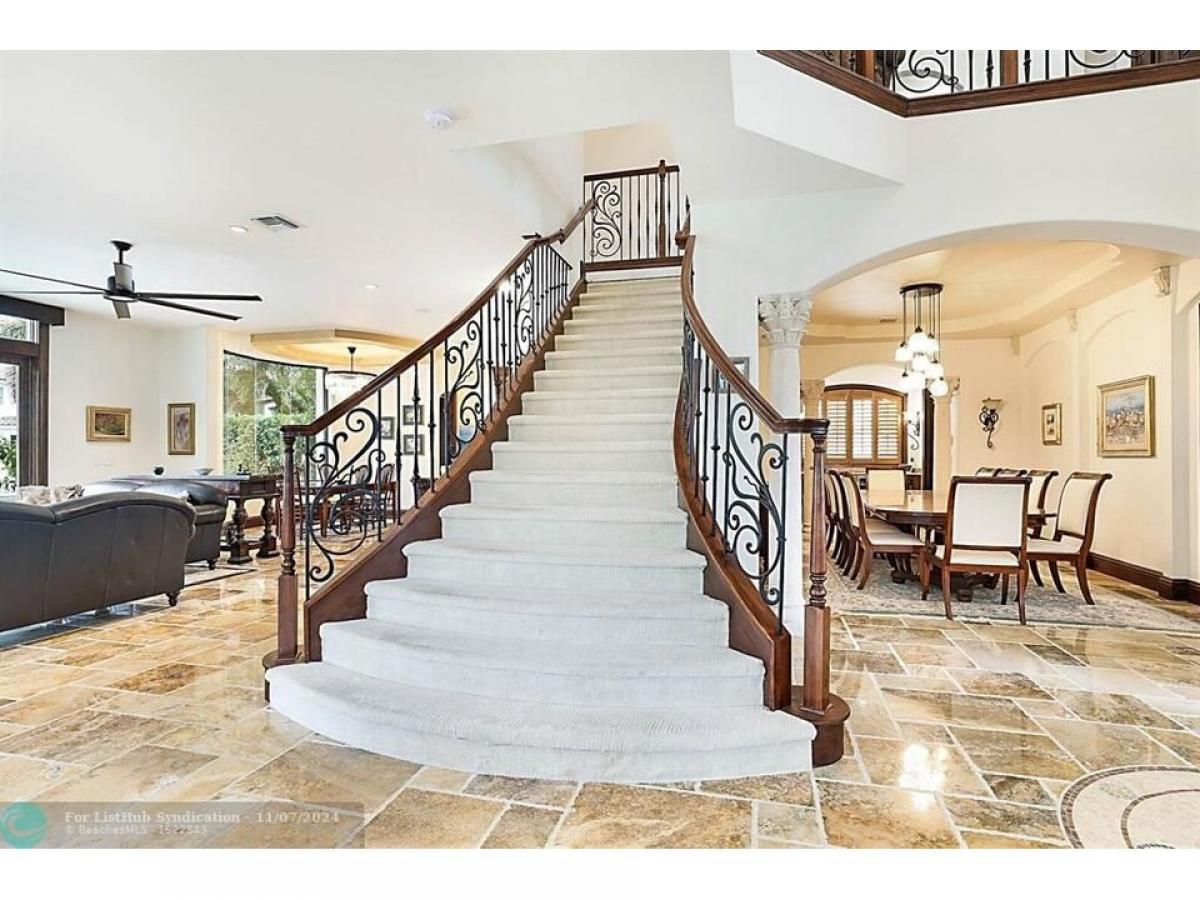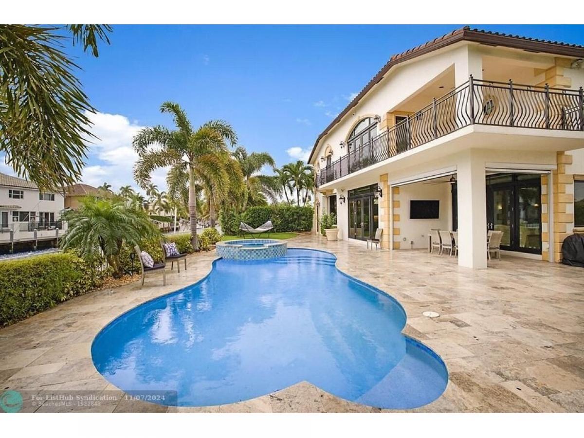 This elegantly finished 6-bedroom, 6.5 bath home features marble floors, vaulted ceilings, beautiful dark wood trim and solid doors, grand staircase, carved limestone fireplace, and more. This home checks all the boxes with full house generator, 95#039; concrete dock with 27,000 lb. boat lift, east exposure on the pool, patio and back yard, and is located at the end of a cul-de-sac street with no traffic. Luxurious master suite has beautiful views with a balcony that overlooks intersecting canals, his and her baths, steam shower, and 2 very large closets with custom cabinetry. Expansive back yard which features new putting green, patio with retractably screens and hurricane screen as well as astroturf in the front and back yards for low maintenance and more time enjoying the Florida Sunshine.