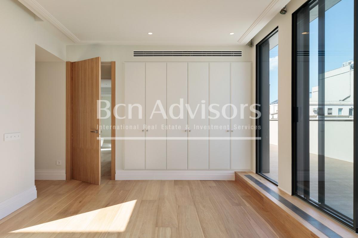 This spectacular penthouse is located in a new-build floors constructed in 2024 in a fully renovated regal estate building. It's right on Rambla Catalunya, one of Barcelona's most iconic streets, allowing you to enjoy all the splendour of the Eixample and the city centre, just a 10-minute walk from Plaza Catalunya.The penthouse occupies the 5th and 6th floors of the building. In total, it has 189.8 built interior sqm and 59 exterior sqm. It's very quiet, as it overlooks the block courtyard with views of Casa Batllo. This is an exclusive property with the highest quality materials and finishings, designed to offer you maximum comfort and elegance in one of the most sought-after areas of Barcelona.