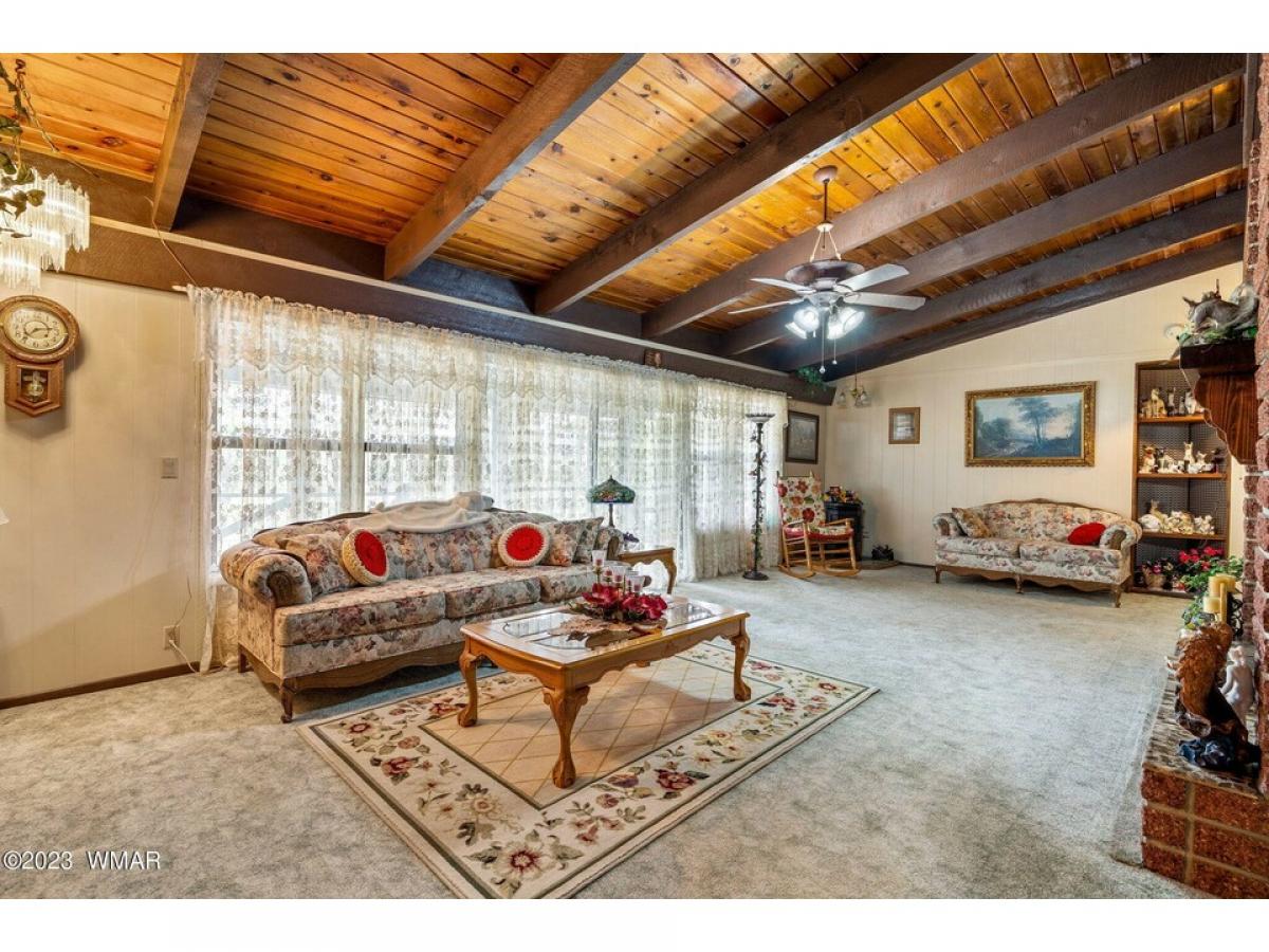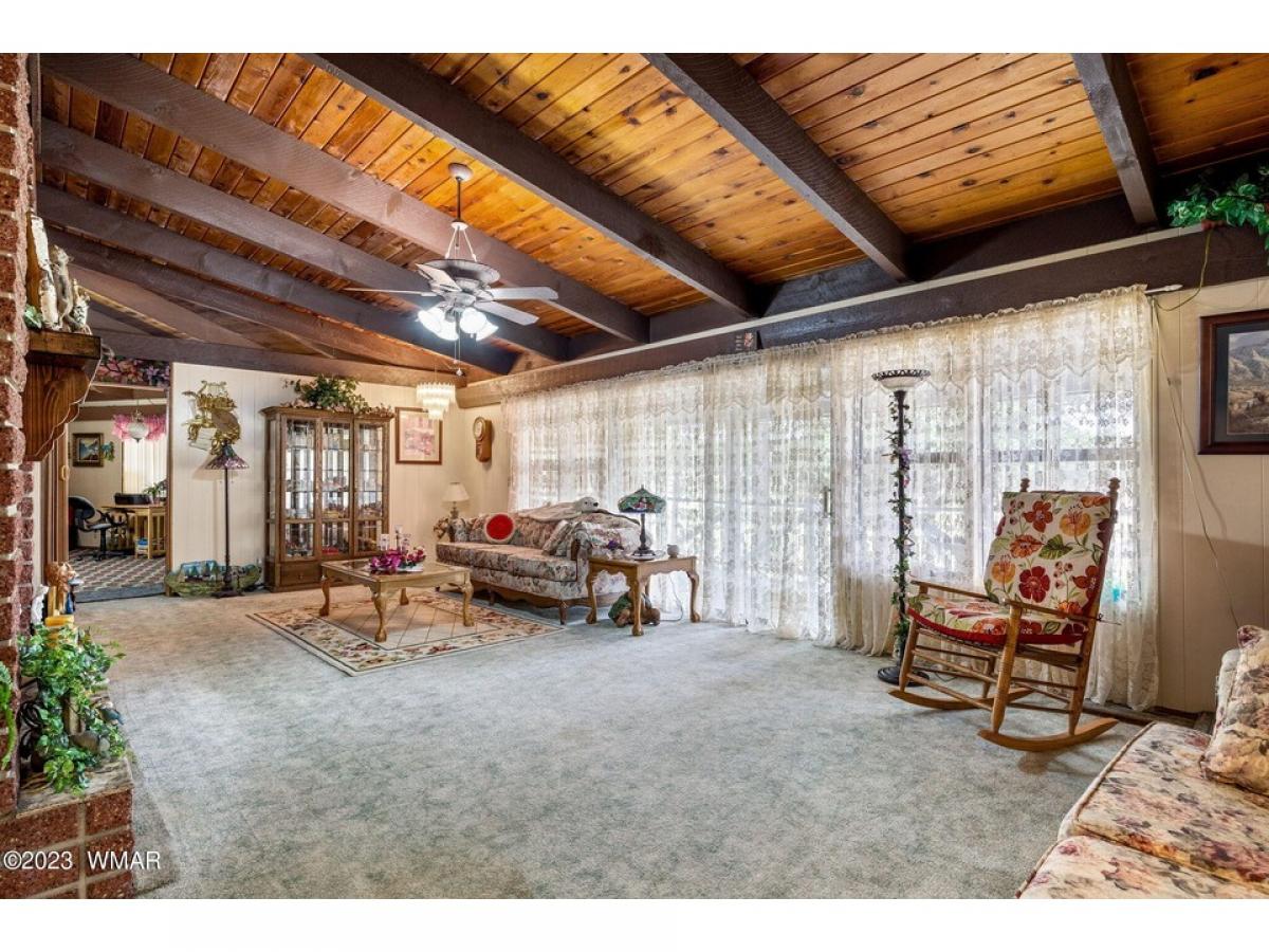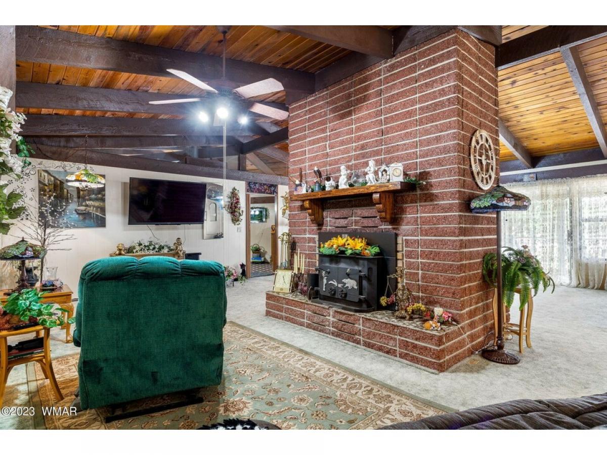 3,597 Sq.ft. 3 BD/2 BA home located in the Alpine Country Club Estates overlooking the No. 9 Fairway and Green on a 1.59 forested acre parcel with mountain views. Features a Living Room/Family Room with a double-sided fireplace with a wood burning insert on one side and a wood burning fireplace on the other side; kitchen/dining room combination; library with a wet-bar area; large recreation/pool table room with fireplace; utility/pantry room. Detached 3 car garage with storage room. Covered front porch; and enjoy the views from the covered back deck.