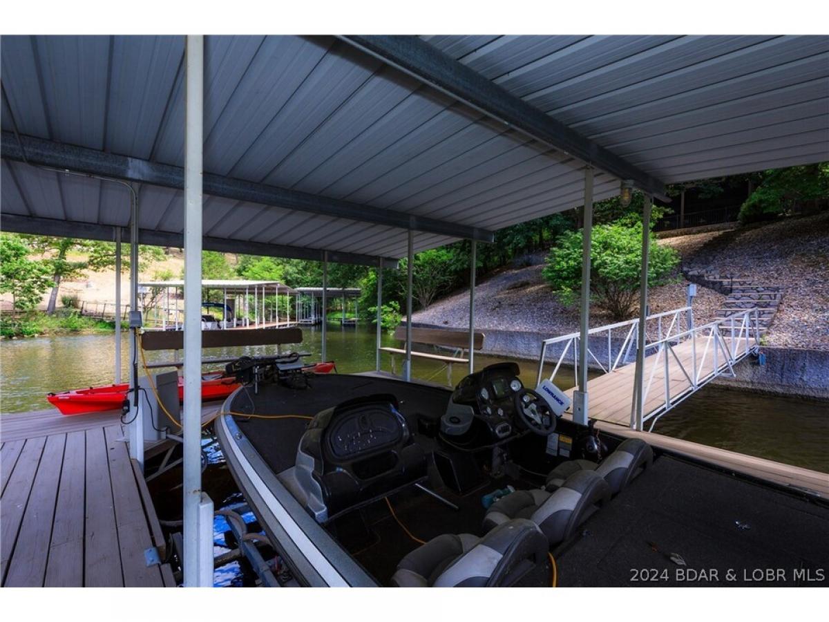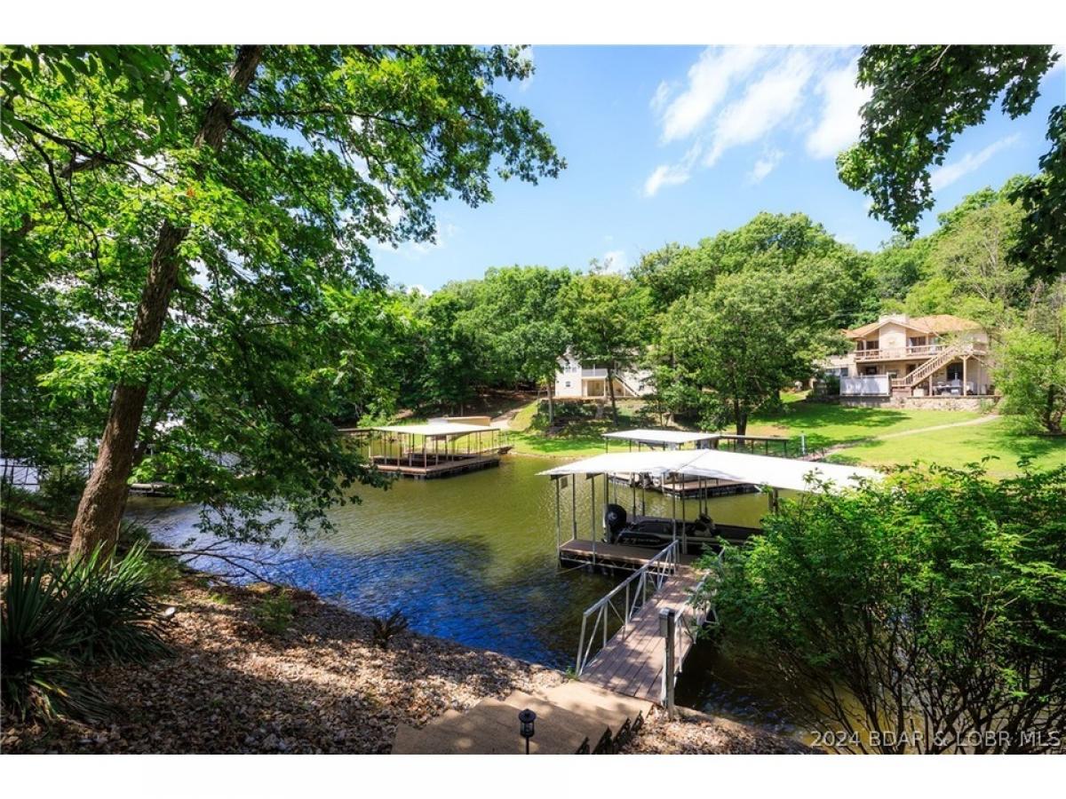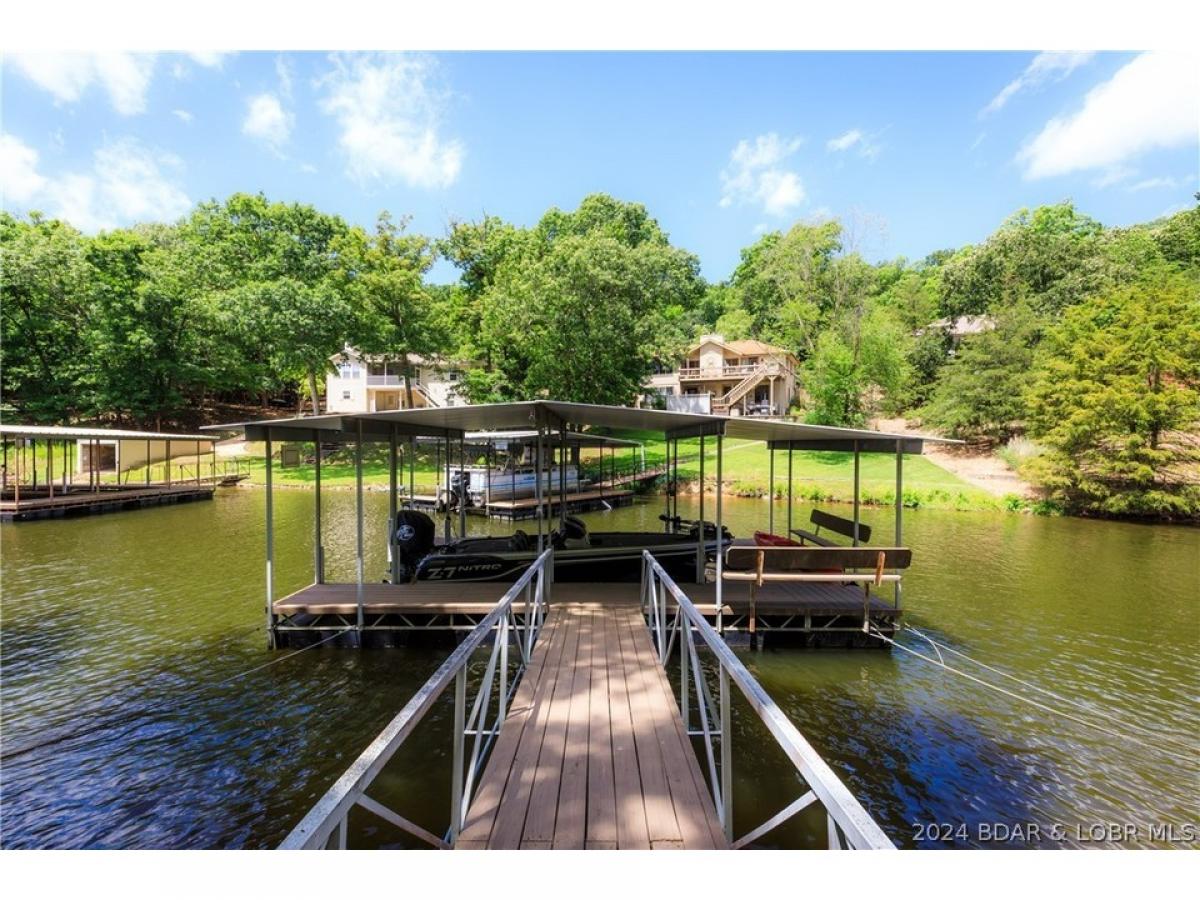 What a warm, inviting, and comfortable lakefront house located in Linn Creek cove at the 31 mile marker of the Osage. This house features 5 bedrooms (2 are non conforming), a spacious kitchen with granite countertops, 2 living areas, 2 wood burning fireplaces, a lakeside den/office, oversized deck, and large screened porch. The loft serves as the master suite. Recent updates include new cortex flooring, 2 custom walk-in showers, granite countertops in the bathrooms, deck doubled in size, stamped concrete on screened porch, and new shudder treatments on windows. The dock offers a 10x24 boat slip and lift, both are included. The cove location provides plenty of protection for the dock from the rough waters of the main channel. The property offers 123 feet of lake frontage and plenty of mature trees. The lots on both sides of the home are empty lots providing plenty of privacy. Foxhead Shores is a well known and desired subdivision located down Y road in Linn Creek featuring wonderful neighbors, a quiet golf cart community, and fantastic amenities; community pool, club house, tennis courts, and boat trailer parking. The assessments cover the cost of water, trash, cable, and internet.