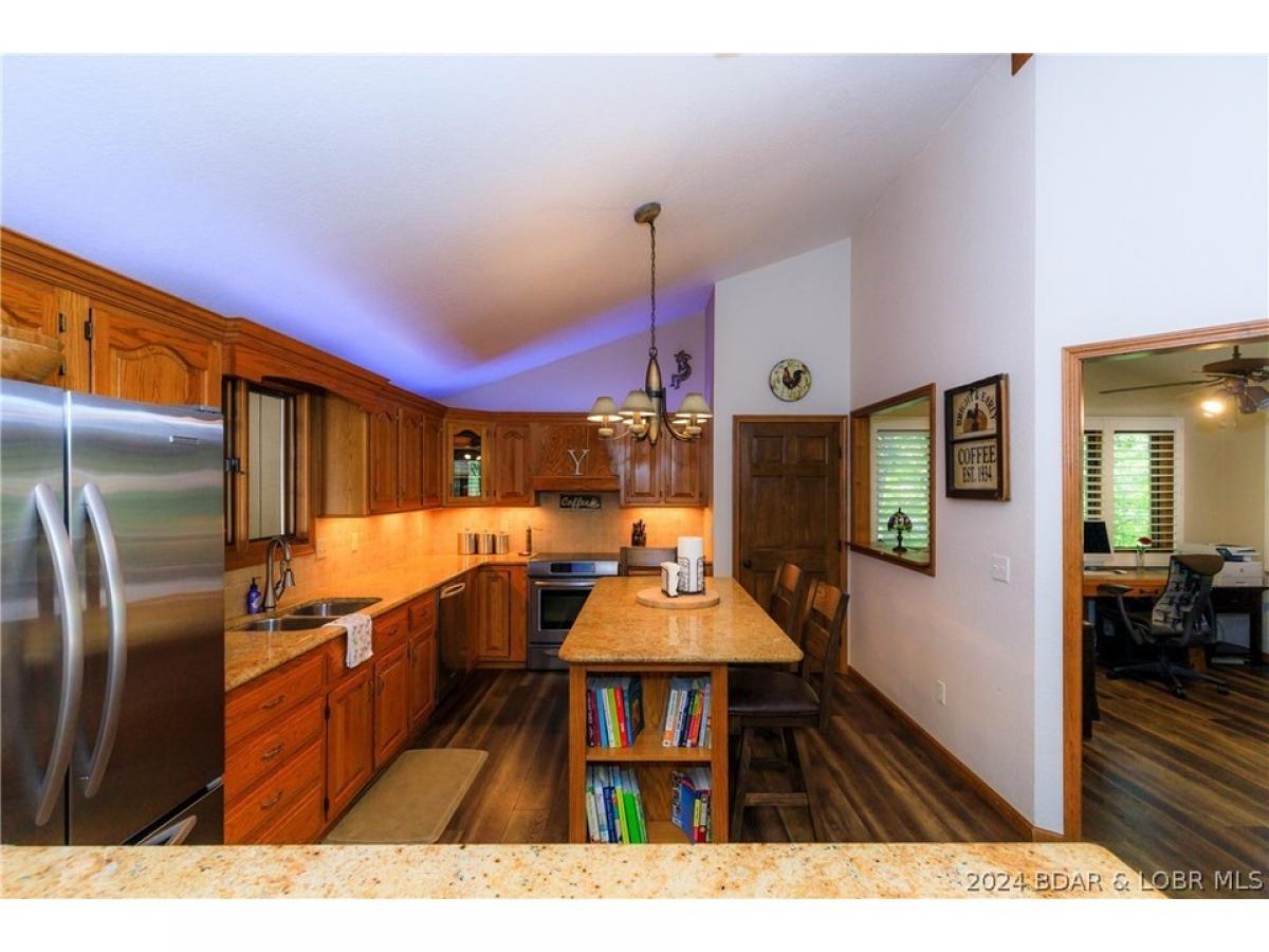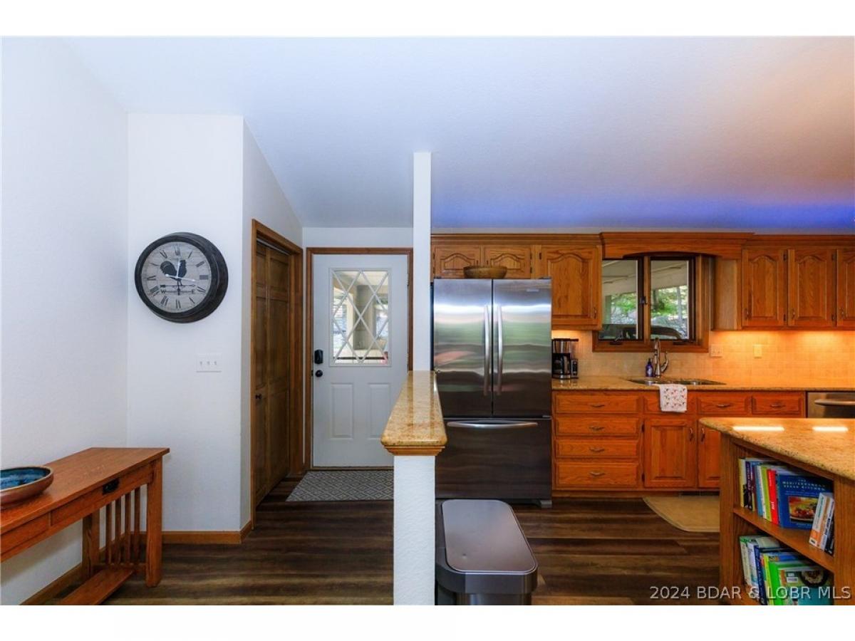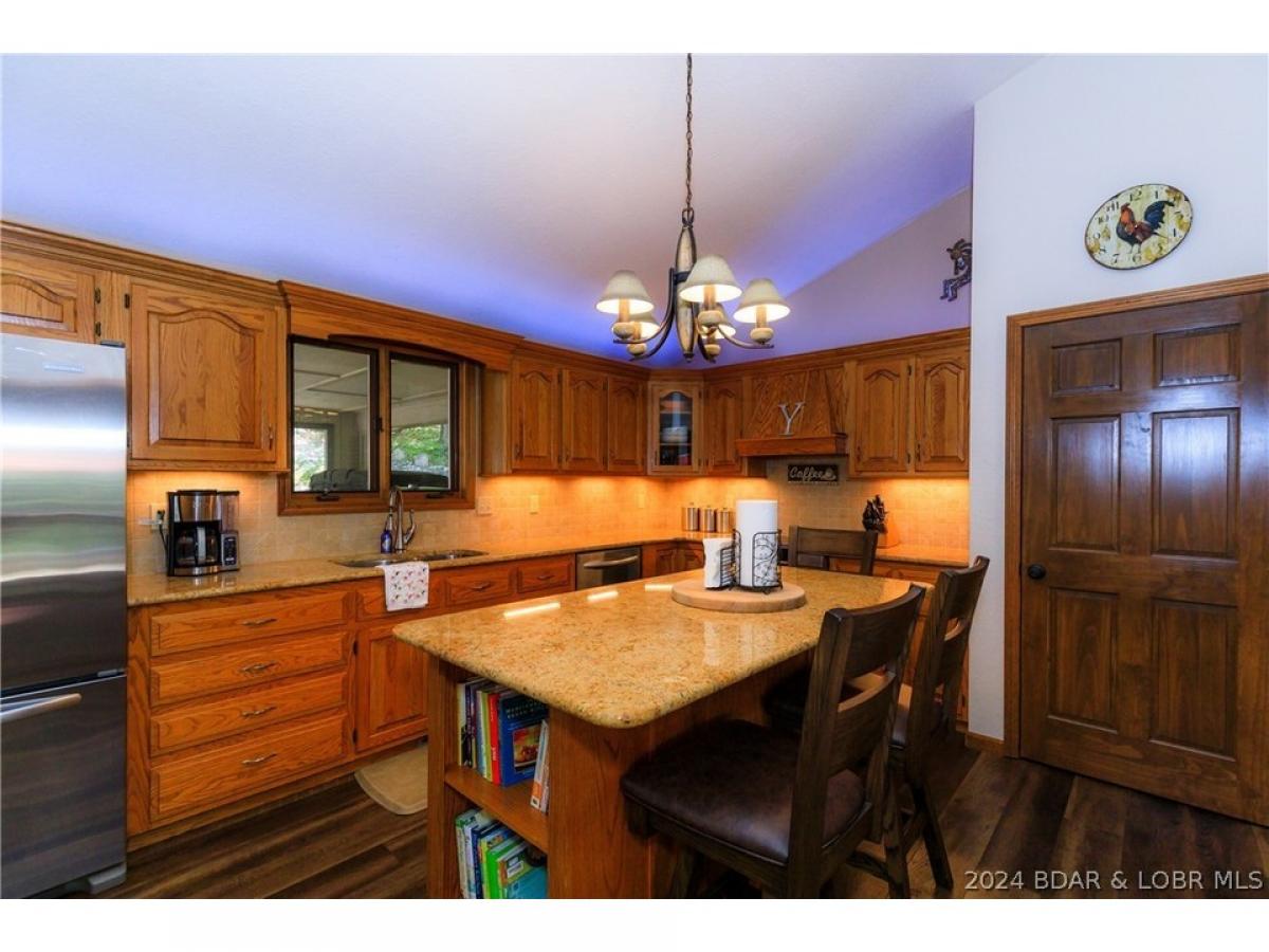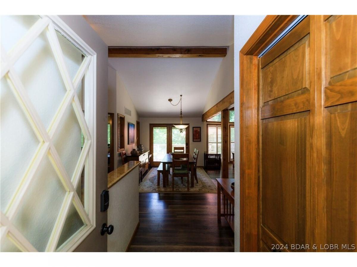 What a warm, inviting, and comfortable lakefront house located in Linn Creek cove at the 31 mile marker of the Osage. This house features 5 bedrooms (2 are non conforming), a spacious kitchen with granite countertops, 2 living areas, 2 wood burning fireplaces, a lakeside den/office, oversized deck, and large screened porch. The loft serves as the master suite. Recent updates include new cortex flooring, 2 custom walk-in showers, granite countertops in the bathrooms, deck doubled in size, stamped concrete on screened porch, and new shudder treatments on windows. The dock offers a 10x24 boat slip and lift, both are included. The cove location provides plenty of protection for the dock from the rough waters of the main channel. The property offers 123 feet of lake frontage and plenty of mature trees. The lots on both sides of the home are empty lots providing plenty of privacy. Foxhead Shores is a well known and desired subdivision located down Y road in Linn Creek featuring wonderful neighbors, a quiet golf cart community, and fantastic amenities; community pool, club house, tennis courts, and boat trailer parking. The assessments cover the cost of water, trash, cable, and internet.