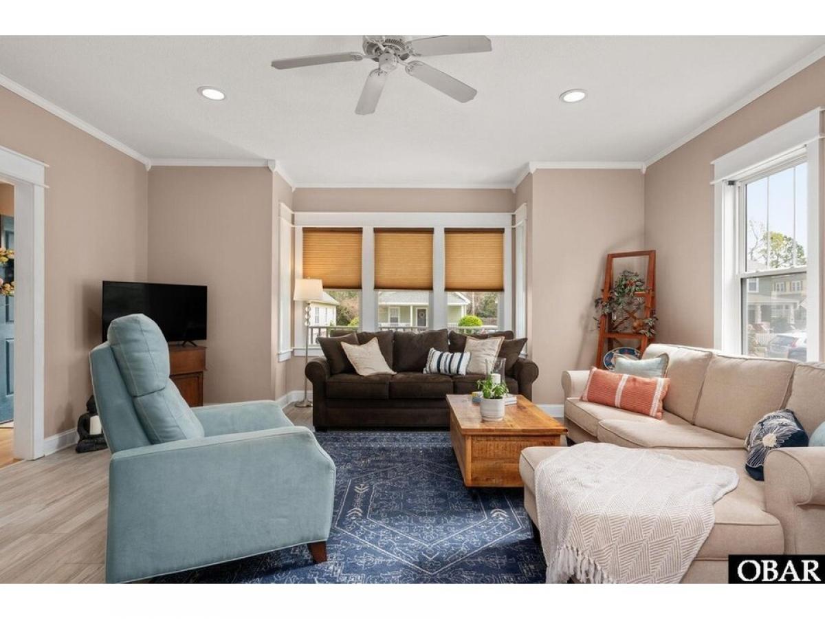 Hurry and come see this adorable house in one of the coolest neighborhoods in Manteo! With white picket fences and sidewalks, this is a quiet spot that is only a 4 minute walk to downtown! This property shows like a Norman Rockwell dream! On a double lot, the house and adjoining cottage are properly proportioned and flow seamlessly. The big house has 1723 s.f. and the cottage has 560 for a total of 2283 heated square feet. Enjoy the landscaped yard from the front porch, rear screen porch or the courtyard. Inside the home the living room feels like home. Wood floors, crisp white trim, 9 foot ceilings and large windows add a sense of comfort and style. The kitchen and dining room are generously sized for entertaining and every day living. Upstairs three bedrooms have updated baths and ample space. The secondary cottage (ADU) is newly and beautifully remodeled and permitted and features a full kitchen with stove, fridge and disposal, a full bath, living area and sleeping area. There is plenty of storage in 2 attics and the garden shed. Both the main house and the adu have new fortified roofs! Every owner of this home has loved and improved it. Its is truly a special spot!