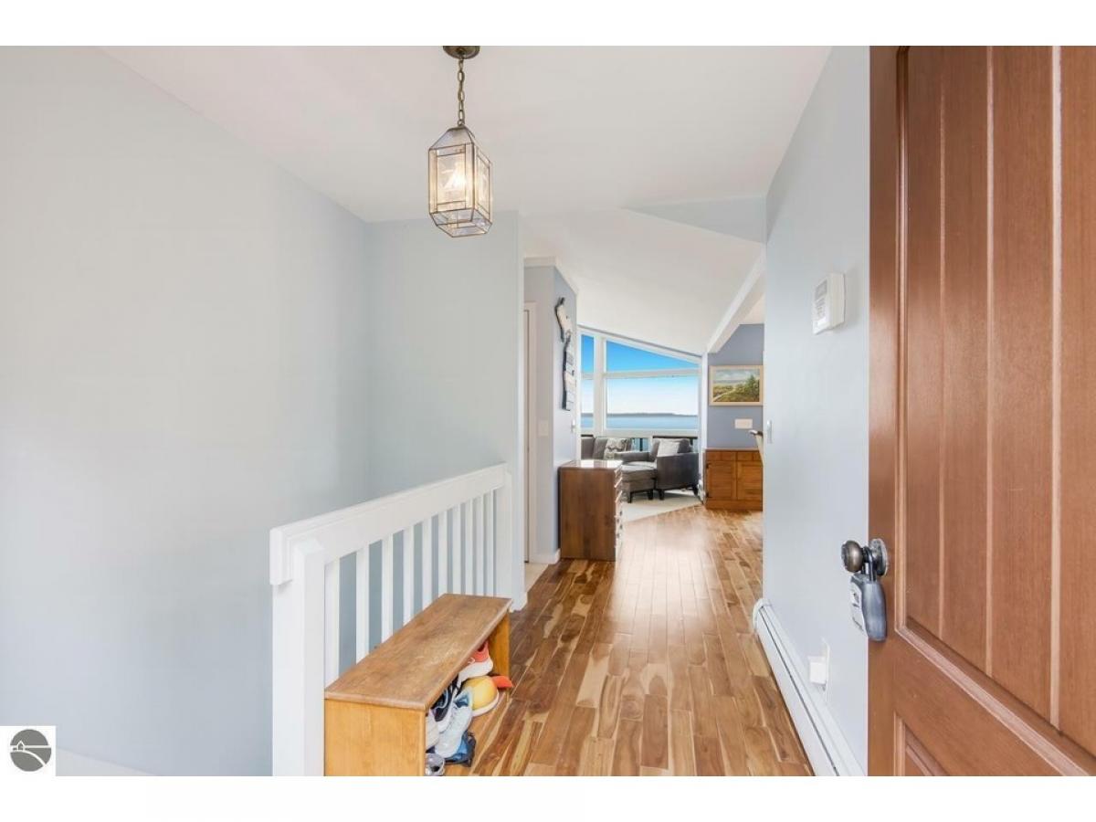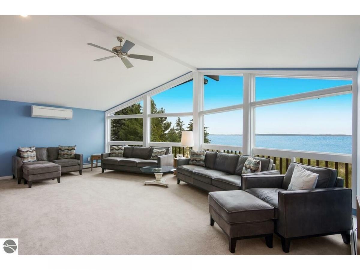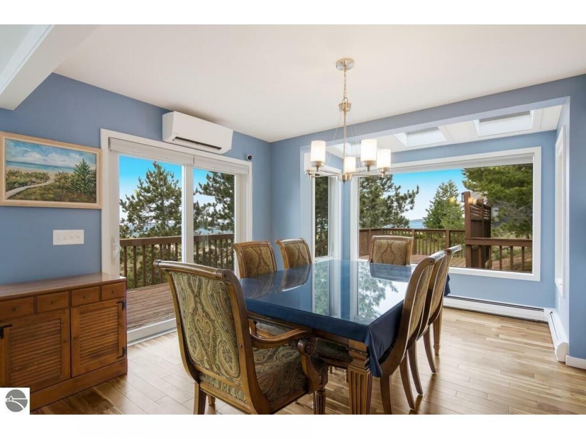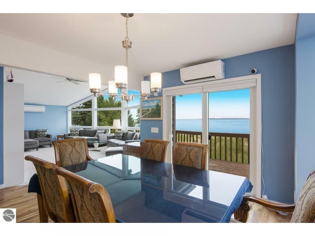 Gorgeous private sandy frontage on Grand Traverse Bay just north of Elk Rapids. This lovely 5 bedroom home has a stunning living room with prow windows to take full advantage of the expansive views. Kitchen and dining have easy deck access for al fresco dining bay side. Wake up to the gorgeous views in the primary bedroom with attached bath. 2 additional bedrooms and bath on the main floor. Walk out lower level has a spacious family room ideal for tv nights. 2 additional bedrooms and full bath as well as an office space with its own entrance. Oversized 2 car garage has room for all the toys. Major improvements since 2017 - New Windows & Doors (Pella), Full House Generator, New Boiler, Sea Wall at Waters Edge, New Dock included.