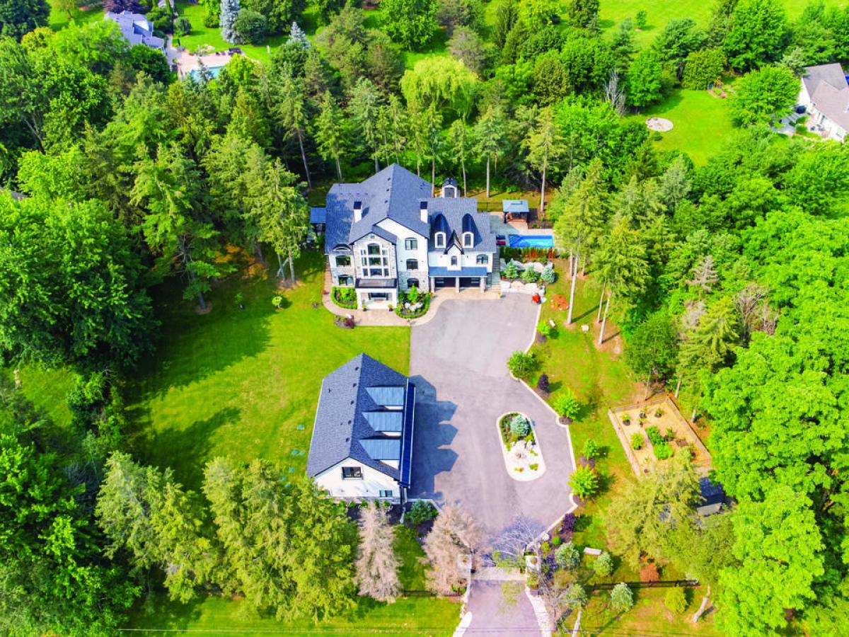 Welcome To Your Own Private & Tranquil Paradise With Over 1 Acre of Lush Land in Desirable Rural Burlington & Surrounded By Other Multi-Million Dollar Estates. Past The Modern Security Gates Lies A Custom Mansion With Sleek Stone/Stucco Facade & Expansive Windows That Offers Approx 6000 SF of Living Space. Inside You're Instantly Met W/ Meticulous Workmanship & Luxury Finishes That Include A Mix of H/W & Porcelain Flrs, Coffered Ceilings, Soaring Ceiling Heights, Designer Chandeliers, B/I Speakers & An Elevator On All 3 Levels! The Beautifully Laid Out Main Floor Intricately Combines All The Primary Living Spaces For A Seamless Transition from Rm to Rm. The Main Gourmet Ktchn Fts A Lg Centre Island W/ Waterfall Quartz Counters, Dacor B/I Appls & Ample Cabinetry Space. Accompanying This Level is The Owners Suite Designed With A Gas Fireplace, Spacious W/I Closet, Direct Access to The Bckyrd Patio & An Elegant 5pc Ensuite. Above You Will Find 3 More Bdrms With W/I Closets & Ensuites + A Hidden Bonus Rm! The un-filled Lower Lvl Completes This Home W/ A Theatre Rm, Office & Rec Rm. Truly 1 Of A Kind w/ Control4 System, Saltwater Pool, Heated Detached 3 Car Garage w/12ft Ceilings + A/C & Water Supply, Prof. Landscaped Grounds, 3 Sep Kitchens + More! Amazing Location Surrounded By A Plethora Of Amenities Including Smokey Hollow Waterfall, Parks, Trails, A Short Commute To Mount Nemo Conservation Area, Tyandaga Golf Club, Mapleview Shopping Centre and More! Existing Electrical Light Fixtures, Window Covers, Kitchen Appliances Including Stove & Beverage Fridge in Sunroom, Washer & Dryer, B/I Speakers, Garage Door Opener/Remotes, Control4 Security System, 2 Natural Gas Fireplaces, HWT.