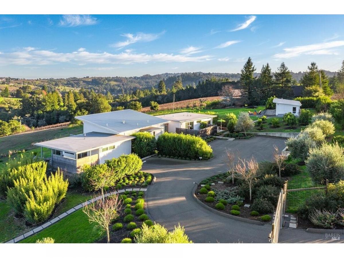 Designed with understated elegance and a deep connection to its surroundings, this 2,828 sq ft residence, accompanied by a secluded 480 sq ft jewel-box studio, is a masterclass in intentional design and seamless indoor-outdoor living. The VIEWS are nothing short of spectacular. Wake up to breathtaking sunrises over the Mayacamas, as golden light fills the home, and unwind beneath a star-studded sky as moonrises drift over rolling vineyards. Sleek and Modern, the home features clean lines, floating walls, and expansive triple-panel sliding glass doors that frame nature at every turn. The over 8 acres of Goldridge land is more than just scenery - it nourishes and inspires, designed to complement rather than compete with nature. Enjoy front row seats to a landscape that shifts with the time of day and season. A thriving 1/4-acre culinary garden, curated by a master gardener, offers a true farm-to-table experience where meals begin not in the kitchen, but in the garden and the orchard. 8.5 GPM! Entertain easily with chef#039;s kitchen plus an outdoor Fontana wood-burning oven. The jewel-box studio is currently a state-of-the-art music recording space with equally expansive views. So SEXY! The hosted Airbnb here was voted #1 in California and #3 in the nation! Everything is over-the-top!