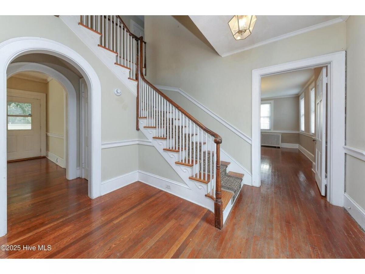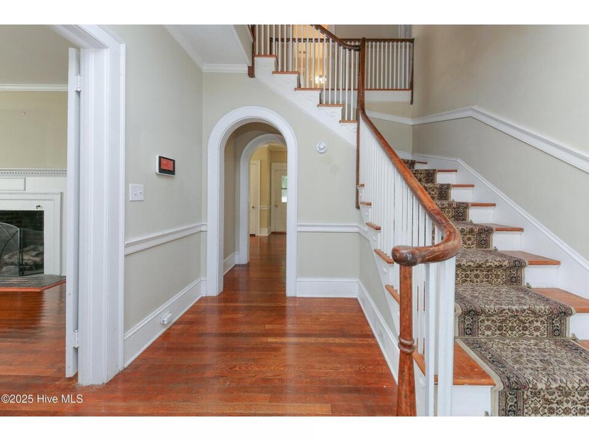 Stunning brick home, rich in history and modern elegance. Located in the heart of Elizabeth City. Concrete circular driveway leading up to this grand home. Upoon entering the foyer: captivates one by the beautiful trim and craftsmanship while boasting of elegant hardwood flooring and tile throughout. The main level includes a family room with a cozy fireplace and a den/office with an additional fireplace, perfect for relaxing or working from home. The kitchen is a chef#039;s dream, boasting granite countertops, ample cabinet space, a center island, and tile floors. Adjacent to the kitchen is a formal dining room, ideal for entertaining. A convenient half bath is located on the first floor. Descend the stairs to the basement where you#039;ll find the natural gas furnace, water heater, and laundry area. The gorgeous hardwood staircase leads you to the second floor, which features two generous front bedrooms sharing an ensuite, and two back bedrooms with a spacious bath and shower. Back to the kitchen is a deck that overlooks the charming courtyard. The converted garage is now a detached building, adding to the home#039;s versatility. Situated on a corner lot with a white picket fence in a fantastic location. This would make a great primary home 0r short or long term rental Elizabeth City is ranked 1st in North Carolina for #039;#039;Smallest Cities#039;#039;. This home is a short distance to the waterfront shops and restaurants, and within five minutes to the new hospital. Easily get to the highway. Come enjoy the charm and all that our town has to offer! Call today. This property qualifies for the conventional community economic program .