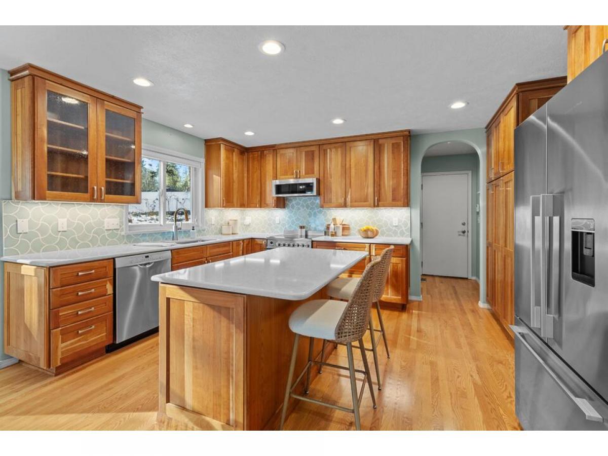 Tucked away at the end of a cul-de-sac, this 5-bedroom, 4-bath beauty is the definition of livable luxury. Designed for both entertaining and cozy nights in, every inch is crafted with quality and intention. The kitchen is a showpiece, blending style and function with cherry cabinetry, sleek quartz countertops, and top-tier Bosch and Fisher Paykel appliances. This gorgeous kitchen will certainly be the focal part of your new home. The Primary suite features a fully updated spa-inspired bath, complete with a walk-in shower, double sinks, a soaking garden tub, and gorgeous granite and tile finishes. The backyard is fully fenced and thoughtfully landscaped with fruit trees, perennial gardens, and a storage shed for all your extras. Whether you're unwinding on the brand-new deck or hosting an evening under the stars, this outdoor space delivers peace and privacy. Notable upgrades include new Andersen windows, a newer AC and furnace, and a brand-new roof. This home is move-in ready and waiting for you!