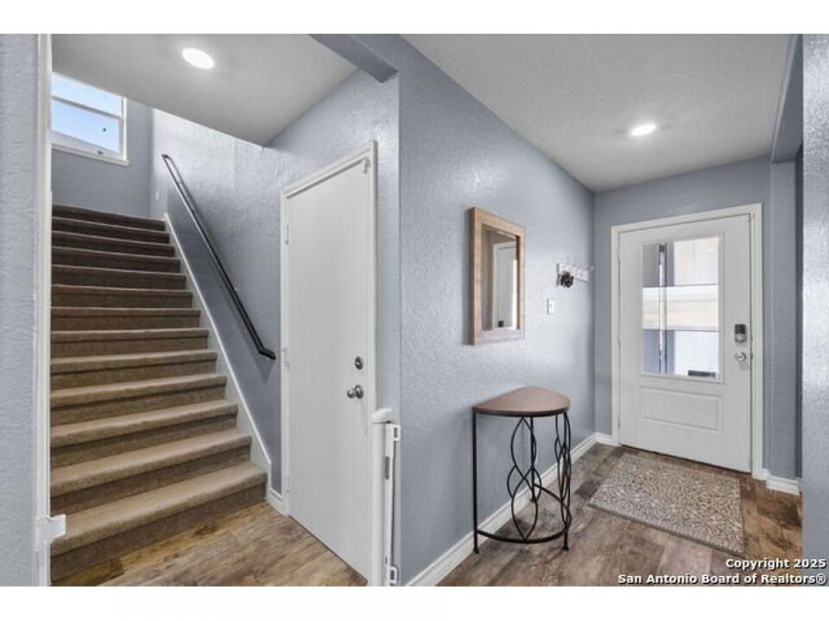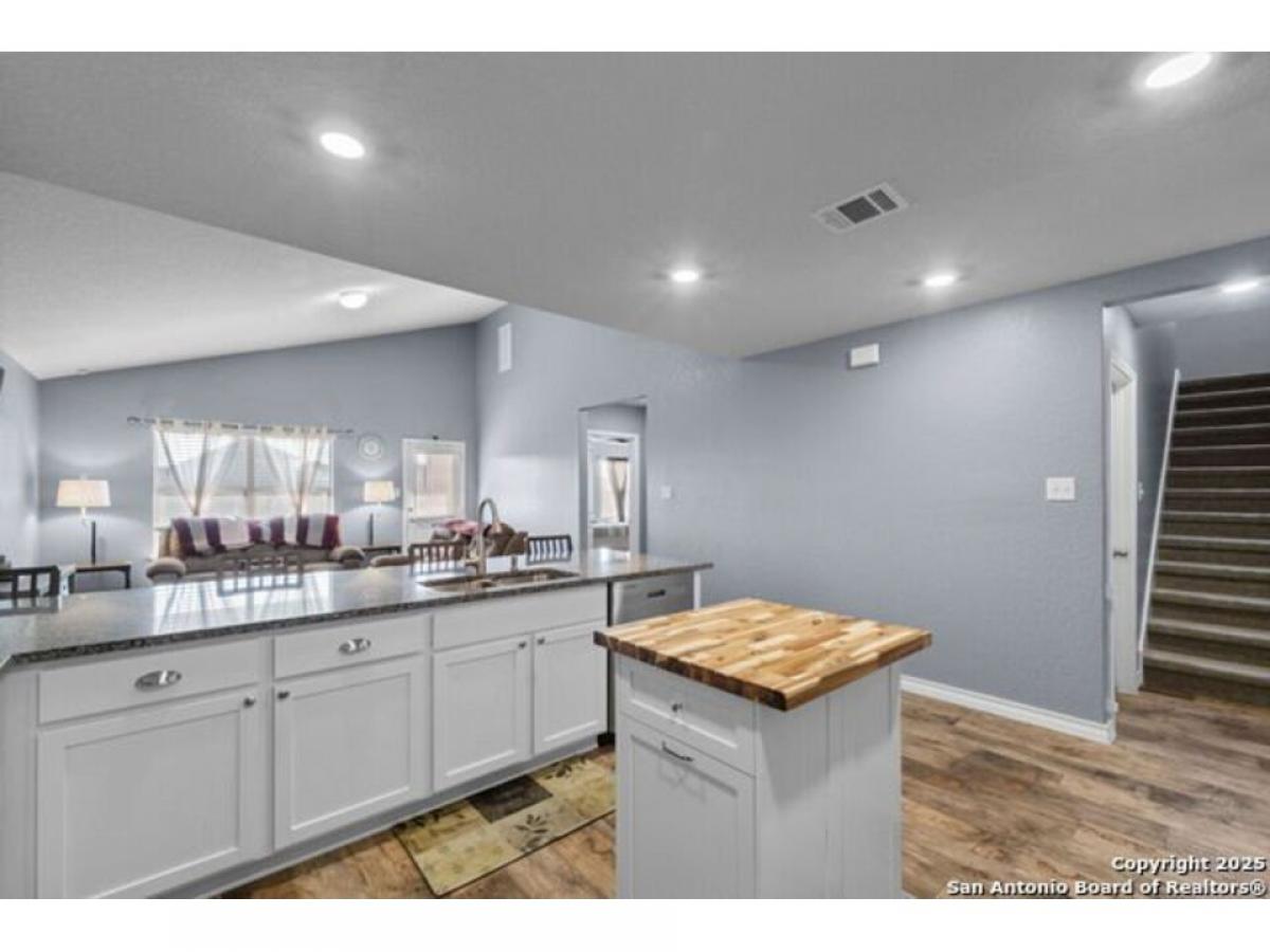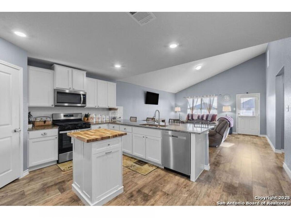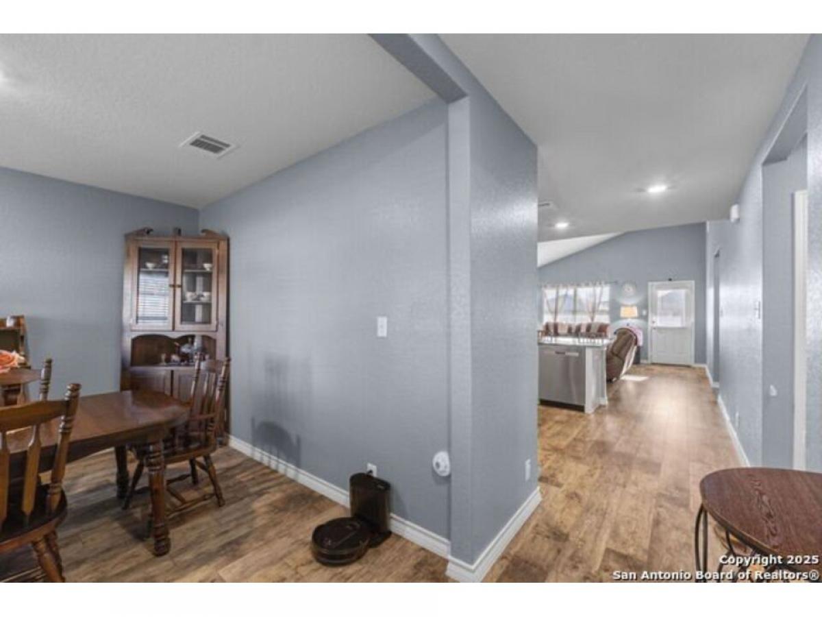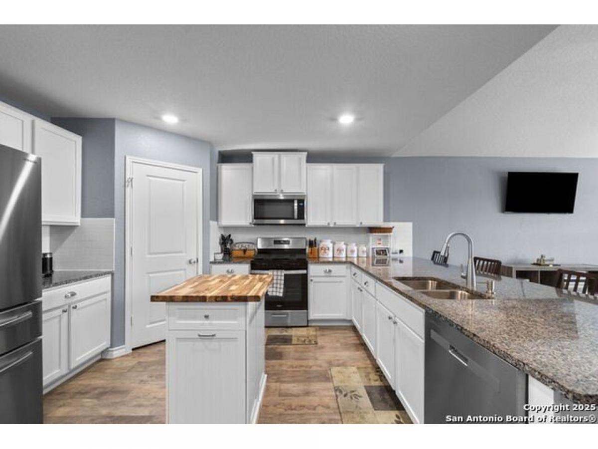 Not far from bustling but quaint downtown Cibolo, just one block from Steele High School and one block from the incredible Steele Creek Amenities Center - This stunning two-story home offers a thoughtfully designed living space with 4 bedrooms and 2.5 bathrooms. The Walsh floor plan was the most popular floor plan in Steele Creek and there are no more available. This your opportunity! As you approach the home, a charming covered front porch leads into an elegant formal dining room or possible flex room, setting the tone for the rest of the home. Enter the hallway and you#039;re greeted by a beautiful open kitchen featuring sleek stainless steel appliances, granite countertops, a trendy white subway tile backsplash, a spacious corner pantry, ample cabinet space, and a generous eat-in breakfast bar. The kitchen flows into a large living room with a striking vaulted ceiling. The living area opens to a covered patio that overlooks a huge backyard, ideal for outdoor dining or entertaining, with green space behind that limits direct exposure to backyard neighbors. The private primary suite is conveniently located downstairs off the family room. The ensuite bath has dual vanities, a separate tub and shower, ceramic tile flooring, a water closet, and a spacious walk-in closet with built-in shelving. A half-bath is located just off the family room, and the oversized utility room is near the kitchen and stairs. Upstairs, you#039;ll find a large game room or office area, a second full bath, and three generously sized secondary bedrooms, two with walk-in closets. Additional highlights include 9-foot ceilings, luxury vinyl plank flooring in the entryway, family room, kitchen, and dining room, ceramic tile in all bathrooms and the utility room, a well maintained water softener, and did I mention the huge backyard? Located in a desirable neighborhood, this home offers outstanding amenities such as a large lap pool, expansive playground, sports courts, and scenic jogging trails. With convenient access to nearby shops, dining options, and top-rated schools, it truly has everything you need.