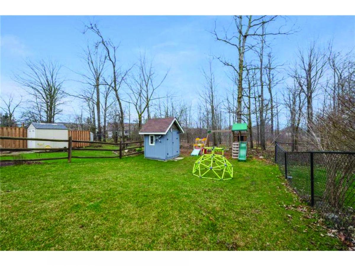 Freehold townhouse in a secluded location backing onto greenery and the Konkle Creek walking trail. Modernized kitchen featuring a breakfast nook, living and dining areas with expansive windows, bathing the space in natural light.