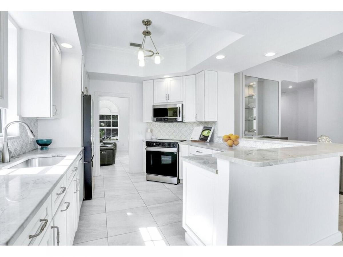 Welcome to this stunning 3 bedroom plus den 3 bathroom (split master his amp; hers) salt water pool home on 1/3 acre premium lot in gated exclusive Magnolia Bay. This Divosta Oakmont built in 2004 is a poured concrete home with 100% hurricane protection sitting on a private lot overlooking the lake.The Great Room with built ins amp; lovely large grey amp; white tile offers 12 foot crown molded ceilings. Stunning chefs kitchen with quiet close cabinetry amp; pearl grey granite. Master suite is spacious with his amp; hers bathrooms with no step marble tile shower, soaking tub amp; quartz counters.Upgraded to perfection too many to list.The den office offers lovely work space. Spacious guest bedrooms with updated marble tile amp; quartz guest bath.Garage with new epoxy floor amp; built ins. virtually staged