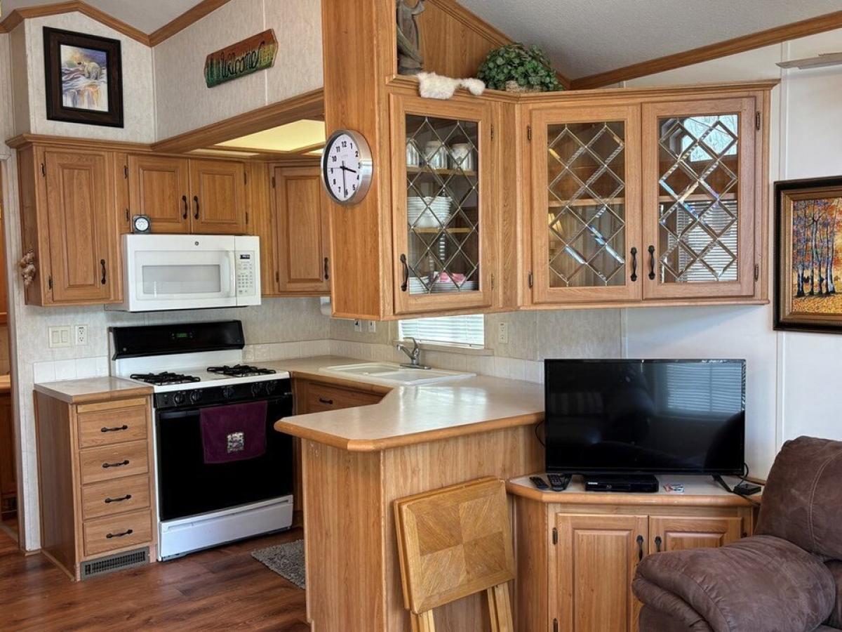 ON THE POND PARK MODEL... LOVELY VIEWS! Treed with private back yard. Walk the nearby greenbelt along Payette River. OR enjoy the seasonal indoor swimming pool in the neighborhood clubhouse. Fishing at Lake Cascade. Drive your RZR around town. So much to do and see! Park model has lots of new items: plumbing, flooring, water heater, microwave, and fridge. Appliances, furniture included along with the stackable washer/dryer. Great location in the park!
