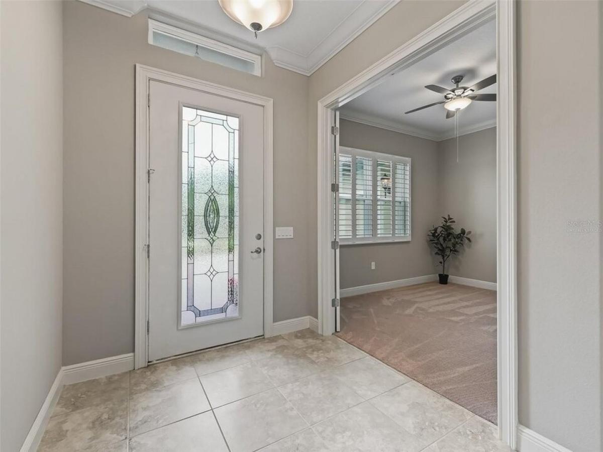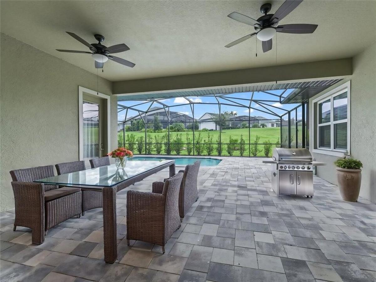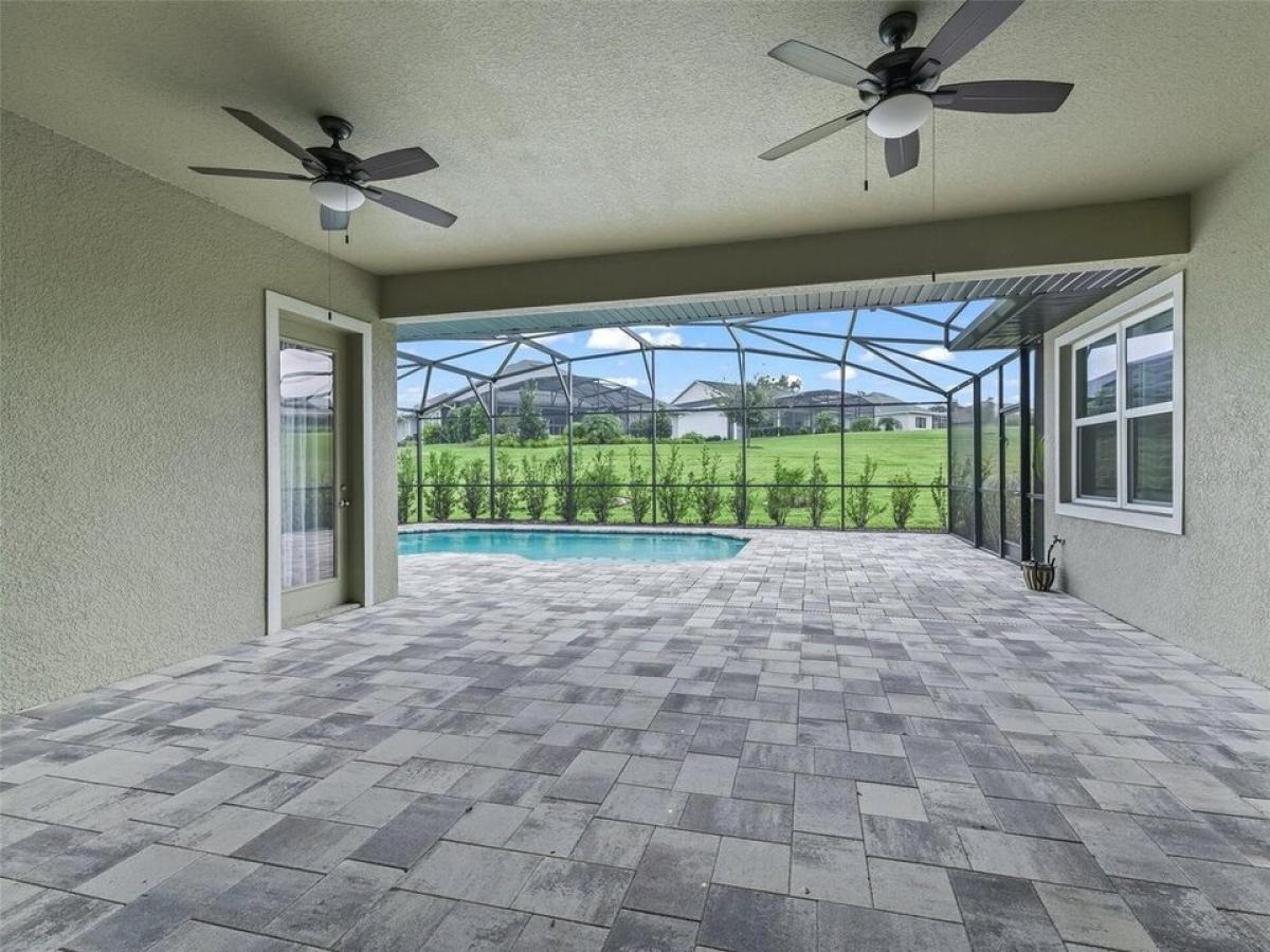 One or more photo(s) has been virtually staged. BETTER THAN NEW Exquisite 3-bedroom Home with Pool, Den, and Golf Cart Garage. Welcome to this stunning, meticulously maintained home, built in 2020, featuring 2,378 sq ft of elegant living space on a large 0.42-acre lot. This original owner property showcases impeccable attention to detail, offering 3 spacious bedrooms, 2 full baths, and a den with French doors, perfect for a home office. Highlights of this Home Include a Gourmet Kitchen with granite countertops, wood cabinetry, stainless steel appliances, a walk-in pantry, and a light-filled breakfast nook with plantation shutters. The open floor plan connects the kitchen to the large, inviting Great Room. The Great Room has beautiful tile floors, a tray ceiling with crown molding, stackable sliding doors leading to the screened lanai and pool area, and abundant natural lightmdash;perfect for entertaining or relaxation. The Den/Office is a cozy retreat featuring plantation shutters, plush carpeting, and full glass French doors, offering a private, peaceful workspace. The Luxurious Primary Suite is Spacious enough for a king-sized bedroom set, with two large walk-in closets, crown molding, an elegant ceiling fan, and direct access to the pool and lanai. The Spa-Like Primary Bath features Two separate vanities, a huge open shower stall, a linen closet, and chic lighting, making this bathroom a serene escape. The two Additional Bedrooms are generously sized rooms with ample closets, plantation shutters, and large windows that bathe the spaces in natural light. A full bath is conveniently located between the bedrooms. And since this is Florida your Outdoor Oasis awaits. The screened lanai and saltwater pool with heat pump ensures year-round enjoyment. Paver flooring and privacy landscaping create a peaceful outdoor living space with eastern exposure, perfect for enjoying beautiful Florida sunrises. Additional Features include an Inside laundry with utility sink and cabinets, a two-car garage with a separate golf cart garage, and additional access to the side yard. Situated on a beautifully landscaped lot with trees and privacy hedges, this home offers tranquility and luxury living in one. The east-facing pool is perfect for enjoying the morning sun and big sky views. Harbor Hills is an all-age, 24-hour guard gated community situated on one of the highest elevations in Central Florida and has a canal leading into Lake Griffin. It is close to shopping, hospitals, and entertainment. As a Country Club member, you will have access to the Country Club, Golf, Tennis, Pool, Racquet Ball, Fitness Center, Boat Dock, Pickle Ball, and social clubs. The Villages is approximately 8 minutes, Leesburg is 15 minutes, Ocala is 45 minutes, Disney World is 1 hour, and Tampa is 2 hours away, from Harbor Hills. The home is in the state#039;s center, giving easy access to both coasts. Don#039;t miss out on this extraordinary homemdash;schedule your private showing today!