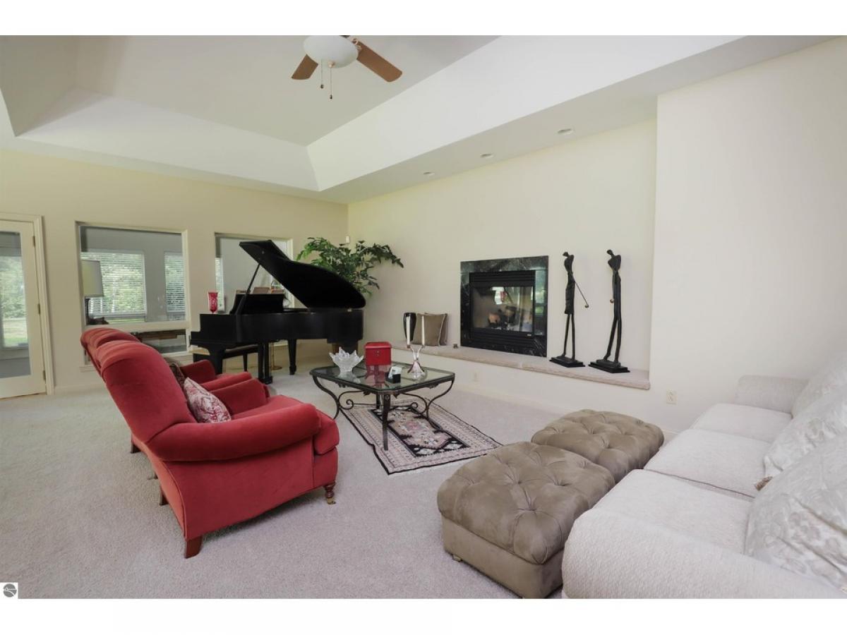 This contemporary custom built home is located on the 8th hole of The Dream, just minutes from downtown West Branch. Main level has two bedroom, two bath and extended living space in every direction. A spacious entry leads to a cozy den/office with built in cupboards and shelving. Step into the open living room with tray ceiling, overhead lighting and gas fireplace. Adjoins the formal dining room which has a wet bar, built in storage for all your entertainment needs and a great view of the golf course. French doors open up to a four season room ~ access to outside patio. A turret shaped breakfast nook has built in cupboards and lots of natural light and views! Kitchen is located between the breakfast nook and formal dining room ~ granite counter tops, overhead lighting, ceiling fan, cupboards with pass thru to dining and living room. Main bathroom has a tub surround with glass doors, spacious vanity and overhead lighting. Master suite has large floor to ceiling bay, double walk in closets, bathroom with double sink vanity, walk in shower with glass doors, raised bathtub and large glass block window. Main floor laundry has lots of storage, in wall ironing board and a large laundry tub. Home has full basement, mostly finished. Large open family room, one bedroom, full bath, plus an office area the could easily be converted to an additional bedroom. Mechanical room plus lots of storage. Attached oversized two car garage. Whole house generator. Nicely landscaped exterior. A home that will check all the boxes and more!!