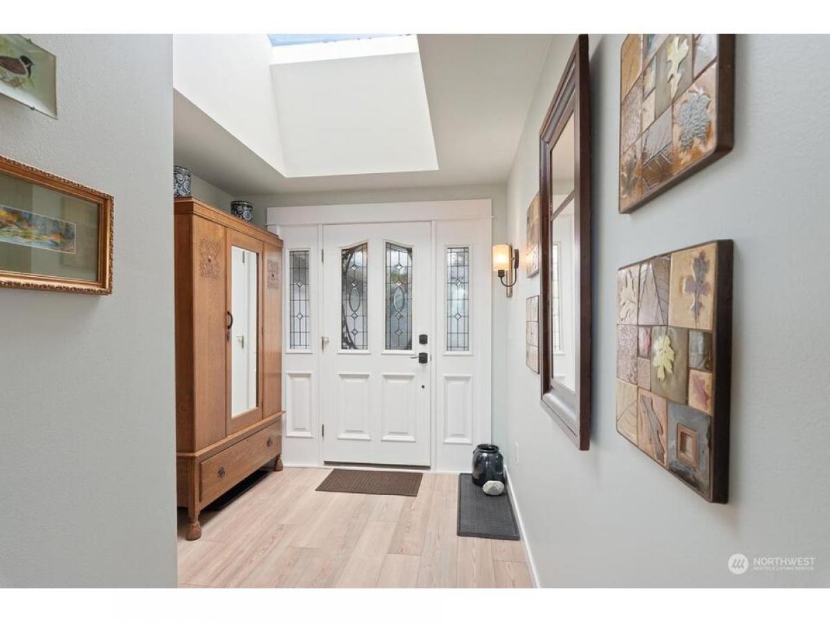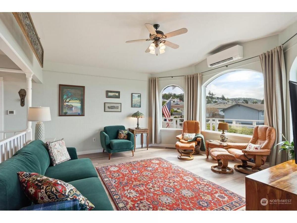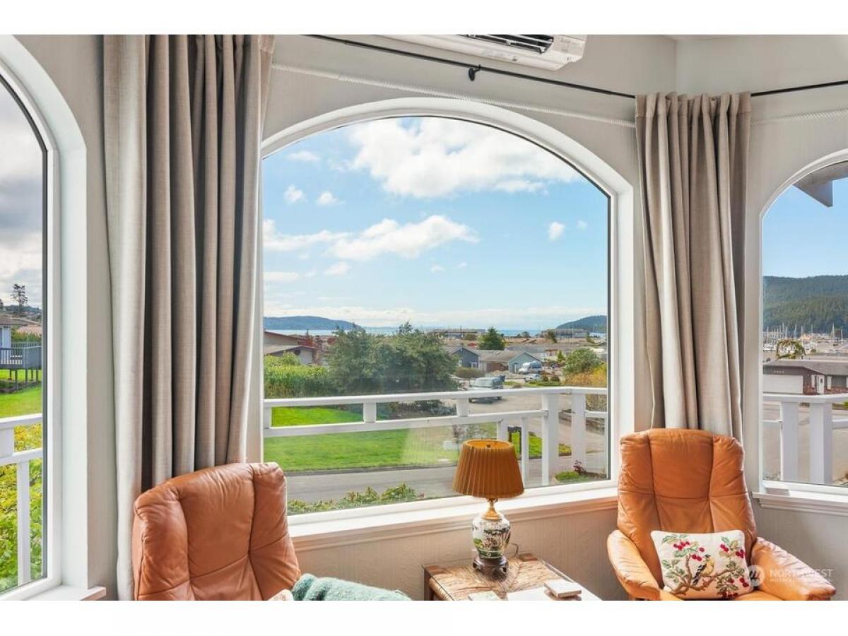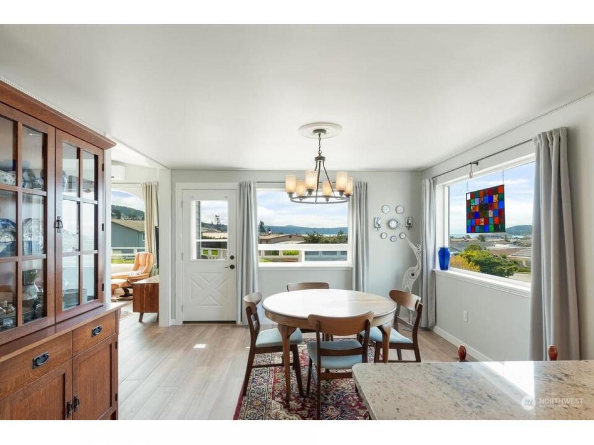 Such a warm beautifully remodeled Skyline home boasting views of Burrows Bay, surrounding islands, Olympics marina. Embrace eco-conscious living with energy-efficient solar panels. Main level offers serene primary suite featuring direct access to deck sumptuous full bath. Entertain in the well-appointed kitchen dining areas, complemented by distinctive architectural elements such as arch windows in the living rm. Lower level offers versatile living options including two bedrms, full bth, office flex room with kitchenette family rm. Flooded with natural light open spaces, this home is a haven for relaxation rejuvenation. Enjoy outdoor living with lush raised gardens, charming pergola, tranquil water feature RV/boat parking.