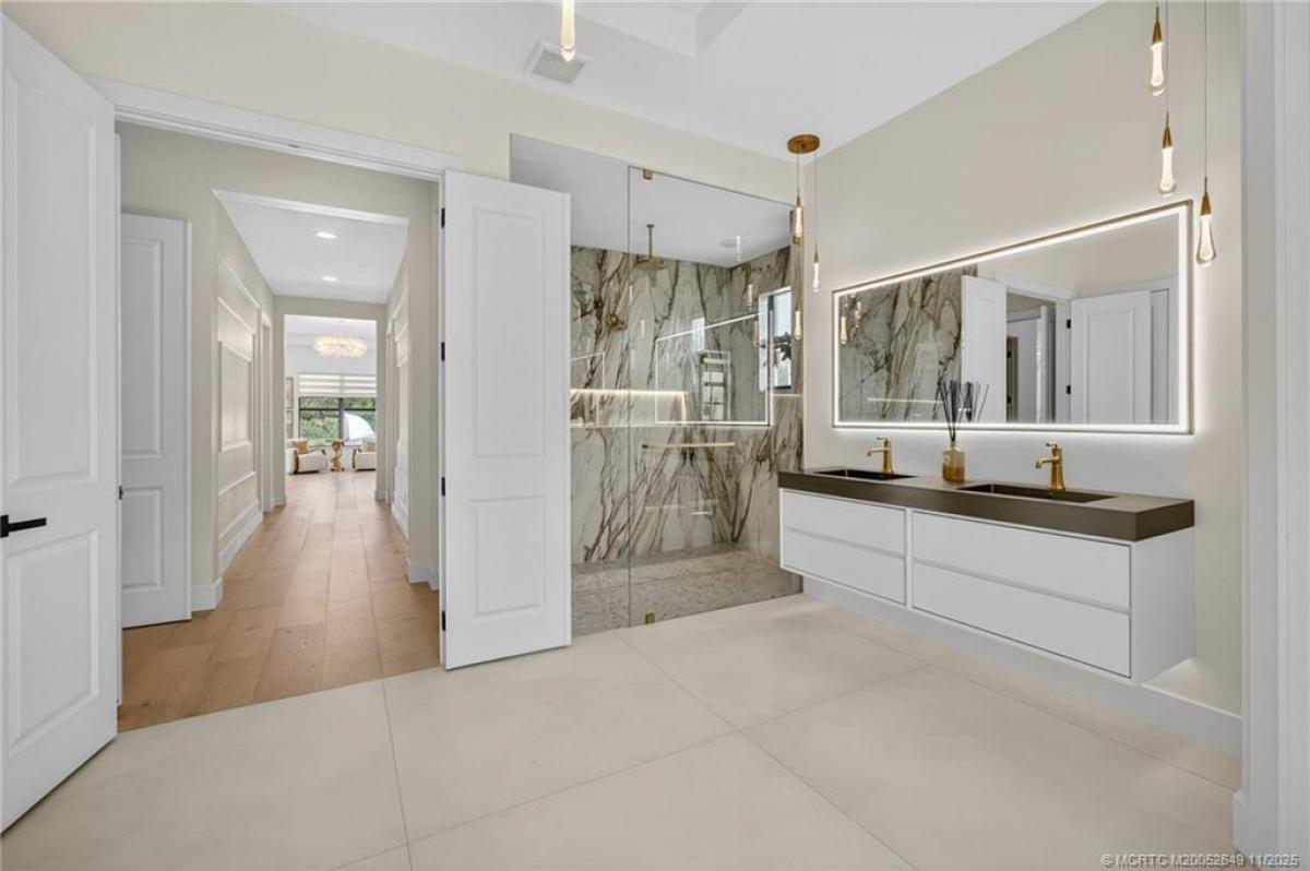 FLOOR to CEILΙNG uрgradеs dіѕtіnguish this 2024 designеr homе in Canopy Creek from any other. The kitchen centers on Cristallo granite counters w/ matching backsplash & a lit island, paired w/ Dacor appliances. Interiors feature 11" wide engineered oak flooring, designer light fixtures, 2 bars, a fireplace, & refined finishes throughout. Storage is elevated in the primary bedroom w/ 2 custom closets—built-in drawers, smart organization, & integrated lighting. Expansive glass doors open to a breathtaking outdoor living area w/ summer kitchen & a heated saltwater pool & spa, creating a private resort vibe. The fully fenced, .76-acre lot enjoys rare preserve views Front AND Back. An air-conditioned 3-car garage adds flexible space for fitness, entertainment, or storage. Resort amenities at the clubhouse include heated pool & hot tub, tennis, basketball, fitness center and more! All within the gated community of Canopy Creek—minutes to schools, dining, shopping, I-95 and the Turnpike.
