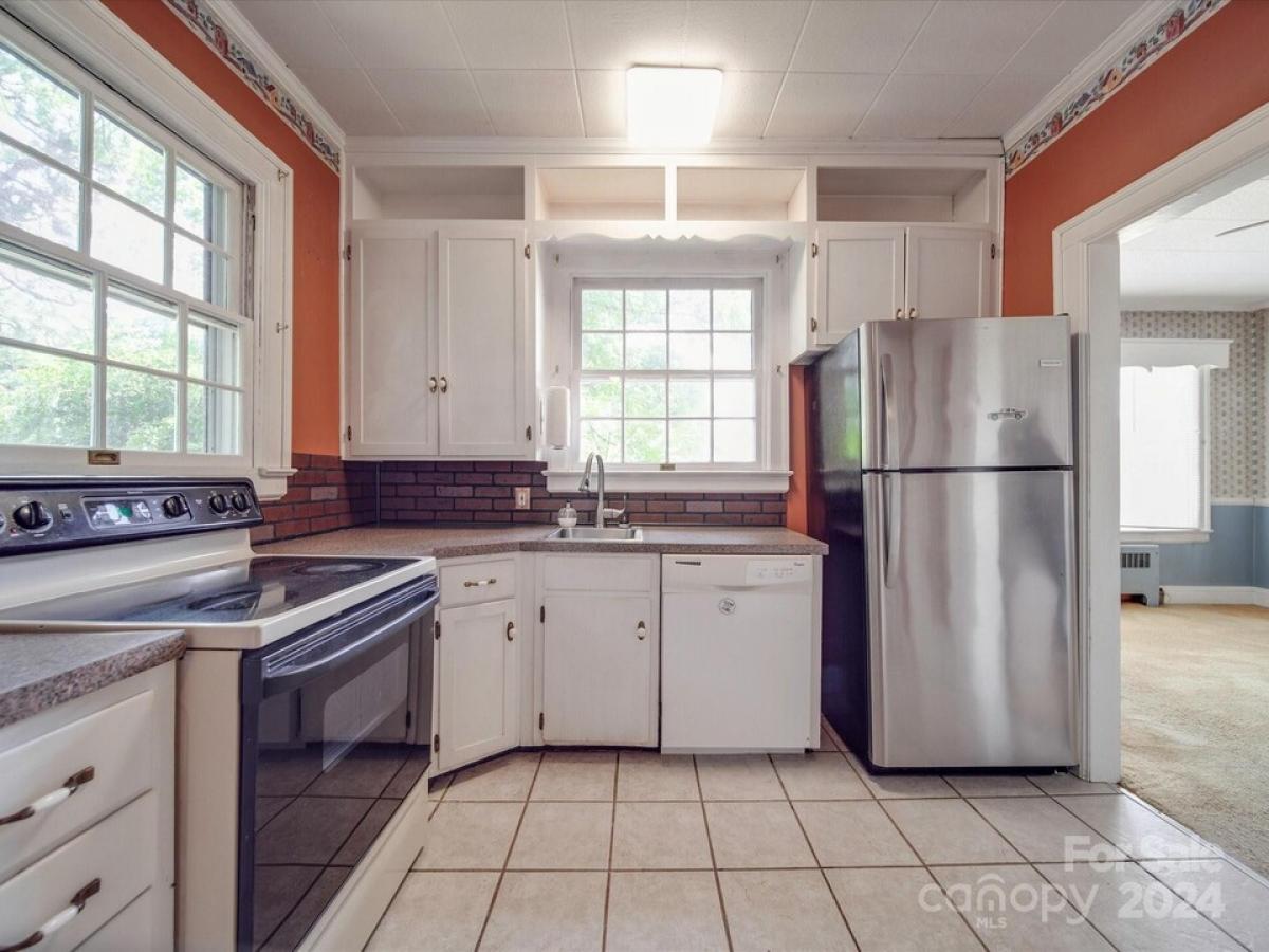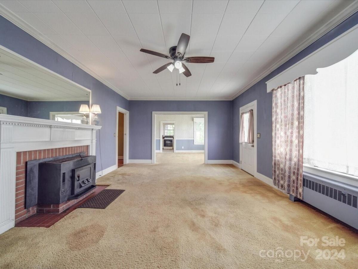 Charming Cape Cod located in the heart of Hiddenite. This 4 BR gem w/ basement sits on over 2.5 acres w/ mature oak trees. Detached garage/workshop w/ power. Covered side porch. Living Room-natural light & wood burning fireplace w/ decorative wood mantle. Original hardwood floors. Chair rail & crown molding in dining room. Downstairs BR #1-dual closets. Downstairs BR #2-decorative fireplace. Ample storage throughout with cedar-lined closets and built-ins. 8'10" ceilings. Kitchen features formica countertops,display storage,ceramic tile floor,pantry & eat-in breakfast area w/ bench seating and picnic table. Upstairs you will find 2 oversized BR and an office space with closet and attic access, along with a 9x6.75" walk-in closet perfect for seasonal storage. Basement includes interior/exterior entrance with workshop space w/ table & built-in storage. Laundry chute. Roof Aug 2023. **Adjoins railroad tracks with easement.Plumbing for washing machine goes out into a dry well in backyard.
