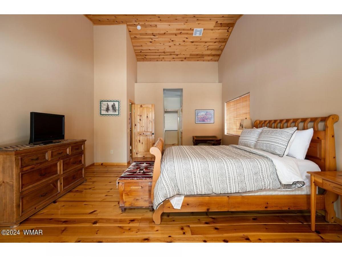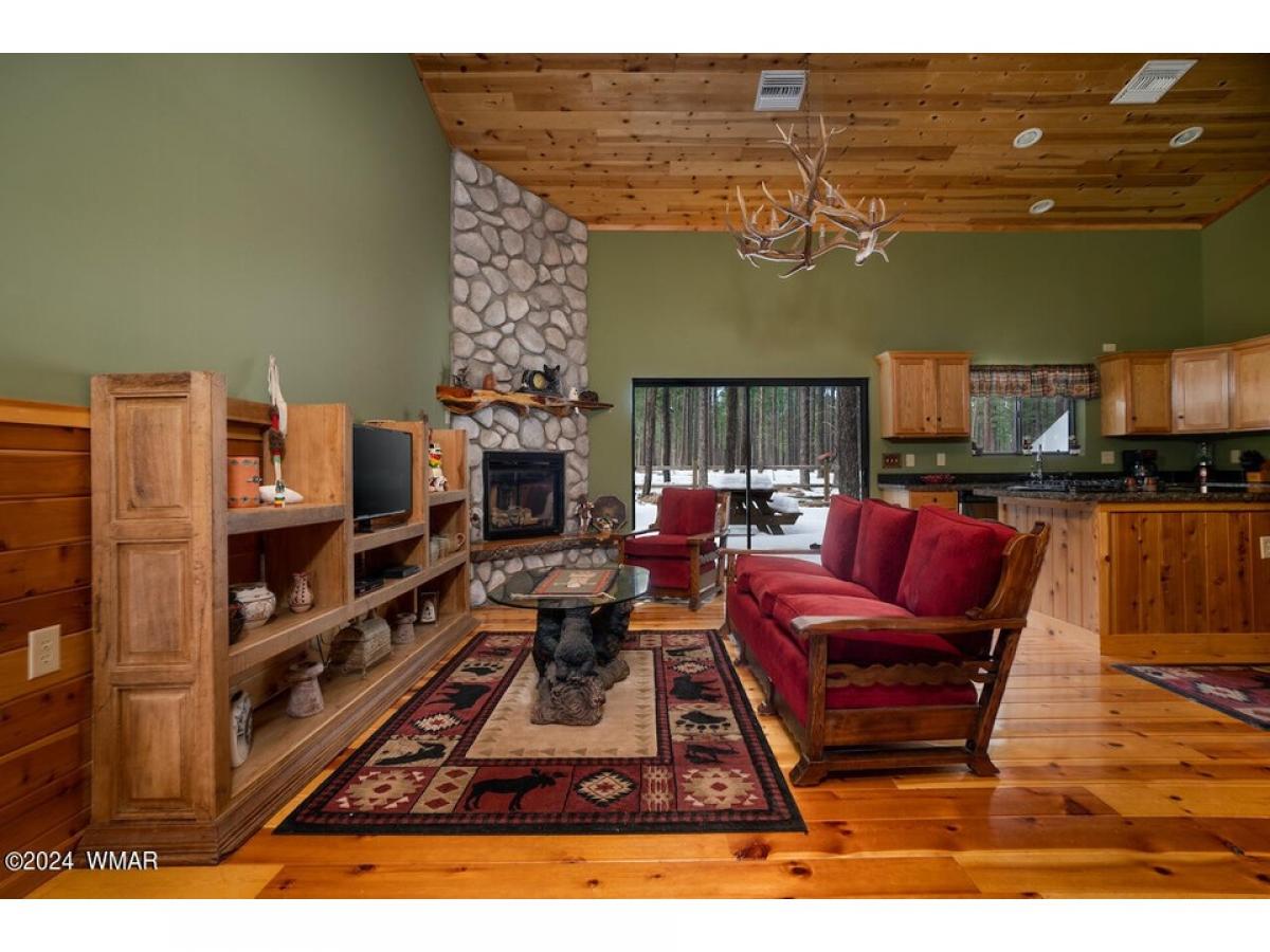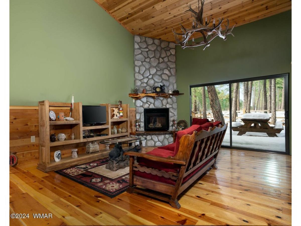 Welcome to your own private cabin retreat nestled in the serene pines of Pinetop Lakes Country Club. This custom-built home, constructed in 2007, boasts 2 bedrooms and 2 bathrooms spread over a spacious 1460 square feet. But this home offers so much more than just its stunning design. Step inside and you'll be welcomed by the warmth of pine T&G ceilings and charming rustic details throughout. The open floor plan is perfect for entertaining friends and family, with a large rock gas fireplace in both the family room and master bedroom creating a cozy atmosphere on chilly nights. Speaking of entertaining, imagine hosting guests in your very own income producing VRBO home! This home has been very successful in renting on a consistent basis.