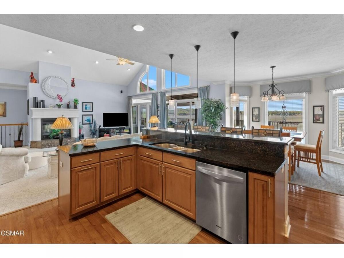 Experience lakeside luxury at this stunning Douglas Lake waterfront home, nestled on the main channel and boasting panoramic vistas of the shimmering lake and majestic Great Smoky Mountains. A stately entrance welcomes you into an open great room, featuring soaring vaulted ceilings and a captivating glass log fireplace. The chef#039;s kitchen is a culinary dream, showcasing abundant cabinetry, a center island, gas range, tiled backsplash, and granite countertops. Two bedrooms on the main level offer comfortable accommodations, while the spacious primary suite boasts his and her closets and a functionally designed bath, leading to a sunroom with breathtaking views. The lower level is an entertainer#039;s delight, complete with a game room, bar, additional bedroom as well as optional rooms. A versatile bonus room provides space for crafts, a home office, or a bunk/gaming area. Double decks maximize outdoor living, leading to a concrete ramp and covered dock with a jet ski port. Enjoy the convenience of easy access to I-40 and I-81, proximity to Morristown shopping, and a mere 45-minute drive to Knoxville.