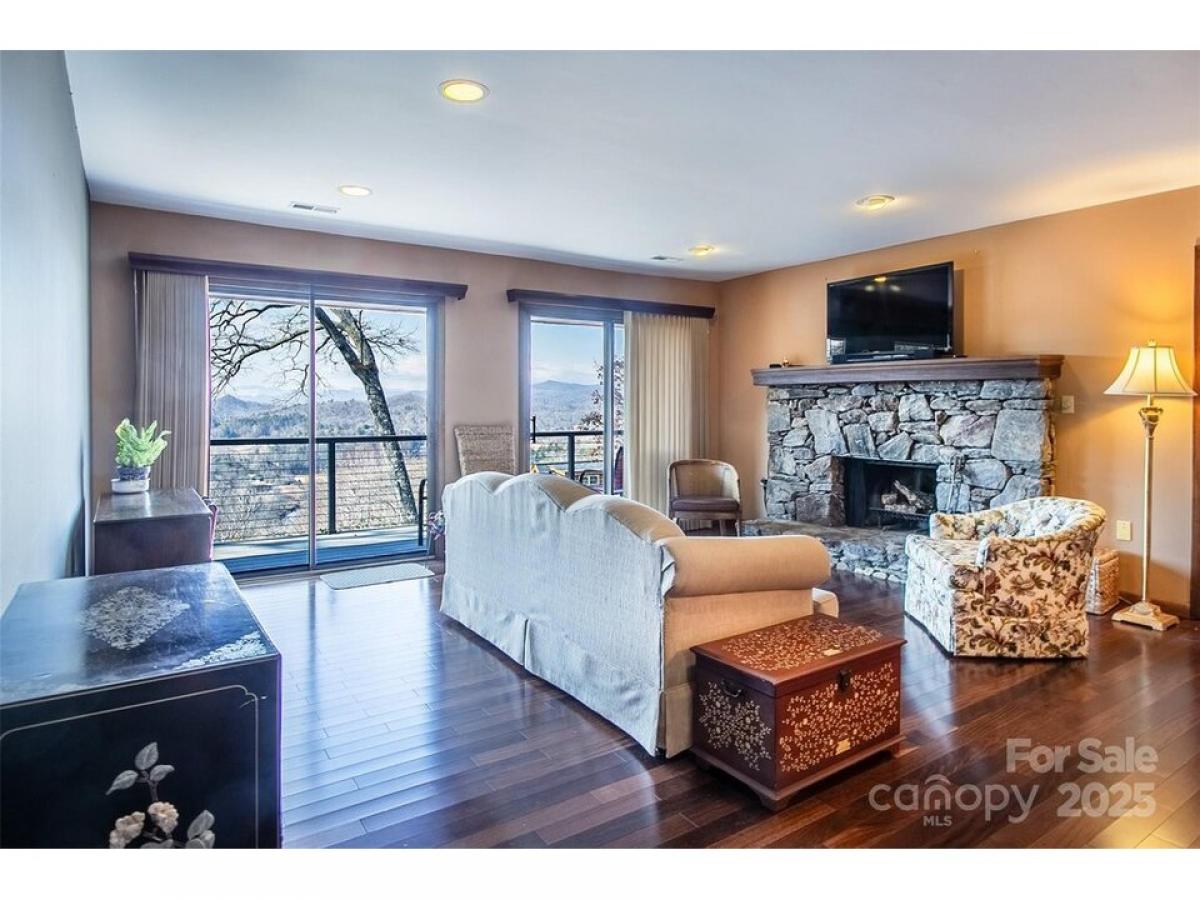 Absolutely gorgeous year-round mountain views!!! This upper level 2 bedroom 2 bath condo is conveniently located less than 10 minutes from downtown Brevard. Stone fireplace, updated baths, spacious living room, sun room and more. You will forget how close you are to the City as you look out across the river valley and up to the mountains. A must see.