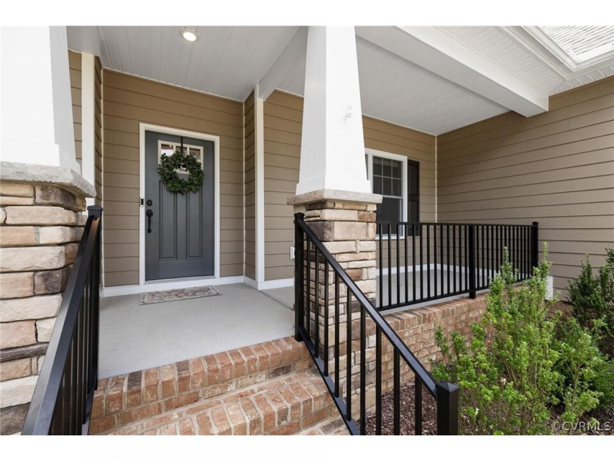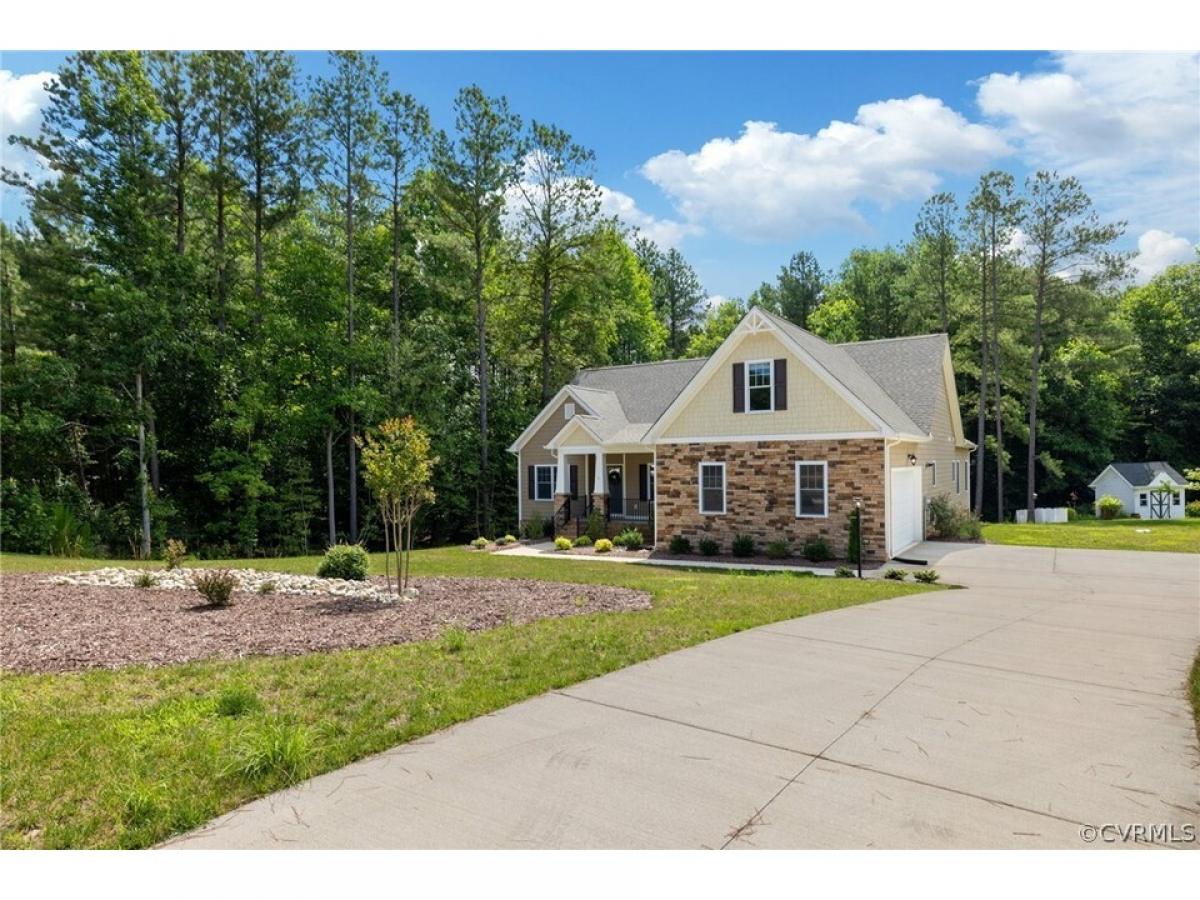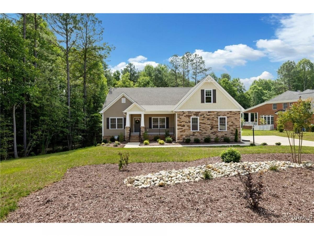 Welcome to your dream home in the desirable Brickshire community! This Craftsman-style residence offers the convenience of one-level living, with an additional bonus bedroom or rec room on the second level. The home features cement board and stone siding, a concrete driveway, a screen porch, and a patio, all set in a private yard that backs up to tranquil trees. Just around the corner, you'll find a golf cart path, with the fairway across the street. The open floor plan includes a spacious great room with a gas fireplace that flows into the kitchen and dining area. The kitchen boasts a breakfast nook, pantry, granite countertops, and a center island. Additional features include a study or office, four bedrooms, and a large primary suite with a luxury bathroom featuring a large tile shower, double vanity, and walk-in closet. Upstairs, there is one bedroom and extra storage space. Practical amenities include a laundry room and a mudroom with built-in storage as you enter from the garage. 2 Car garage has an electric car/Tesla charger, the irrigation controls and tankless water heater. The Brickshire community offers a wealth of amenities, including golf, tennis, a swimming pool, walking paths, sidewalks, and easy access to Richmond and Williamsburg. Don't forget to explore the local wineries too!