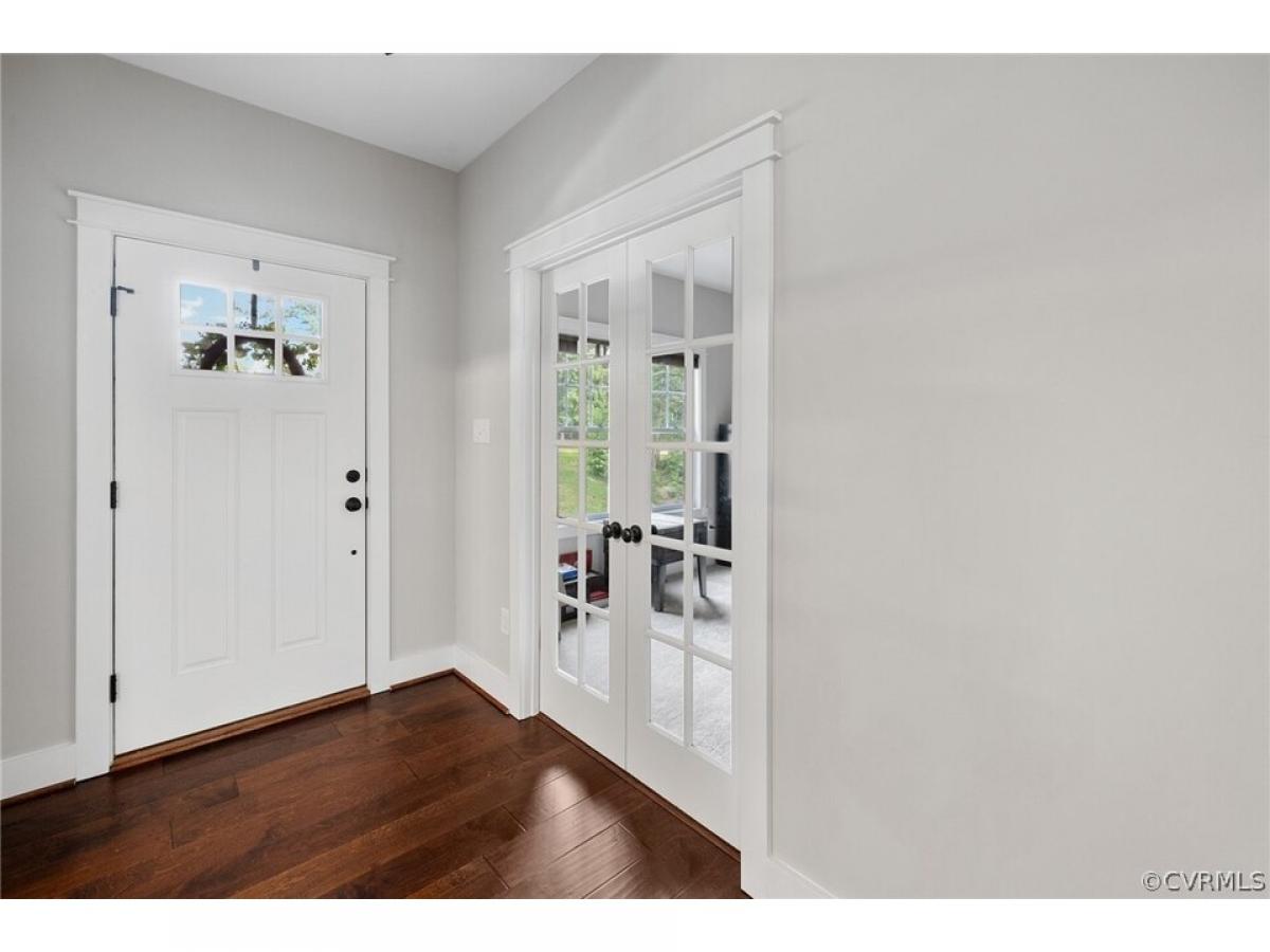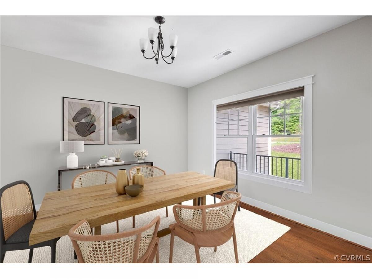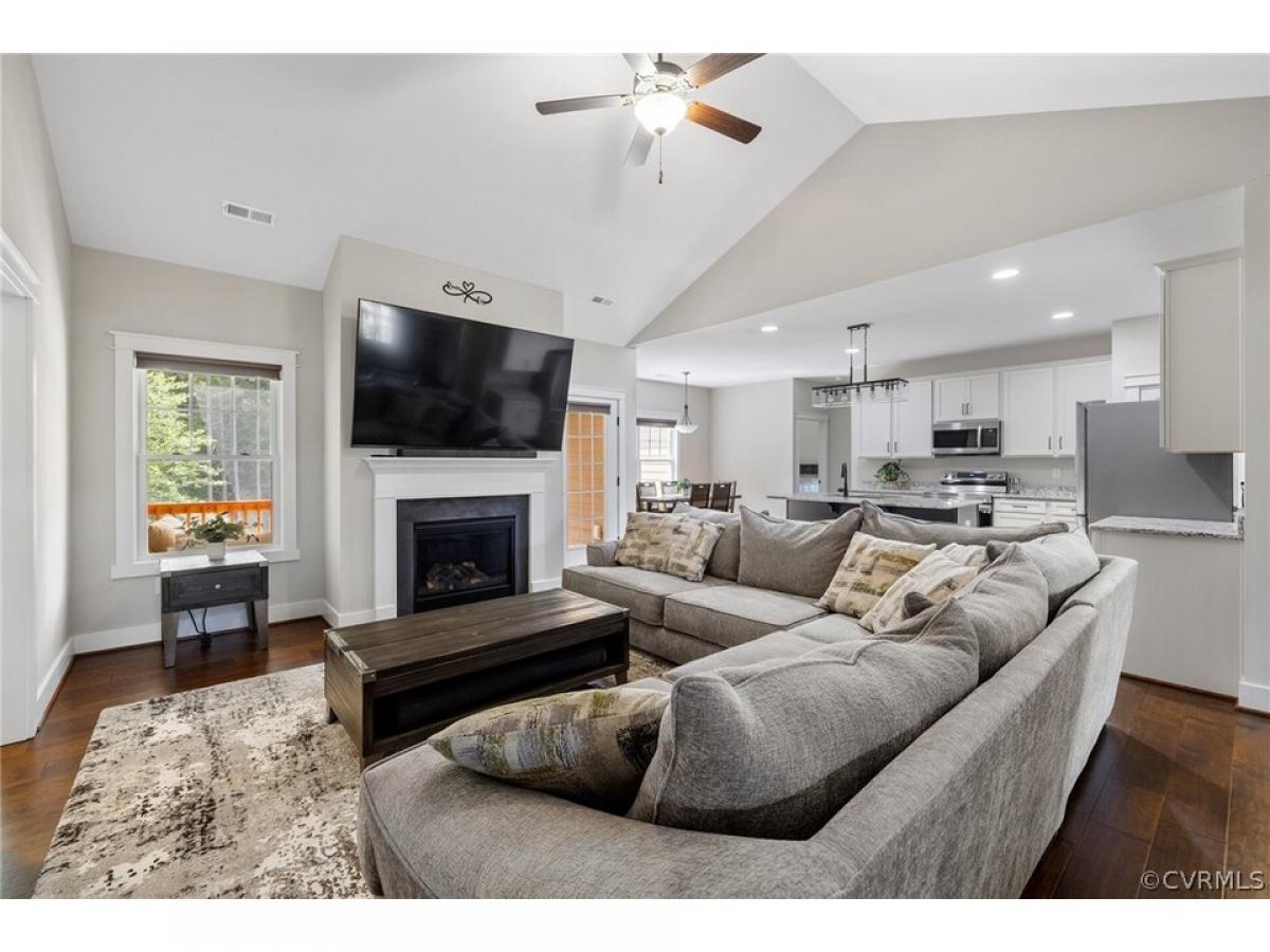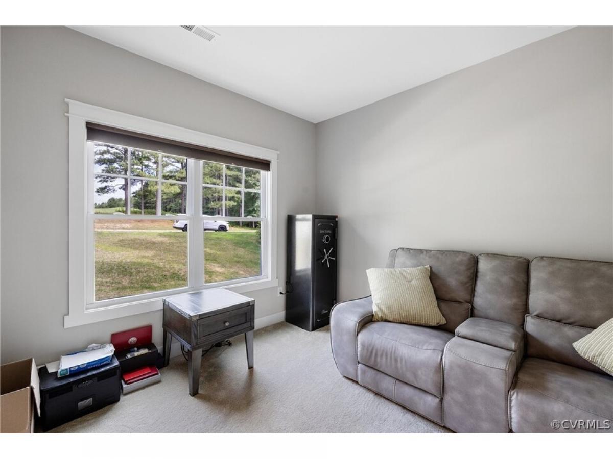 Welcome to your dream home in the desirable Brickshire community! This Craftsman-style residence offers the convenience of one-level living, with an additional bonus bedroom or rec room on the second level. The home features cement board and stone siding, a concrete driveway, a screen porch, and a patio, all set in a private yard that backs up to tranquil trees. Just around the corner, you'll find a golf cart path, with the fairway across the street. The open floor plan includes a spacious great room with a gas fireplace that flows into the kitchen and dining area. The kitchen boasts a breakfast nook, pantry, granite countertops, and a center island. Additional features include a study or office, four bedrooms, and a large primary suite with a luxury bathroom featuring a large tile shower, double vanity, and walk-in closet. Upstairs, there is one bedroom and extra storage space. Practical amenities include a laundry room and a mudroom with built-in storage as you enter from the garage. 2 Car garage has an electric car/Tesla charger, the irrigation controls and tankless water heater. The Brickshire community offers a wealth of amenities, including golf, tennis, a swimming pool, walking paths, sidewalks, and easy access to Richmond and Williamsburg. Don't forget to explore the local wineries too!