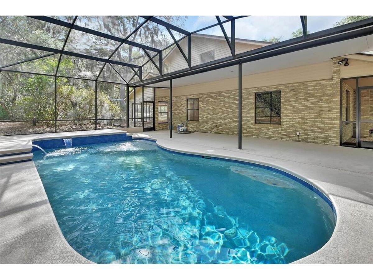 One or more photo(s) has been virtually staged. HERE IT IS! YOUR DREAM HOME! Stunning retreat, high and dry, in a fabulous location! Beautiful 2,197 sq. ft. HEATED, SCREENED, INGROUND SALT-WATER POOL home on 2.18 FENCED PRIVATE ACRES with 3 bedrooms and 2.5 baths, NEW ROOF in 2023, NEW A/C, NEW SCREENED POOL in 2019 with large pool deck. Downstairs master bedroom suite, interior laundry, large living room AND a large family room. A GLASSED-IN FLORIDA ROOM connects to a LARGE SCREENED LANAI that runs the entire length of the house, overlooking your serene private acreage (horses and farm animals allowed). The HUGE GARAGEmdash;966 square feetmdash;could easily hold 3 and possibly 4 vehicles, WITH OFFICE ABOVE, plus large structural carportmdash;624 square feetmdash;for an additional vehicle or two, and a large concrete pad to PARK YOUR BOAT, RV OR TRAILER! The 2.18 acres includes a 1.1-acre lot on Myakka Rd. and a separate buildable 1.08-acre lot that fronts on Aragon Rd. The property is located at the end of a cul-de-sac on a private road in a small private community of just 10 homes (with a total association fee of $100/year for road maintenance). Lovely, low-maintenance natural landscaping includes oaks, azaleas, camillas, crepe myrtles, magnolias, lantanas, cycads, and more. This charming home is not visible from the road, creating a secluded haven for your enjoyment! Just 1.3 miles to delightful DeLeon Springs State Park with fabulous swimming and boating, less than 2 miles to Lake Woodruff National Wildlife Refuge, less than 1-mile to the county bike trail that is part of the River-to-Sea bicycle loop, and less than 2 miles to Chuck Lennon County Park with mountain bike trails that are considered among the best in Florida! Only minutes to charming downtown DeLand, ldquo;The Athens of Florida,rdquo; with many fine restaurants, shops, art galleries, Stetson University, and more. This unique property is waiting for you! Call today before itrsquo;s gone!