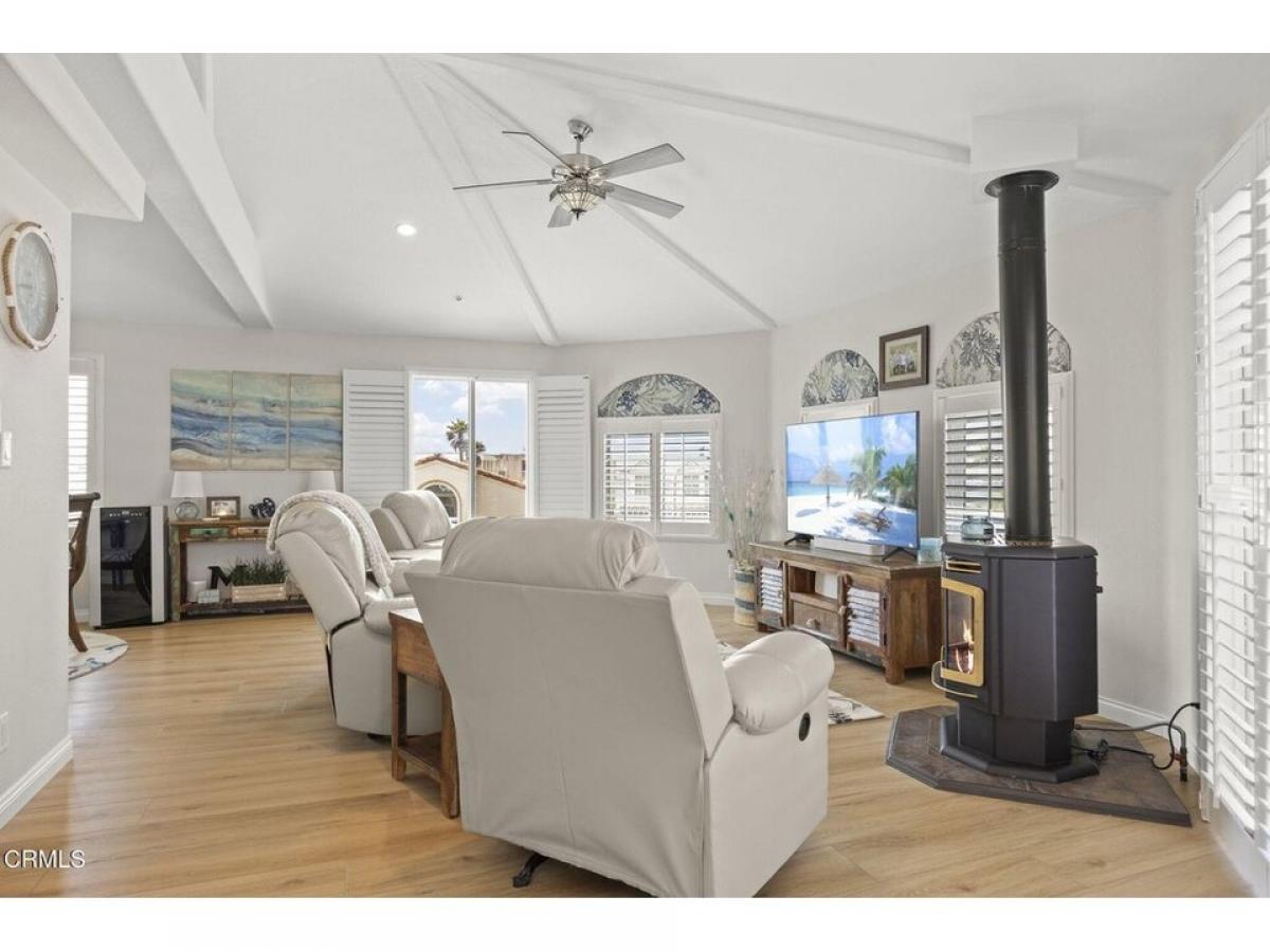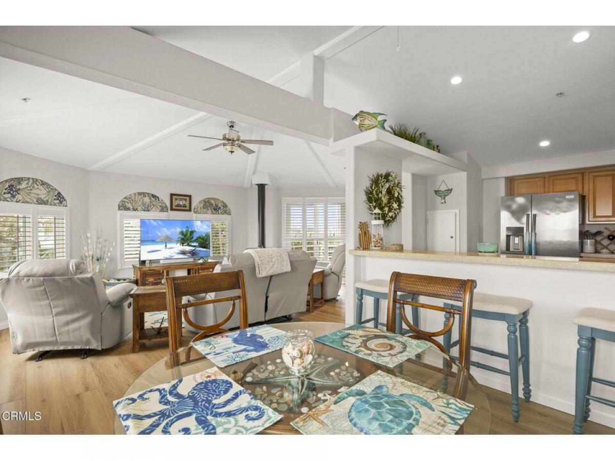 Oxnard Shores stunning tri-level ocean view corner unit condo offering over 2,000 square feet of coastal living just a short stroll to the sand! Thoughtfully designed with indoor-outdoor living in mind, this home features three balconies, two patios, and multiple entertaining areas to soak in the ocean air and enjoy Mandalay#039;s temperate weather year-round.The top floor showcases an open-concept kitchen, dining area, and living room with a freestanding fireplace, perfect for cozy evenings. A walk-in pantry, powder room, and a convenient dumbwaiter from the garage to the kitchen level make everyday living effortless.The mid-level is your private retreat, featuring a spacious primary bedroom with an oversized walk-in closet, custom built-in drawers, and a spa-style bathroom complete with a relaxing soaking tub.The lower level offers a versatile family room with a built-in bar, a second bedroom, and a full bathroom, ideal for guests or entertaining. This level also includes access to your 2-car attached garage with plenty of storage. Guest parking is also available.Notable upgrades include new flooring throughout, a new heater, newer water heater, resurfaced decks, and newer appliances. Additional highlights include plantation shutters, alarm system, wine cooler, and the best part it#039;s fully furnished, ready for you to move in and enjoy the beach lifestyle today!Whether you#039;re seeking a full-time residence or the perfect beach getaway, this beautiful home has it all. Come experience the coastal dream!