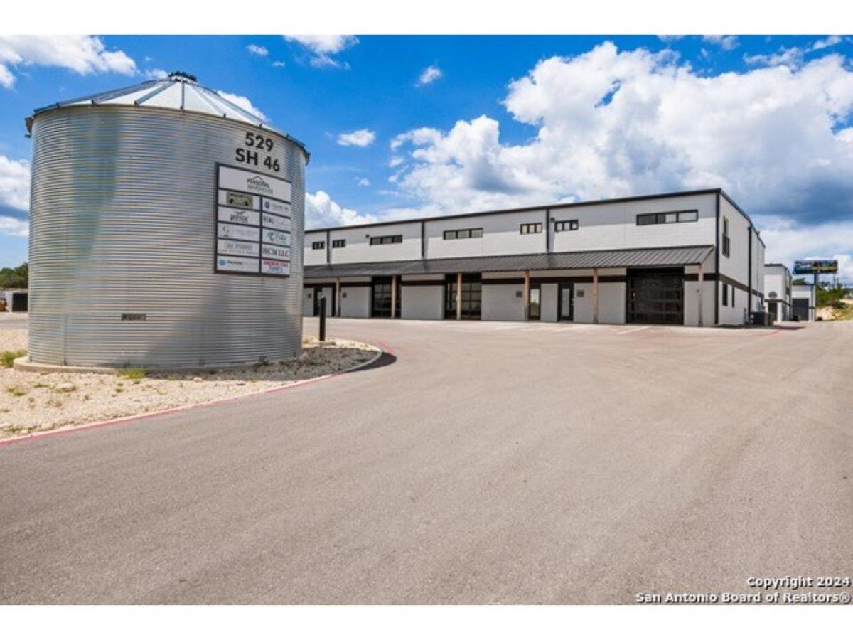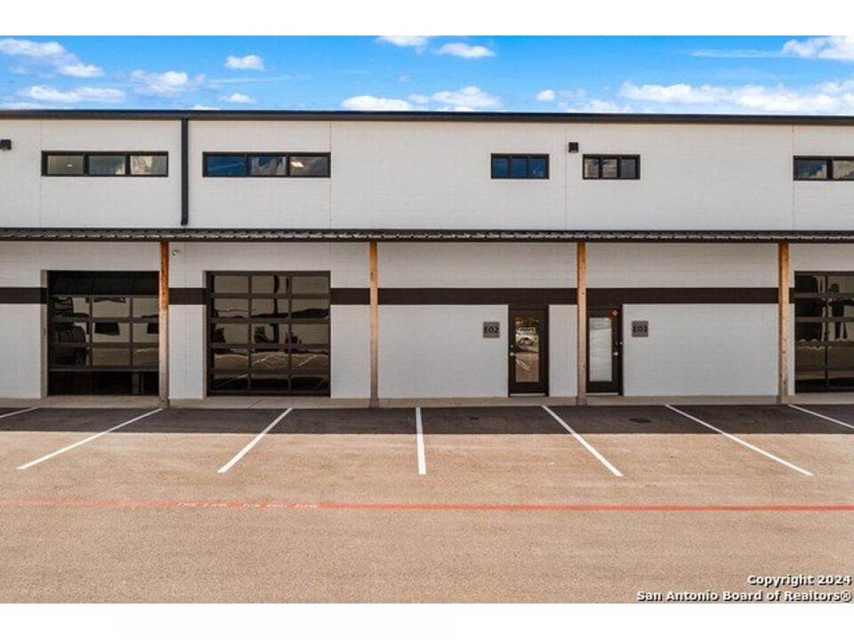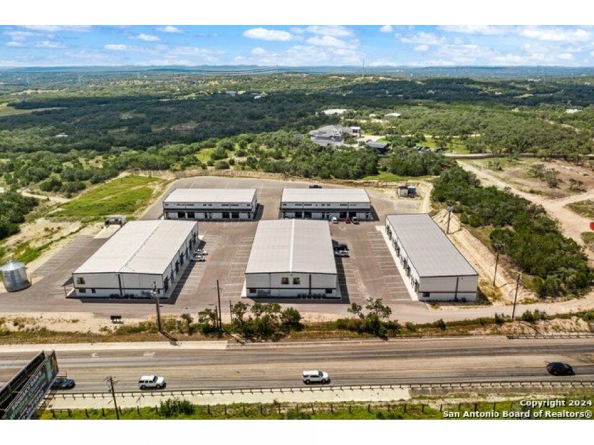 Commercial warehouse condo space, fully customizable and flexible to suit your needs. The 2,808 square foot unit, zoned light industrial, measures 30 feet wide by 70 feet deep, offering 2,100 square feet of ground space plus a 708 square foot steel mezzanine. Complete flexibility allows for use by self-employed contractors/business owners, industrial office space, storage, shipping, and inventory needs. It can also be used for personal car collections, RV/boat storage, a man cave, or social gatherings. This drive-thru unit features an 8-foot front overhead door and a rear 14 x 14 overhead door. Amenities include HVAC with ducting, insulated masonry construction, a metal roof, LED lights, and a private restroom with a shower. Located just west of Boerne near Cordillera Ranch on SH 46, it offers quick access to Fair Oaks Ranch, San Antonio, and surrounding areas. Multiple windows provide abundant natural light. The mezzanine floor features LVP wood flooring, while the ground floor is polished concrete. Also available for lease.
