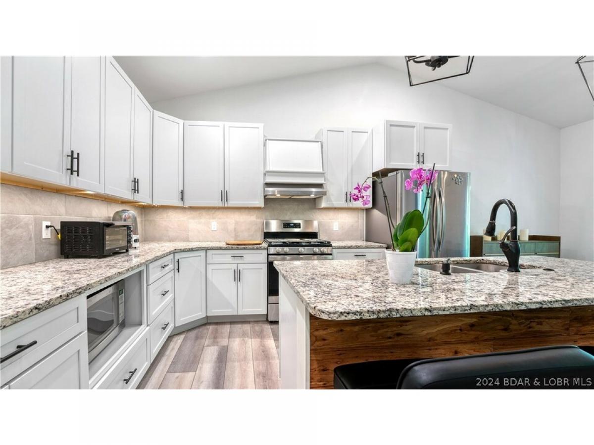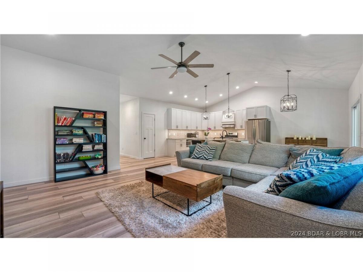 Set in a tranquil cul-de-sac this 3 bedroom 2 bath Modern Farmhouse Ranch built in 2022 is nestled in the heart of Lake Ozarks within the coveted Four Seasons community. Enjoy the convenience of nearby Four Seasons amenities such as the community pool, workout facility, dog park and boat ramp along with easy access to popular destinations like Camden on the Lake, Bagnell Dam restaurants, Shady Gators and Little Rizzo's. Minutes to the Bagnell Dam Strip or shopping in Osage Beach. Step inside to discover a seamless blend of modern luxury with rustic charm featuring a zero-entry front elevation for effortless accessibility, vaulted ceilings and an open-concept layout. ADA compliance ensuring comfort for all. Revel in the elegance of coffered/tray ceilings, luxury vinyl plank flooring and energy-efficient upgrades including a hybrid insulation system and Leaf Guards. The Master Bedroom offers a sanctuary of relaxation with a spacious walk-in shower, large vanity and walk-in closet. The kitchen is a chef's delight boasting granite countertops and stainless steel appliances. Outside a covered deck invites gatherings while ample storage awaits in the insulated crawl space.