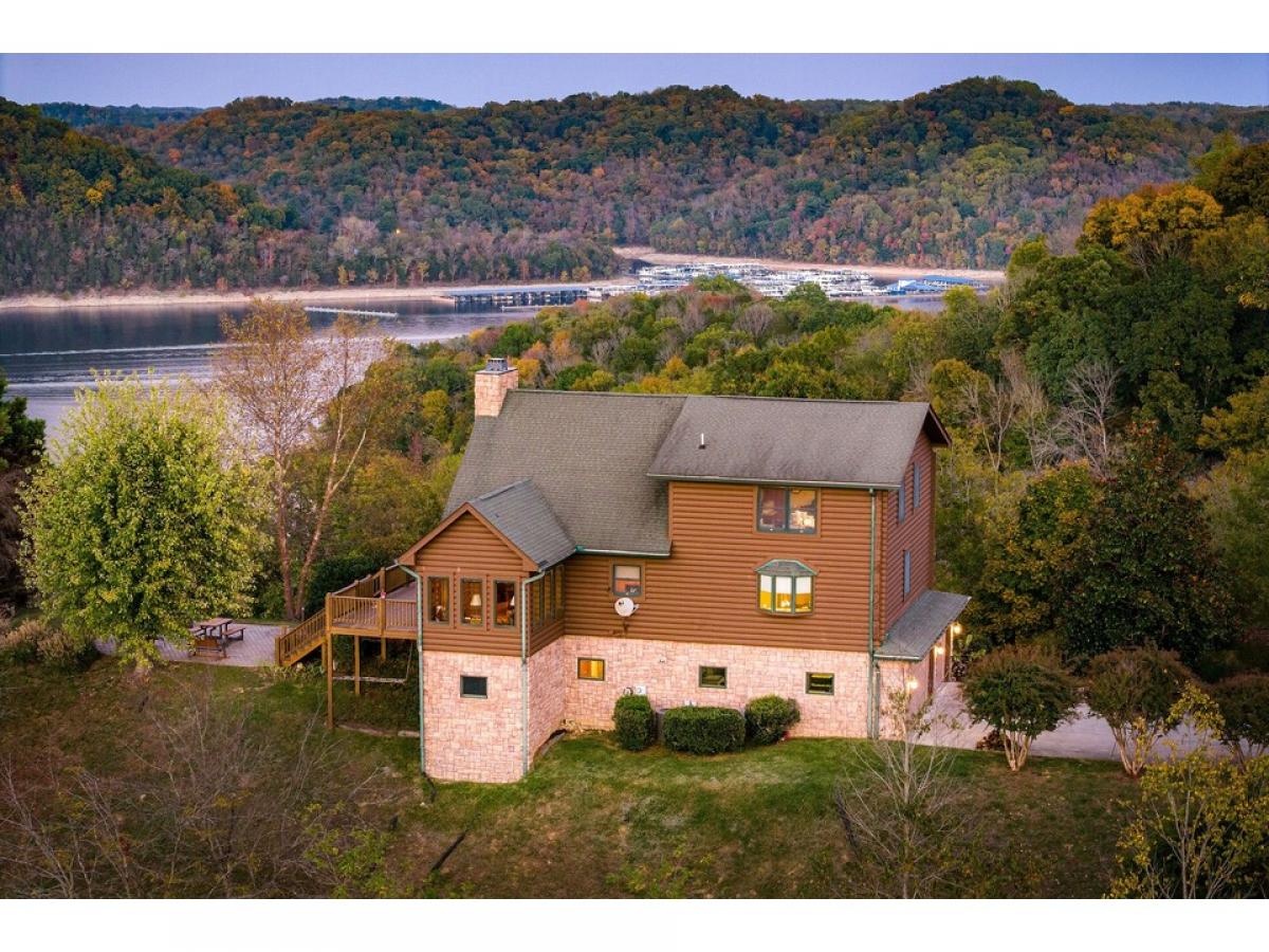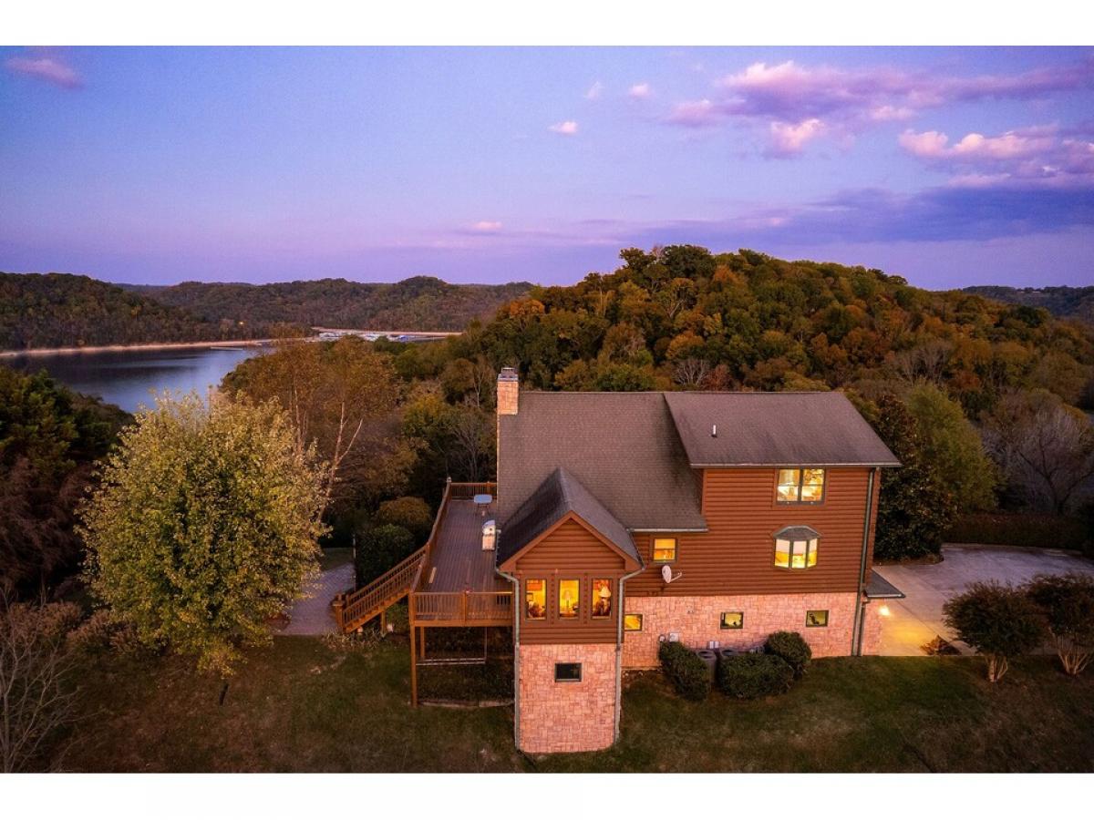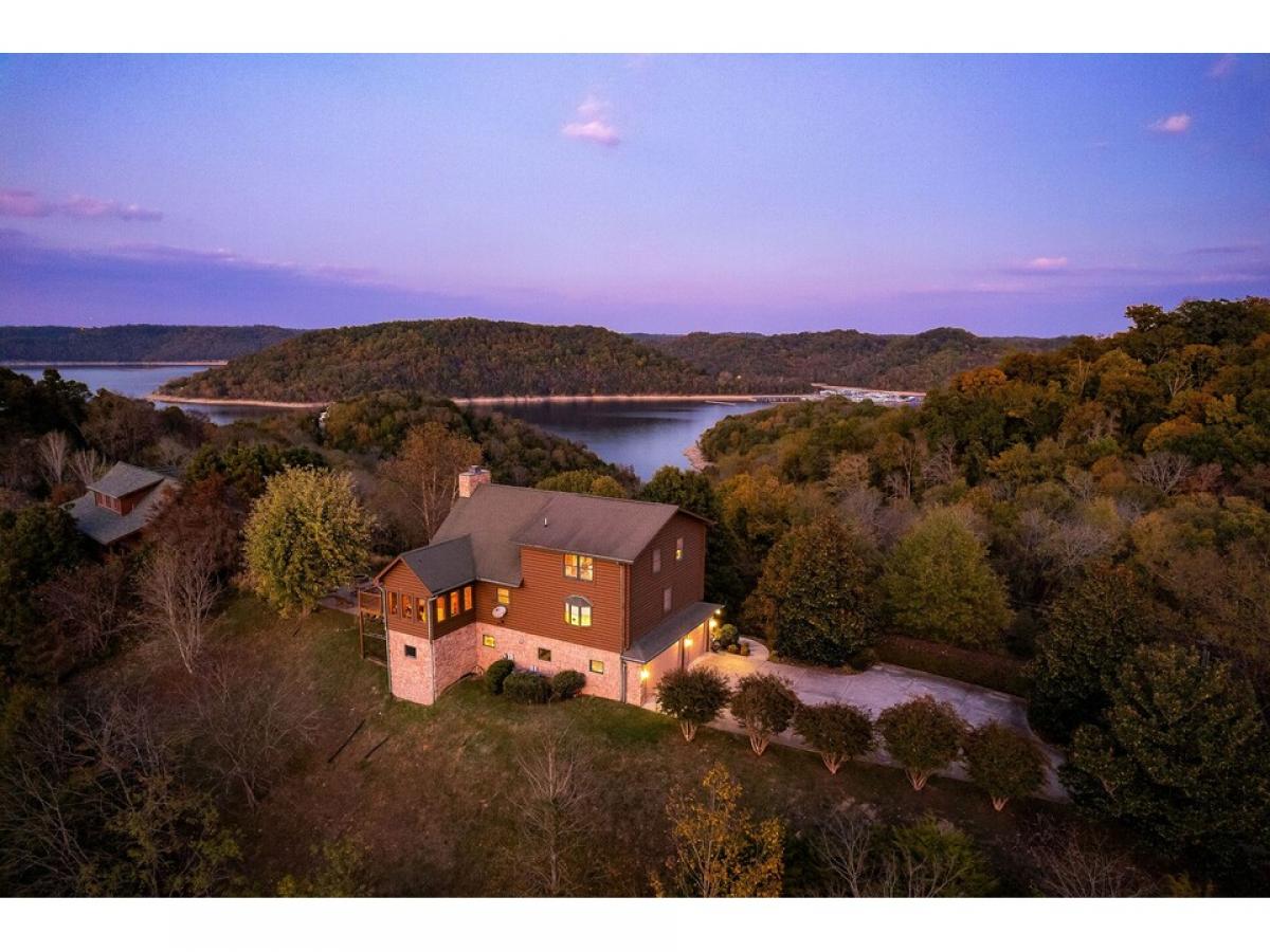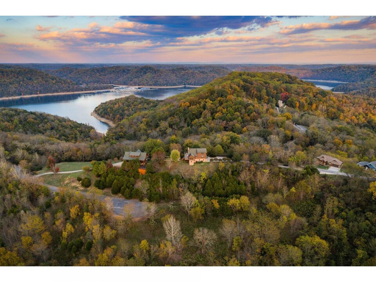 Welcome to the mountaintop cabin of your dreams! This custom log cabin features breathtaking, year-round views of Center Hill Lake from every room. Walk in to the open-concept Living area boasting 22 ft ceilings with tongue-in-groove wood, a stone fireplace, and windows all around. Modern kitchen has granite countertops and custom cabinets and eat-at bar that are open to the living room, dining room, and sun room. The main floor houses the primary suite with large walk in closet and a newer, handicap accessible shower. If you'd rather come in through the garage, you can ride the elevator upstairs (even if the power is out). The finished entry level is also accesible via garage and features a Rec room, bedroom, half bath, storage room, and mechanical room. Upstairs you'll find two large beds and a bath. The outdooor areas are pristine as well and accent the lake view from this amazing hilltop with brick pathways, covered seating, a fire pit, and shade trees. Newer HVAC and deck stain.
