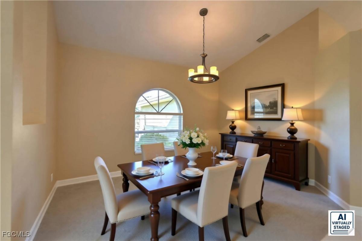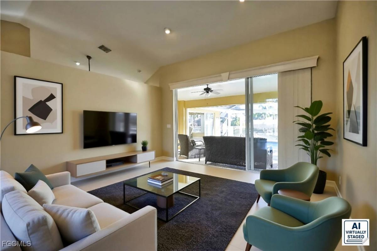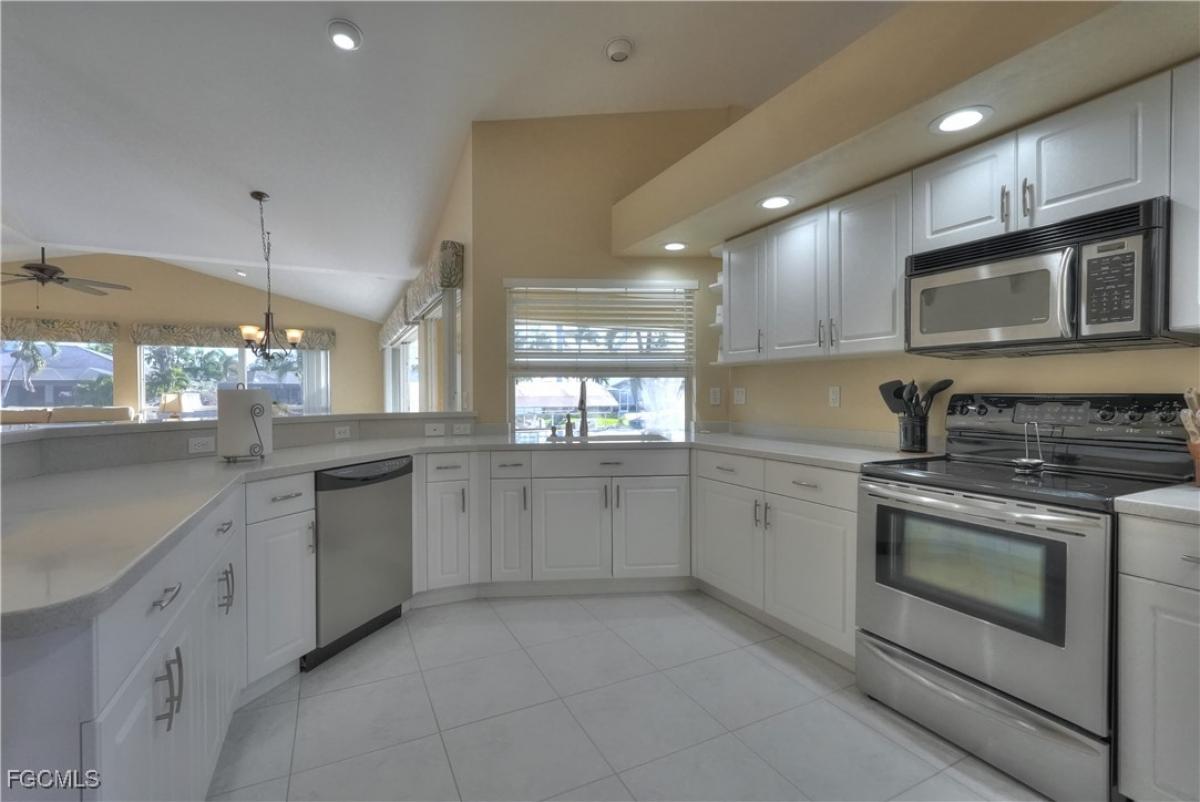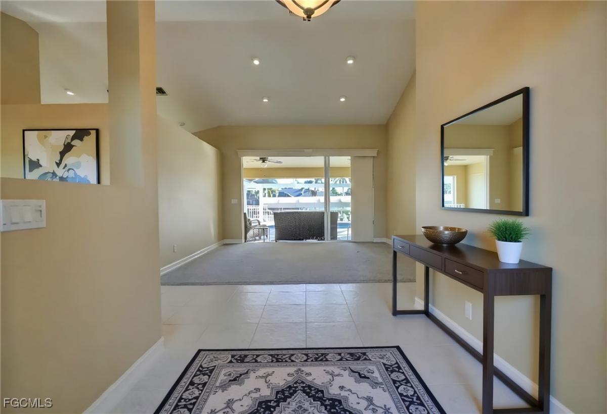 Welcome to your dream waterfront home in Cape Coral! This stunning, almost 2500sq ft single family home boasts 4 bedrooms, 2.5 bathrooms, and a 2 car garage, perfect for a growing family or those who love to entertain. The in-ground pool W/bench seat and 2 spa jets is the perfect place to cool off on hot summer days, while the covered boat lift and floating kayak dock provide easy access to the water for all your boating adventures. Inside, you'll find luxurious finishes such as Corian counters, stainless steel appliances, and a mix of carpet and tile flooring throughout. The large sliding doors and kitchen pass through window create a seamless indoor-outdoor living experience, while the tiki on the dock is the perfect spot to relax and enjoy the sunset. With direct Sailboat access, No Bridges, you'll have endless opportunities to explore the beautiful waterways of Cape Coral, or, anywhere else in the World. Don't miss out on this incredible opportunity to own your own piece of paradise in Southwest Florida! New Roof 2018, New AC 2024, NO FLOODING in past Hurricane's