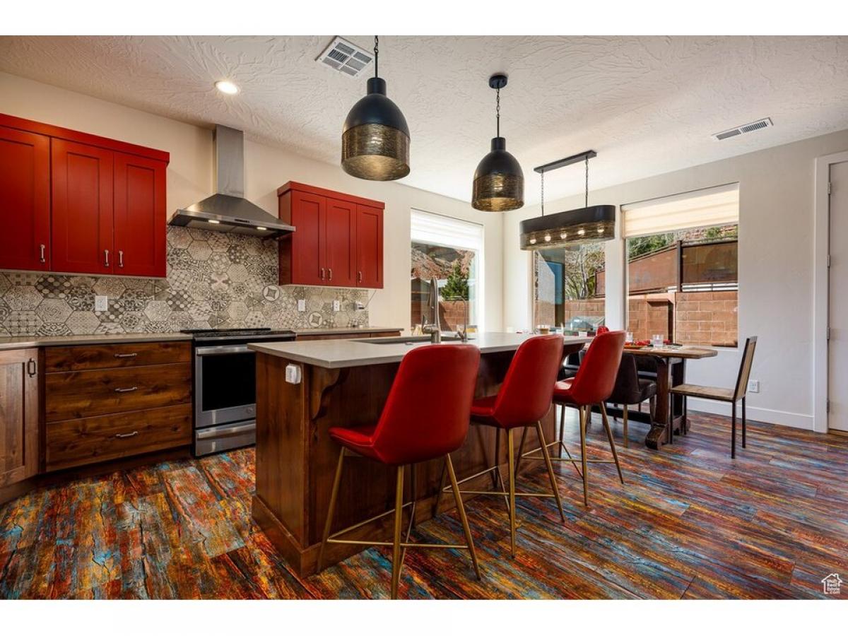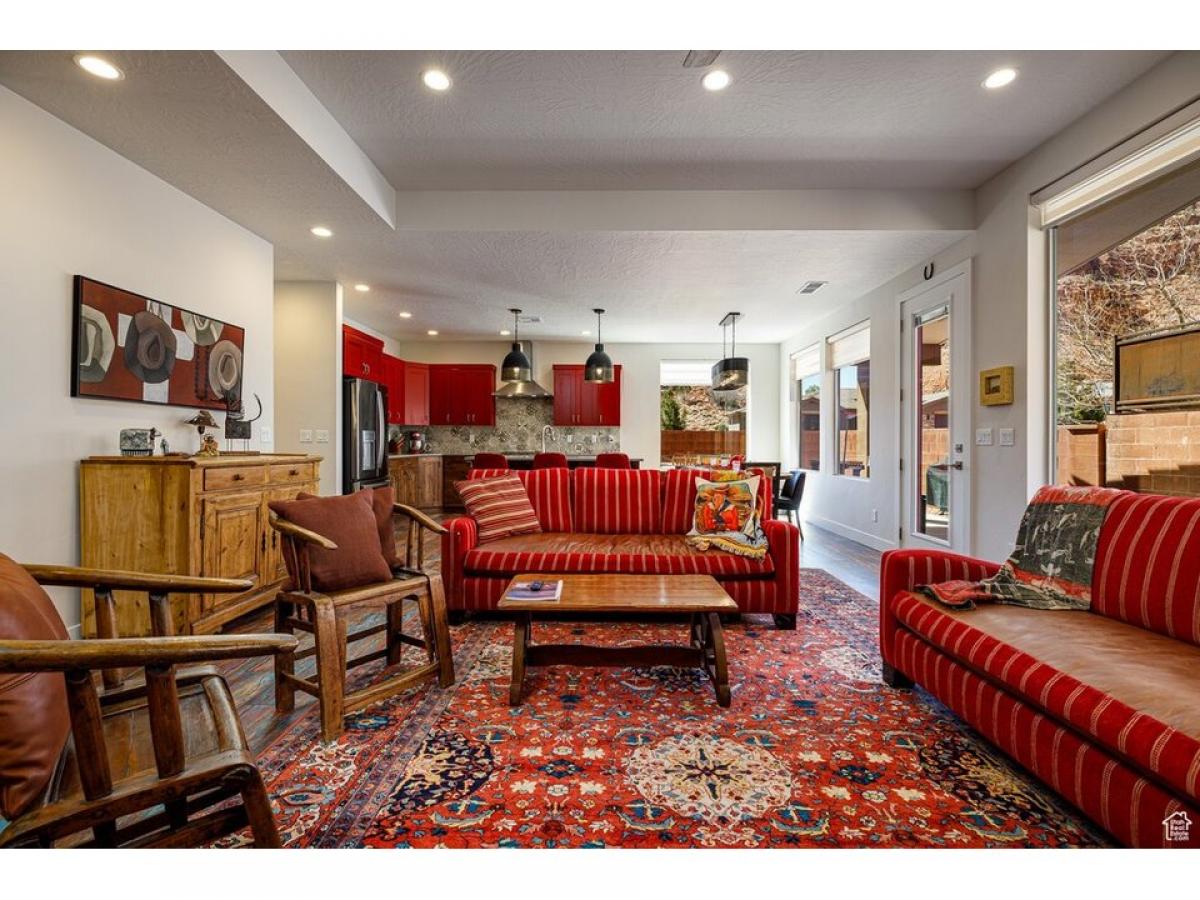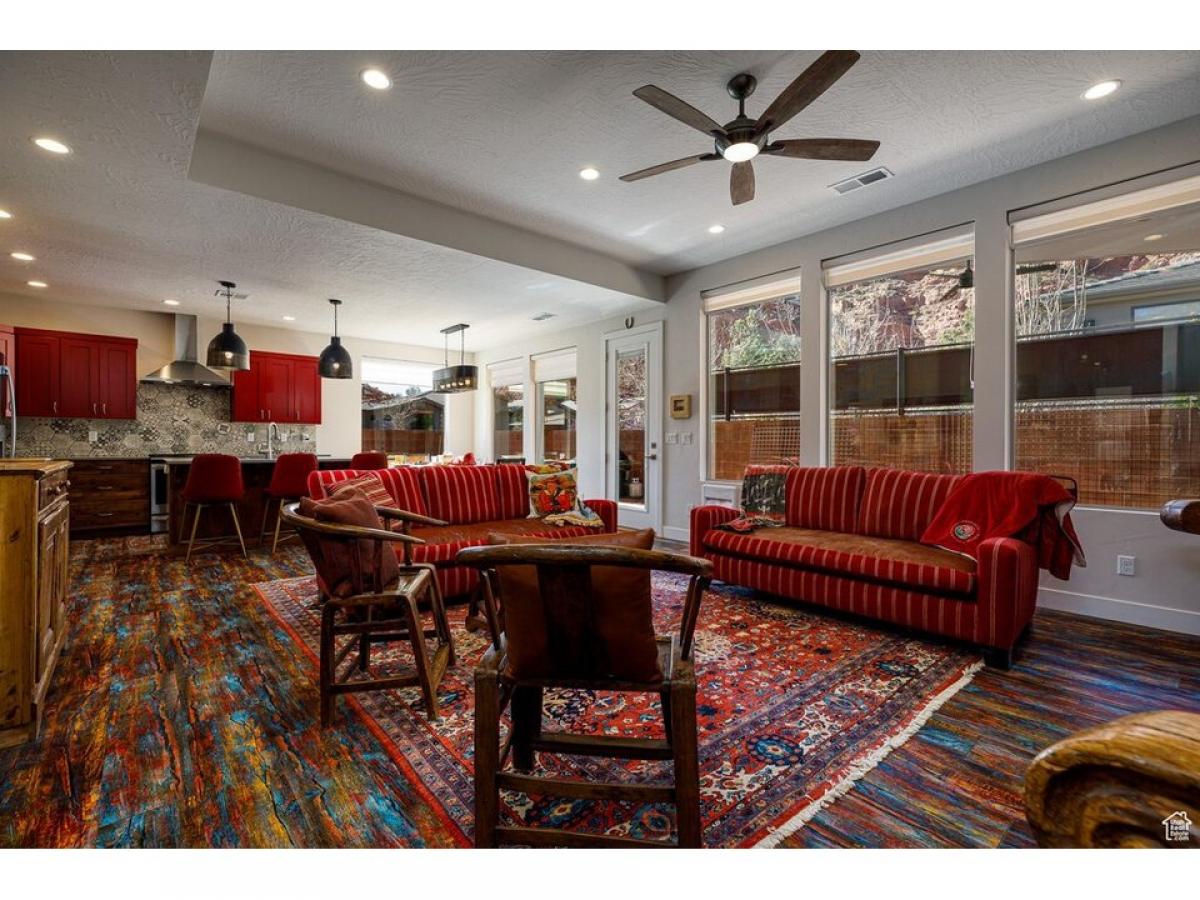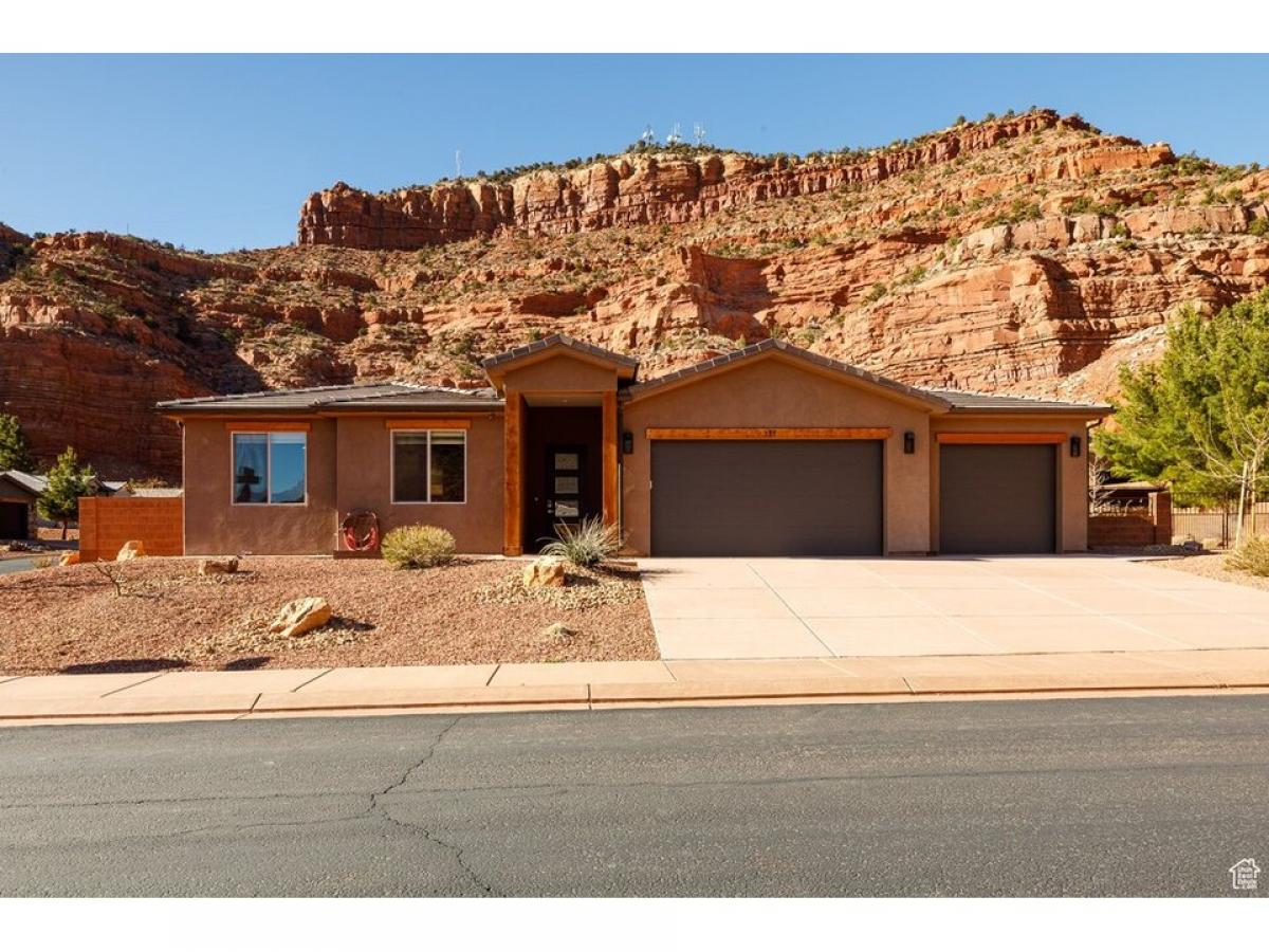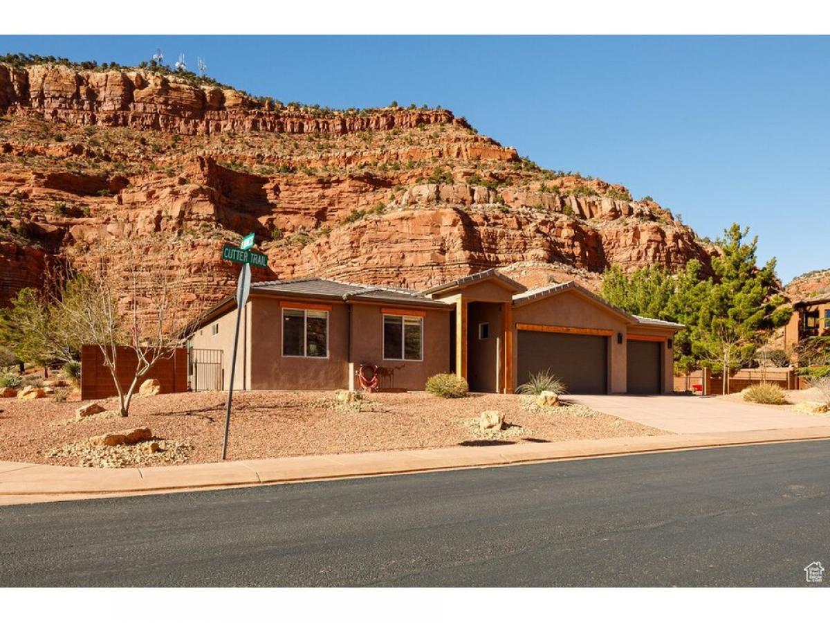 Stunning Contemporary Rustic Home at the Base of Kanab#039;s Red Cliffs This 2,020 square foot home, built in 2021, is a contemporary rustic masterpiece that combines style, comfort, and functionality. Situated on a fully landscaped corner lot at the base of Kanab#039;s iconic red cliffs, the home offers breathtaking views through large windows that fill the space with natural light and perfectly frame the surrounding landscape. The spacious front room features a gorgeous fireplace and a unique designer interior that blends modern sophistication with rustic charm. The large kitchen and dining area are designed for entertaining, with beautiful quartz countertops, premium appliances, and a butler-style pantry for extra storage and convenience. Just off the dining area, a private patio provides the perfect spot for morning coffee or sunset dinners. The master suite is a true retreat with private access to the covered patio. The ensuite bathroom includes a separate soaking tub and shower, a water closet, and a spacious walk-in closet that connects directly to the laundry room, which also features a built-in office space. The oversized three-car garage includes built-in shelves for extra storage, 250 gallons of water storage, and a 6,000W backup battery, ensuring peace of mind even during a power outage. The HOA offers resort-style amenities, including an indoor and outdoor pool, a hot tub, a gym, barbecue areas, and walking trails right out of the community. There#039;s also a dog park with a splash pad for your furry friends. Buyer to verify all