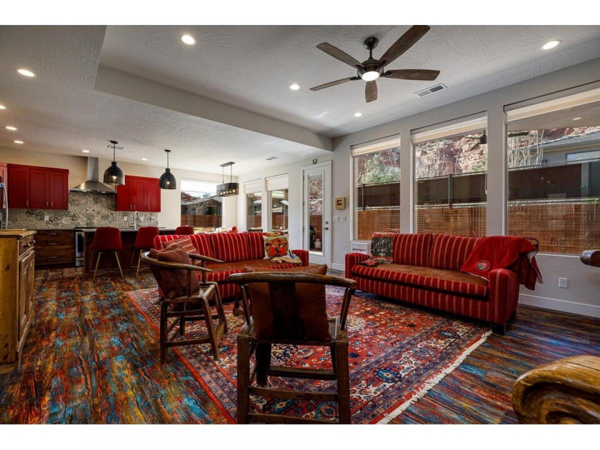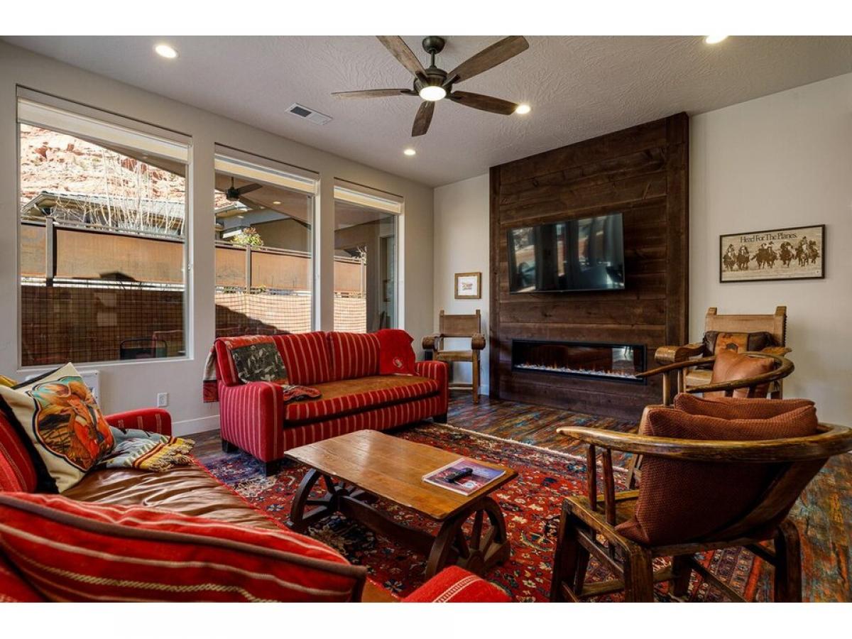 This 2,020 square foot home, built in 2021, is a contemporary rustic masterpiece that combines style, comfort, and functionality. Situated on a fully landscaped corner lot at the base of Kanab#039;s iconic red cliffs, the home offers breathtaking views through large windows that fill the space with natural light and perfectly frame the surrounding landscape. The spacious front room features a gorgeous fireplace and a unique designer interior that blends modern sophistication with rustic charm. The large kitchen and dining area are designed for entertaining, with beautiful quartz countertops, premium appliances, and a butler-style pantry for extra storage and convenience. Just off the dining area, a private patio provides the perfect spot for morning coffee or sunset dinners. The master suite is a true retreat with private access to the covered patio. The ensuite bathroom includes a separate soaking tub and shower, a water closet, and a spacious walk-in closet that connects directly to the laundry room, which also features a built-in office space. The oversized three-car garage includes built-in shelves for extra storage, 250 gallons of water storage, and a 6,000W backup battery, ensuring peace of mind even during a power outage. The HOA offers resort-style amenities, including an indoor and outdoor pool, a hot tub, a gym, barbecue areas, and walking trails right out of the community. There#039;s also a dog park with a splash pad for your furry friends. This home is more than a place to live it#039;s a lifestyle. Don#039;t miss your chance to own this one-of-a-kind gem in one of Kanab#039;s most sought-after communities. Call today to schedule a private showing. Buyer to verify all Taxes reflect a 2nd home higher rate