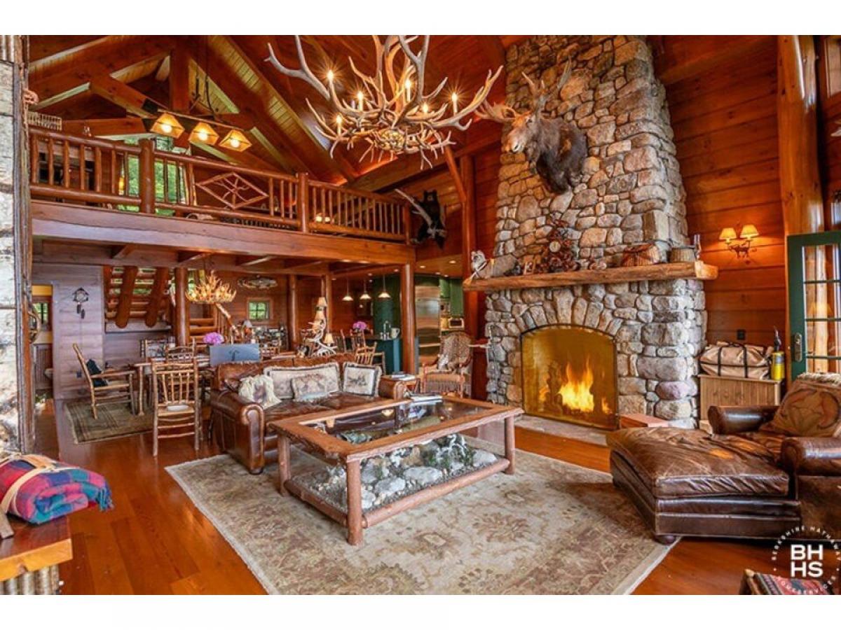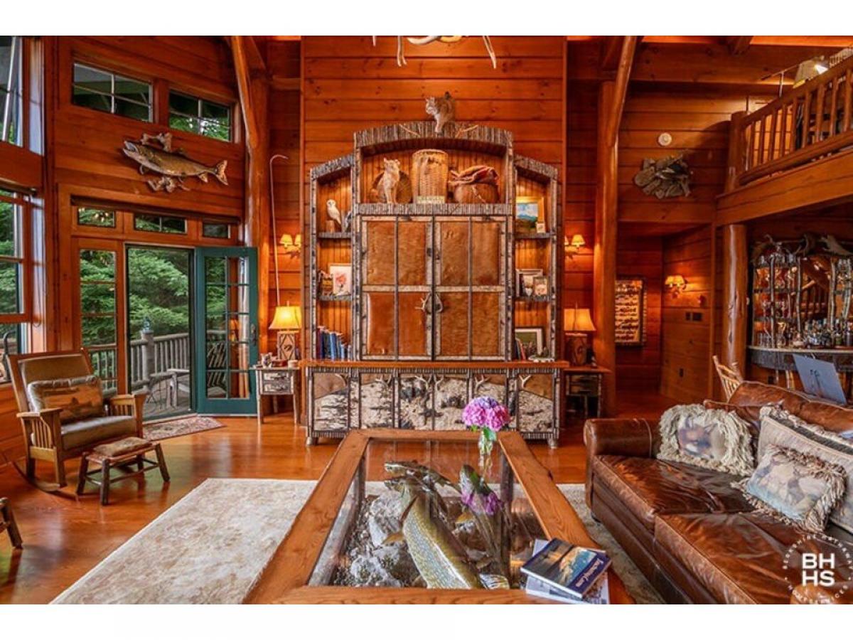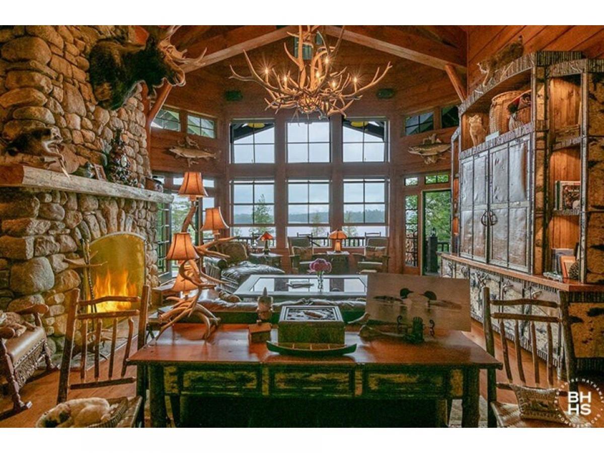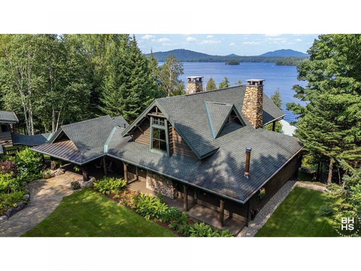 Perched in privacy on Upper Saranac Lake this extraordinary year round home is filled with custom Adirondack furnishings, four fireplaces, two slip boathouse, 4 bedroom guest house and a log lean-to. The spacious open floor plan, cathedral ceilings and captivating views from every window of the lake and mountains are a buyers opportunity to own one of the finest properties in the Adirondacks. Artisans have constructed unique custom furnishings for every room. The screen porch with stone wood burning fireplace is cozy for cool evenings. Wrap around decks, stone steps to the boathouse, sandy beach front and lake in a wooded privacy ensures this privileged owner a true Adirondack experience. Sold turn-key.