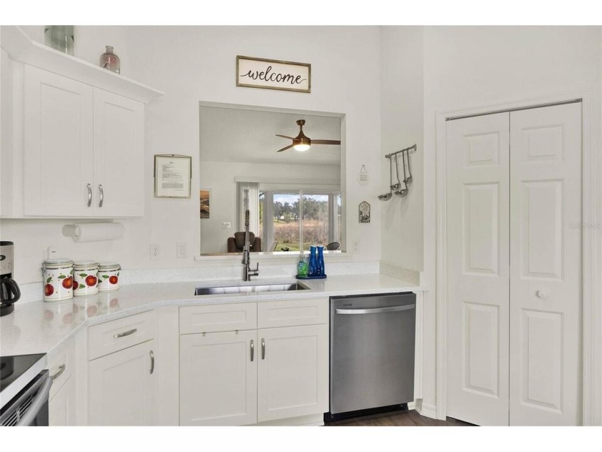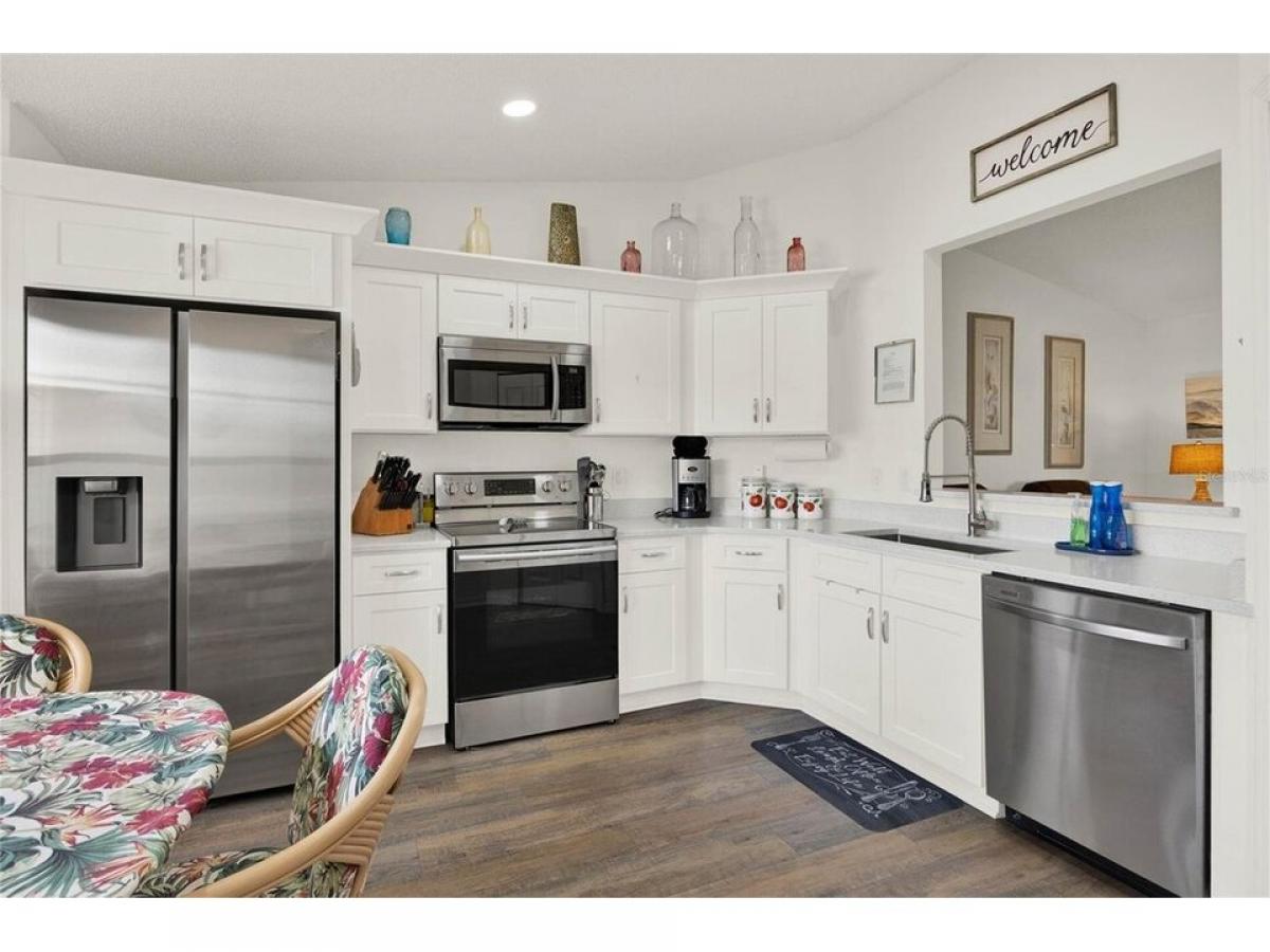 This delightful home in Plantation at Leesburg is one of the most sought-after properties in the community. Nestled on a quiet cul-de-sac with a private backyard, it offers a perfect mix of peaceful living and convenience. Enjoy outdoor living with a screened patio in the backyard, ideal for family gatherings, and no rear neighbor setting overlooking the water. This 2 bedroom and 2 bathrooms home boasts a split floor plan. Roof, Air Conditioner and Hot water heater replaced in 2021. Laminate flooring throughout the whole house. The custom Kitchen has Solid Wood Cabinets, Stunning Quartz Countertops and Stainless Steel Appliances. The Master suite is spacious and the Master bath is beautiful with quartz Countertop with a large shower and Walk In Closet. This Active 55+ community offers three expansive clubhouses and a delicious on-site restaurant. Enjoy a round of golf on two 18-hole courses, lighted tennis courts, three sparkling pools and Jacuzzis. Fitness enthusiasts will appreciate the world-class fitness centers, as well as volleyball and pickleball courts. With over 100 planned activities each week, there#039;s always something exciting for someone to do.