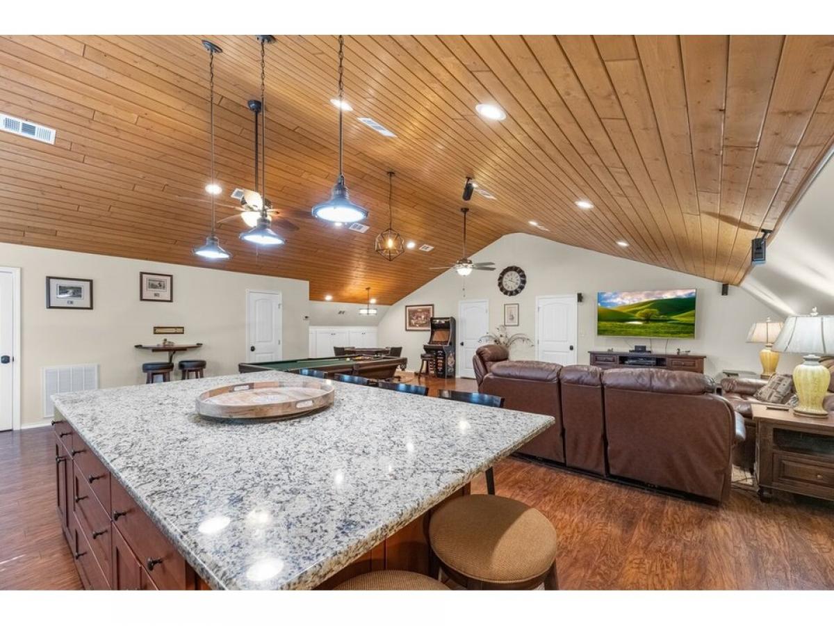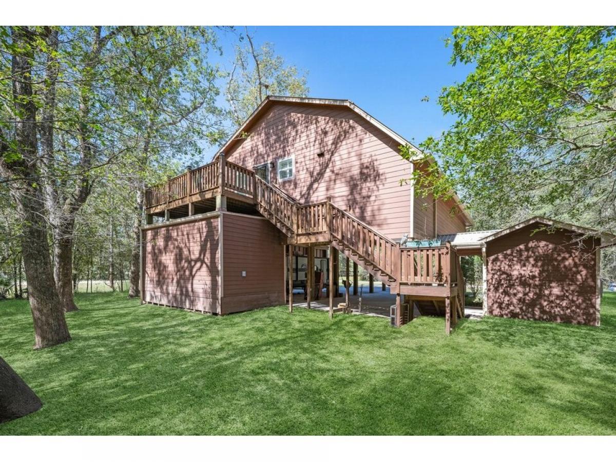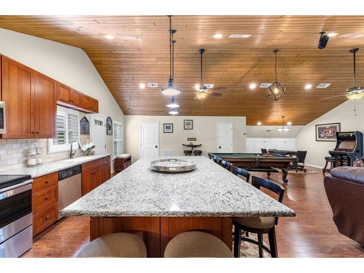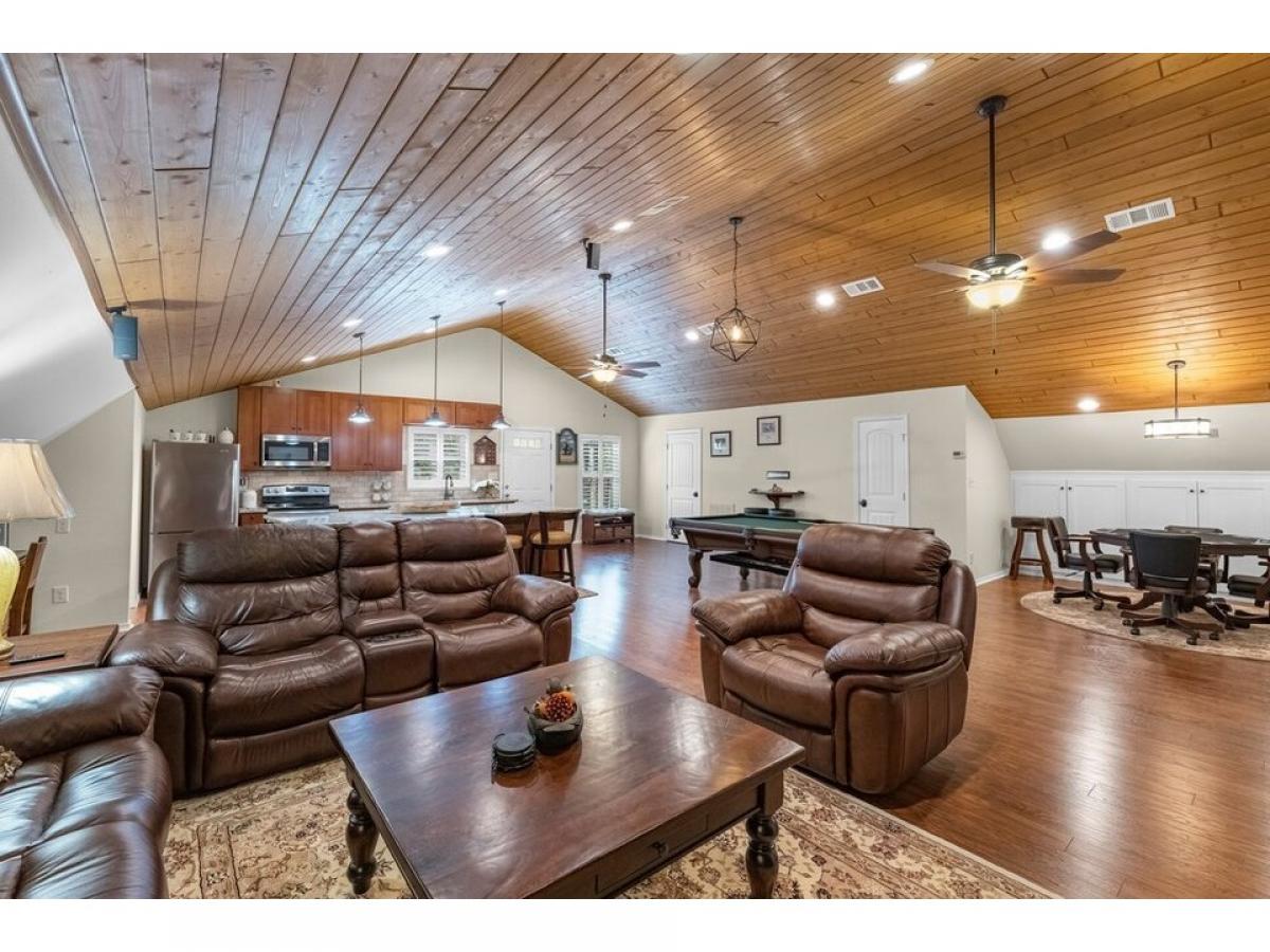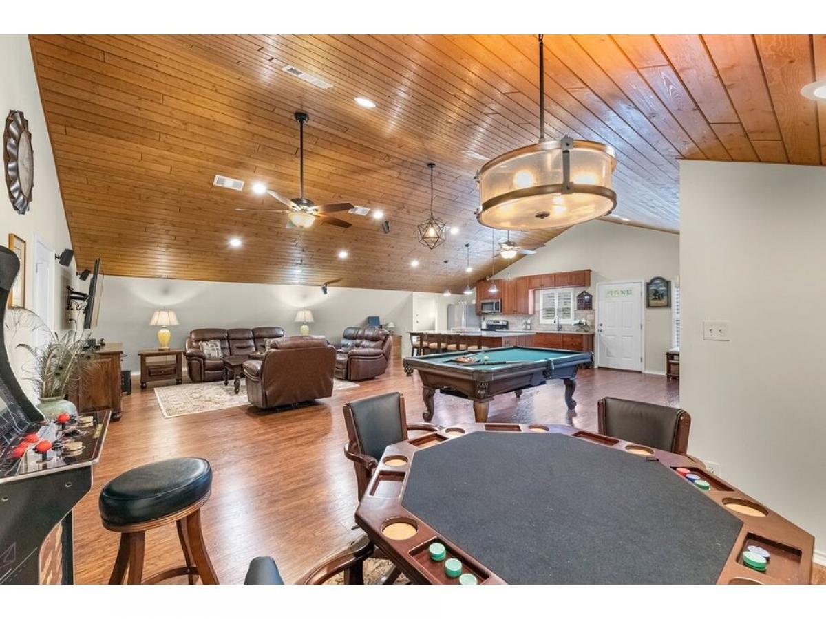 RARE FIND! Sprawling Craftsman Style Home in canopy of trees, set on tranquil ~ frac12; Acre Lot. Versatile Open Plan, Metal Gable Roof, Cathedral Ceiling amp; Highland Hickory floors. Kitchen: Maple Cabinets, Massive Island w/ Solid Granite Slab, SS Appl, Walk-In Pantry, Pendant/Recessed/Undercab lighting amp; Breakfast Bar open to Family Rm, Dining amp; Game Rm. Spacious Bedrooms fit Queen Furnishings, Ample Storage amp; Custom Built-In DayBeds. Lux Bath w/ Clawfoot Tub, Marble Top amp; Tile Floors. Plantation Shutters, Dbl Pane Windows, PreWired Surr Snd. Bathroom Two, Laundry Rm, Workshop/Storage amp; Golf Cart Garage on first flr. 210sqft Deck overlooking property. 2,162sqft Cov#039;d Pavilion w/ 14rsquo; Clearance, 50 amp; 30amp, abundant lighting, outdoor ceiling fans - fit RVs w/ full service or for Entertaining. 10in pilings 14rsquo; below amp; above ground, concrete reinforced w/ rebar supports additional loads. Amenities: Multiple Pools, Splash Pad, Playground, Beach, Fishing Pier, Stocked Ponds, RV amp; Cabin rental.