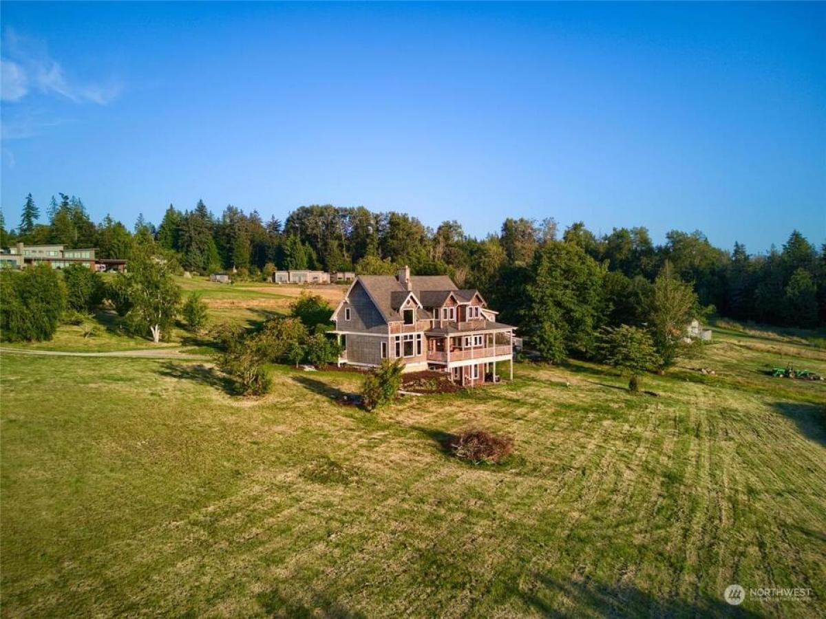 Amazing Panoramic Views of the Salish Sea from the Olympics to Canadian Mountains San Juan Islands in Between. Great opportunity to capture this incredible setting on desirable Island View Way. Take on this 2-story w/full basement + detached 1bd studio make it your own. Needing some finishing up from a solid start, begin your journey to where your vision takes you. Main house w/3 beds, 2 w/shared balcony(VIEWS) + loft, office room for more. Stained concrete floors, open Schist Stone fireplaces(main lower), wrap around deck, French doors on main lower + 2 Dutch doors. Radiant heat throughout w/lower mechanical room w/boiler water treatment system. Endless possibilities w/large unfinished basement w/more stellar views.