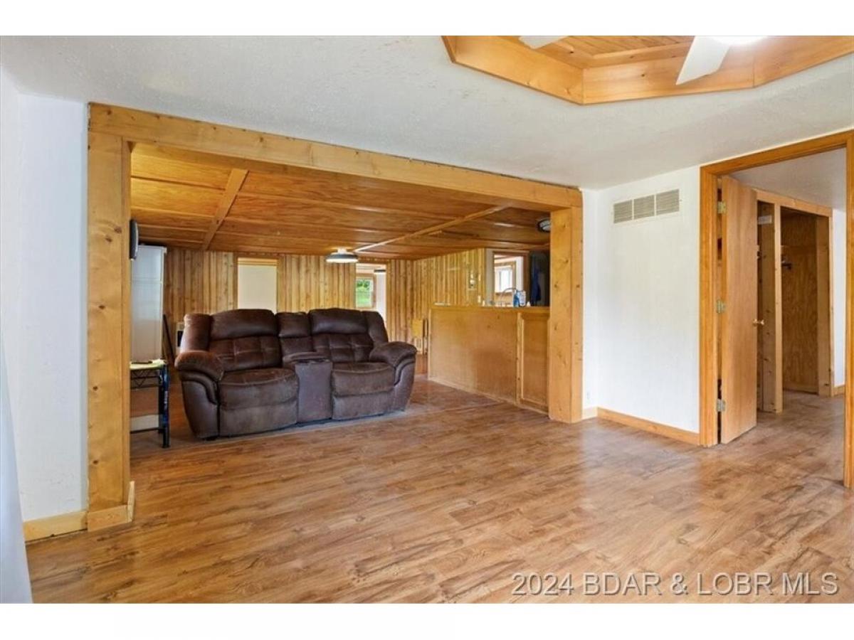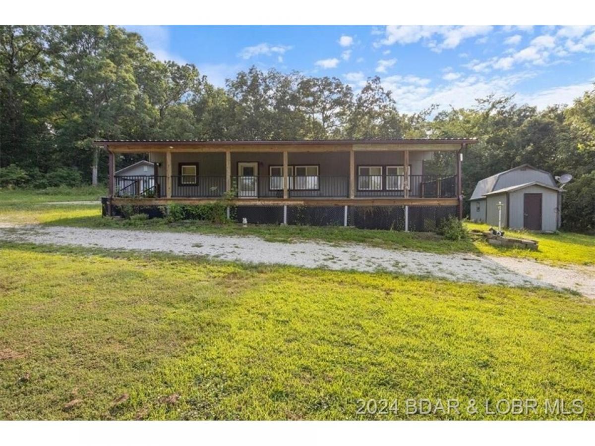 Enjoy the Lake Life experience at a fraction of the cost AND with a detached 24x36 shop! Enjoy the huge covered deck that spans over 40ft long and is the perfect spot to drink morning coffee or entertain friends and family. Head inside to an open concept layout that features 3 bedrooms and 2 full bathrooms! With approx an acre of land included, part of the backyard fenced, and an extra storage shed, this home is perfect for full time living, weekend getaway, or could be a rental investment! Located in the Lazy Acres community on the 69 Mile Marker, there is access to Lake of the Ozarks via 2 boat ramps. So convenient to get on the water for fishing, swimming, and water sports with access right down the street! No HOA fees, 2 hours from the KC area, and tons of possibilities!