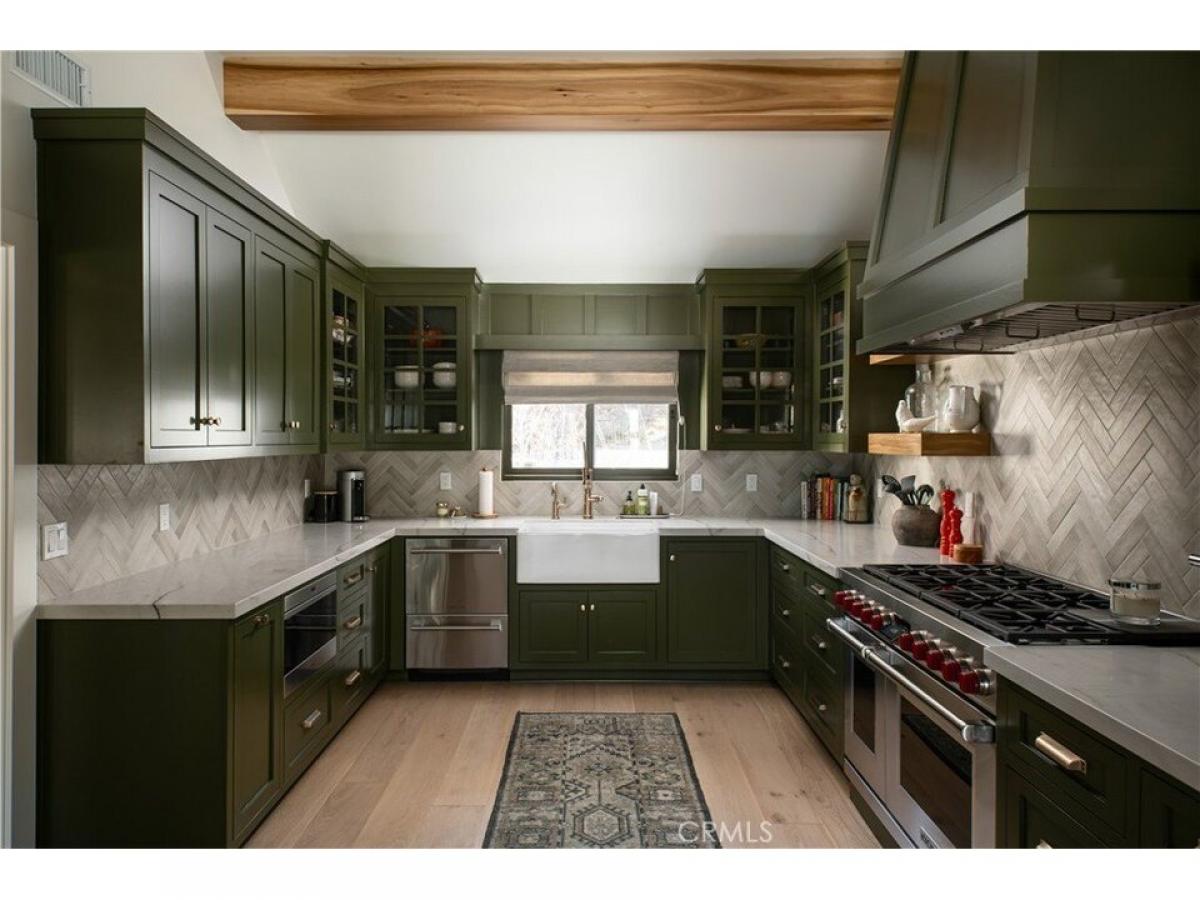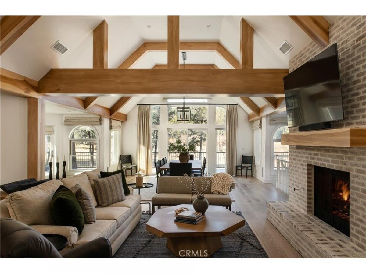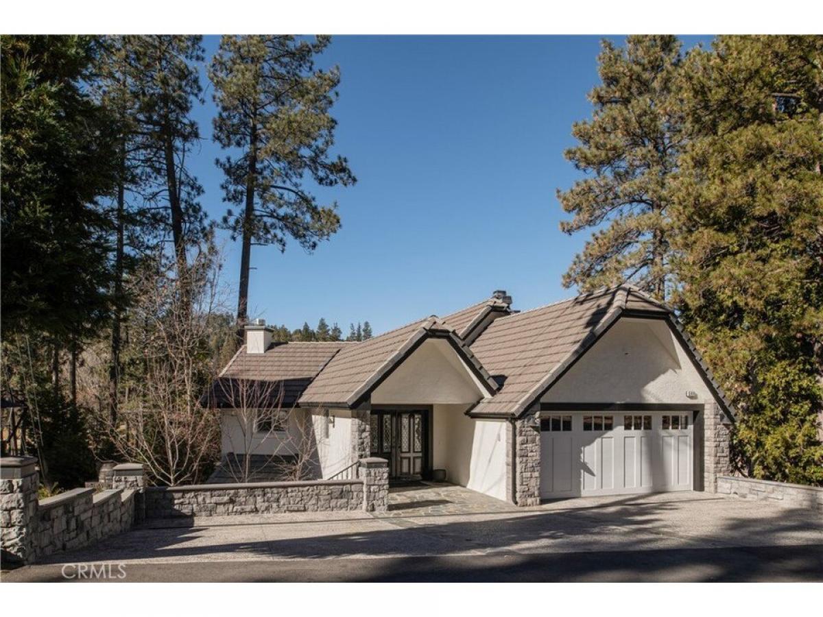 Located on the prestigious Lake Arrowhead Country Club golf course, overlooking the 2nd green, the serene 2nd hole lake, and Grass Valley Lake. Surrounded by surreal, picturesque scenery, this property has been meticulously remodeled by renowned builder Andrew Stagg, with over $1 million remodel. Designed with full accessibility in mind, the home features an elevator servicing all levels, and level entry through a two-car garage with additional parking. Step inside to discover a big, open floor plan with wide-plank white oak flooring, rustic oak cathedral beams amp; a whitewashed fireplace. The dining room is a true centerpiece, featuring soaring cathedral ceilings and floor-to-ceiling windows that flood the space with natural light. The kitchen is equally impressive with green cabinetry, gold hardware, exotic countertops, a Wolf range, and ample storage, blending luxury with functionality. The main level features a bedroom with an en suite bathroom, while the main floor powder room evokes the charm of a designer speakeasy with moody wallpaper amp; transitional gold fixtures. Every bedroom in the home includes its own uniquely designed private bathroom, maintaining a cohesive yet distinct style throughout. One of the primary bedrooms showcases a luxurious black-and-white freestanding tub with a gold hardware fixture, creating a bold and elegant statement. The 2nd level featuring a spacious game room with a large TV, a whitewashed brick fireplace, a custom bar fully equipped for hosting, and a game table. The laundry room is a standout with its charming plaid wallpaper, custom cabinetry, and intricate designer tile work. Two primary suites on this level provide ample comfort, while the kidsrsquo; room offers two queen beds and a private bathroom. Outdoor living is equally remarkable, with large decks on multiple levels offering breathtaking views of the lakes and golf course. A lower-level patio is outfitted with custom composite furniture. Additional amenities include AC, a two-golf-cart garage, professional landscaping by a local designer, a generator amp; a Moen Flow automatic water shutoff system. This home is selling fully turn-key, including all furniture, deacute;cor, and even the golf cart. Buyers can move in and immediately enjoy the luxurious lifestyle without needing to purchase a single item. With every detail thoughtfully designed and curated, this home offers an unparalleled living experience on Lake Arrowheadrsquo;s premier golf course.